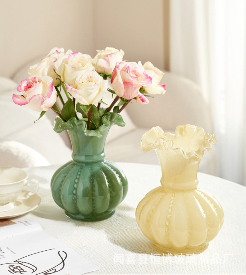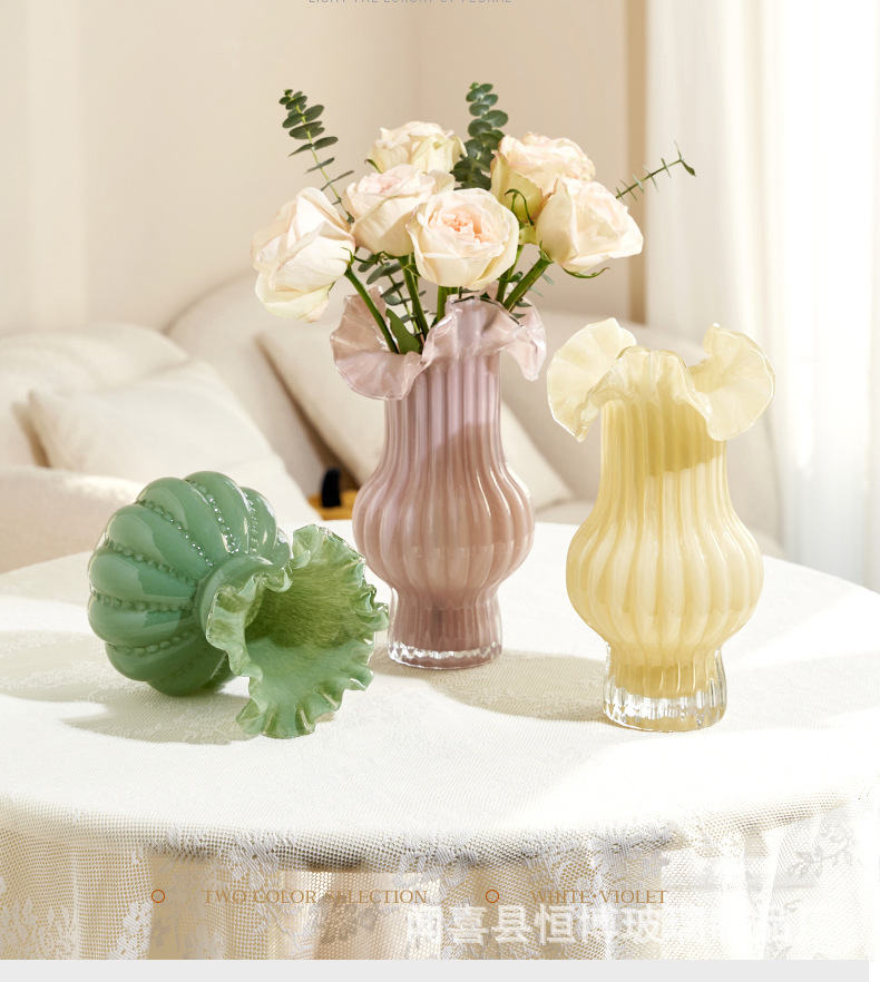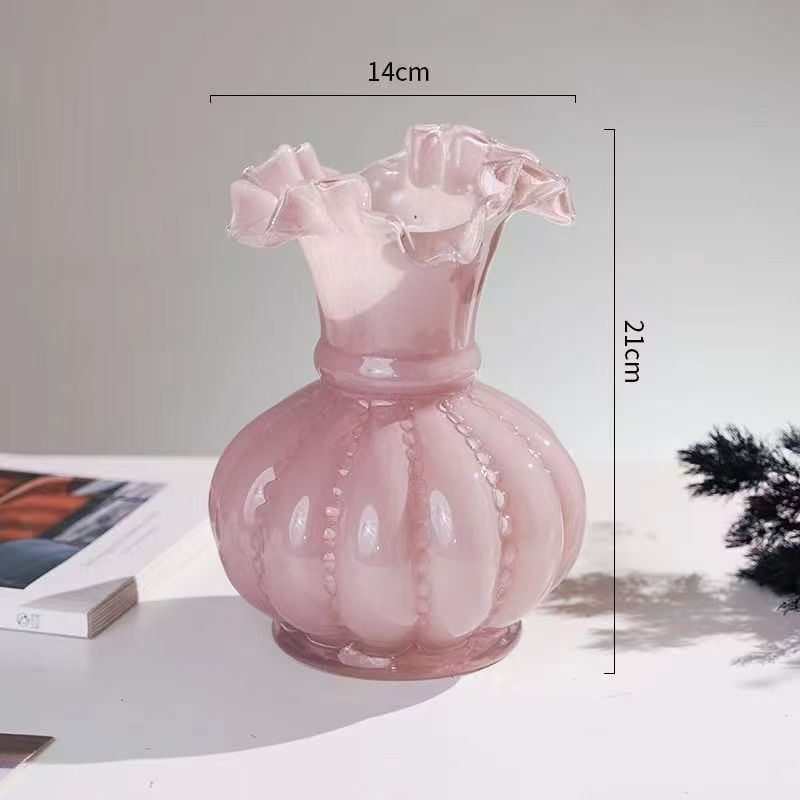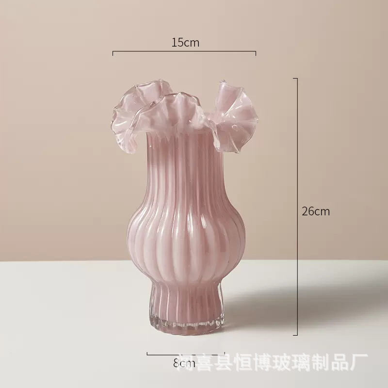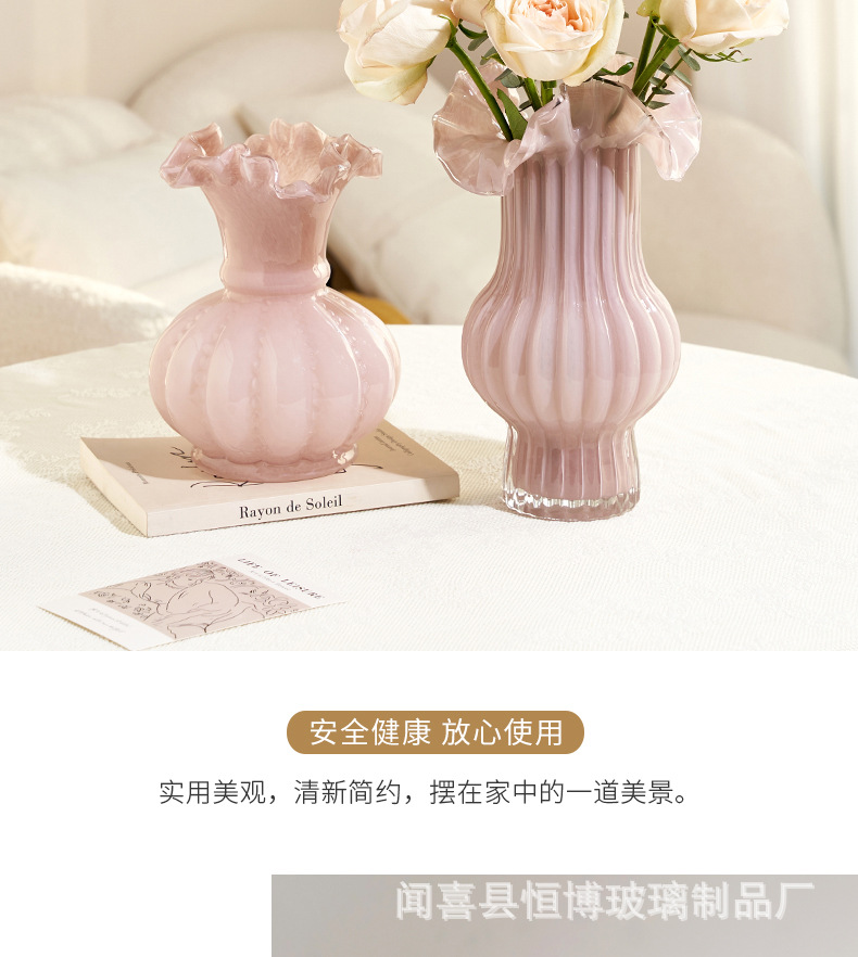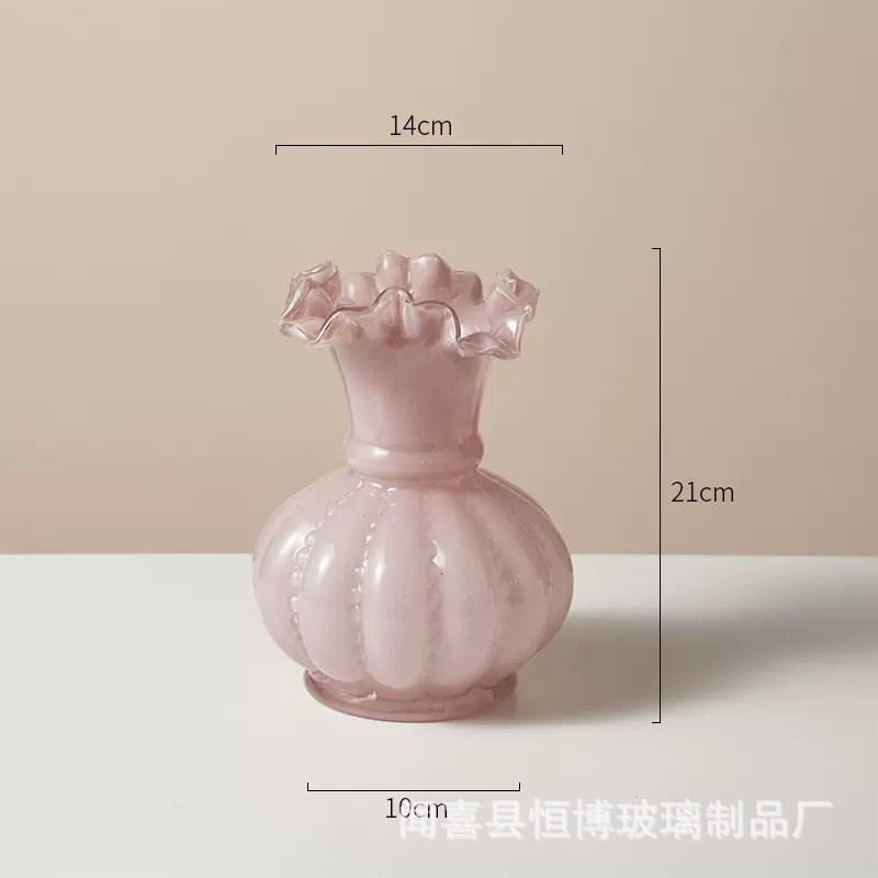 중간 펜턴 꽃병 장식 거실 수화 꽃 하이 엔드 라이트 럭셔리 유리 핑크 창조적 인 간단한 꽃병