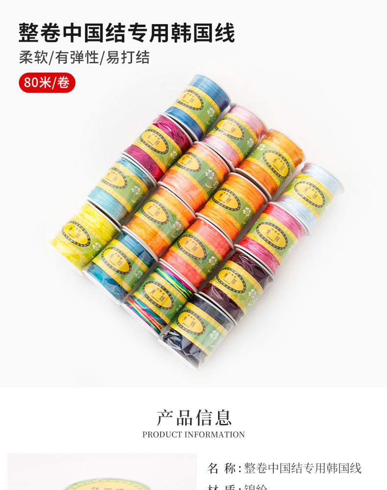 80 m/롤 중국 매듭 라인 7 1.5mm 한국 실크 레드 로프 DIY 팔찌 수제 와이어 액세서리 소재 도매스토어 가기