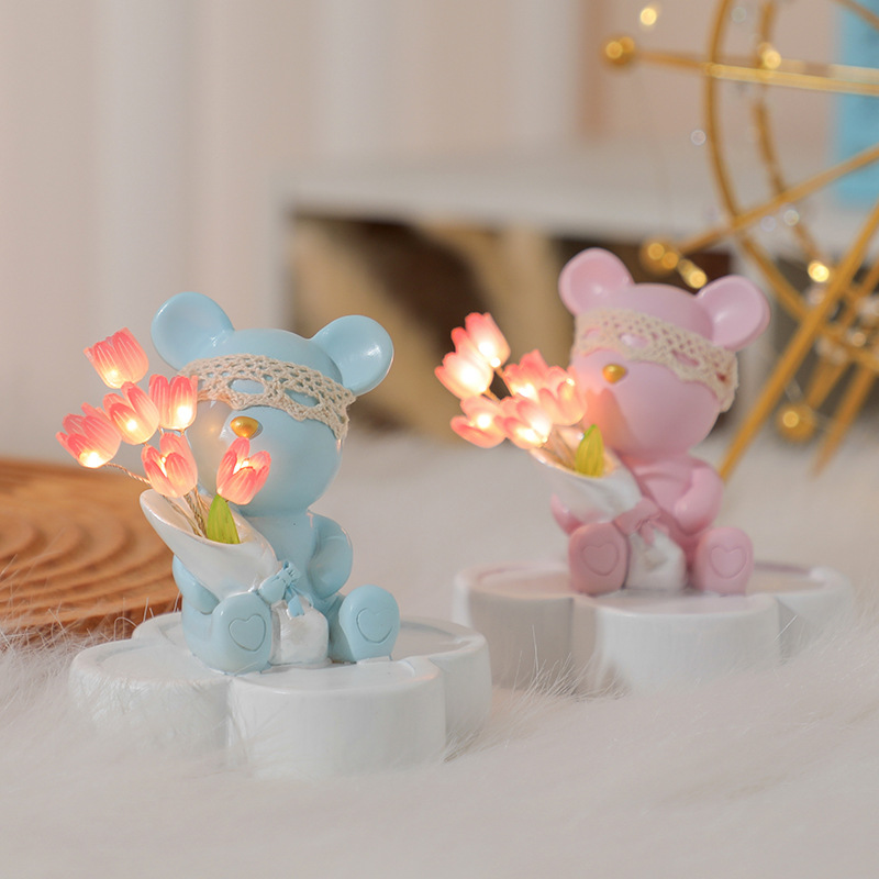 • 장미 곰-튤립 밤 빛 (12cm 높이)