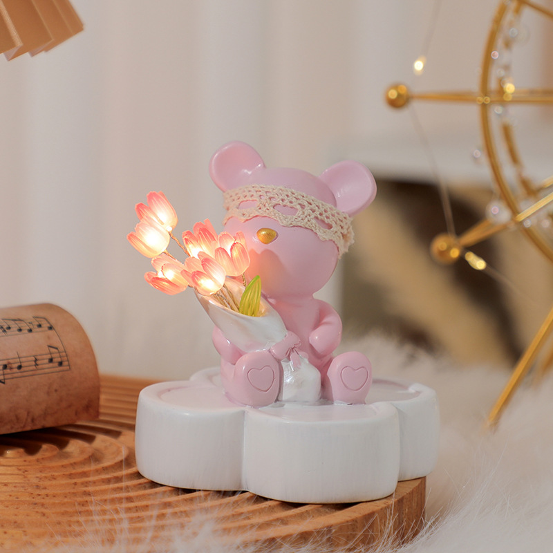 • 핑크 귀여운 곰 튤립-light-9cm 높음