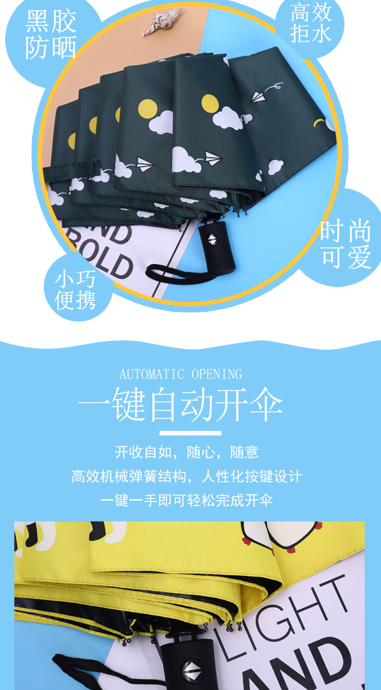 귀여운 자동 우산 남성과 여성의 이중 사용 접이식 태양 우산 학생 태양 보호 자외선 보호 태양 보호 어린이