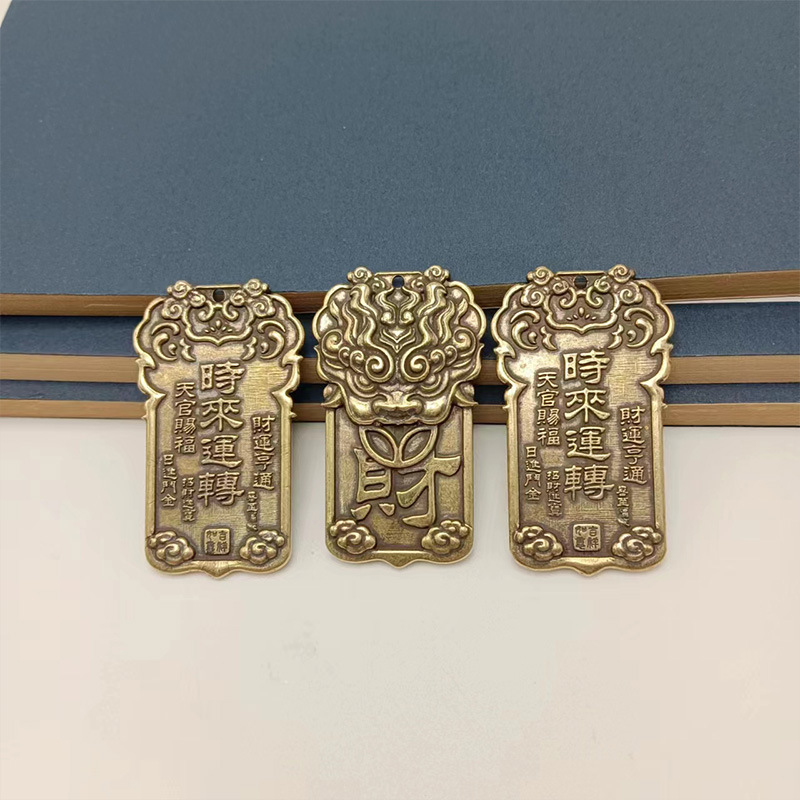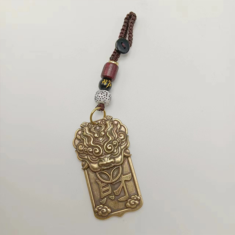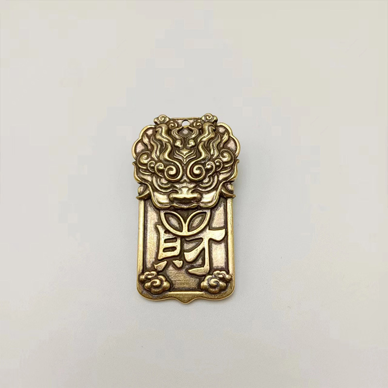 황동 호랑이 머리 포춘 토큰 키 체인 펜던트 오래된 구리 호랑이 머리 실행 브랜드 펜던트 작은 구리 액세서리