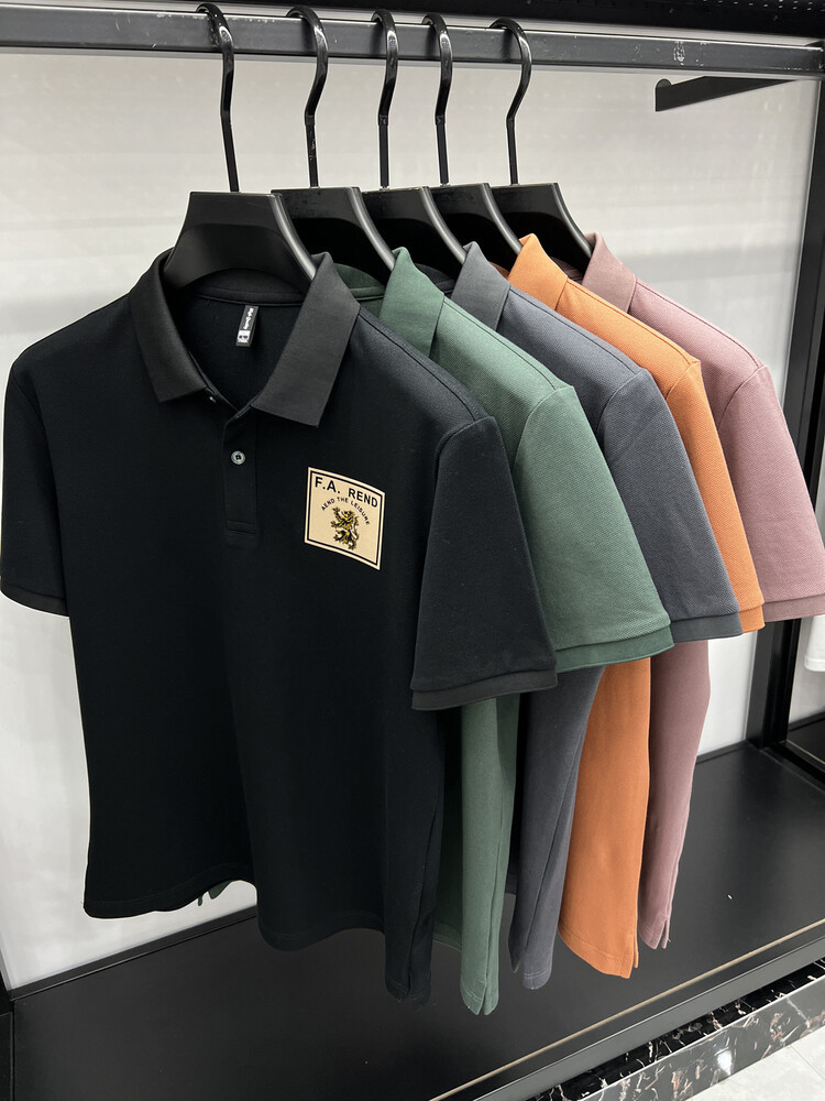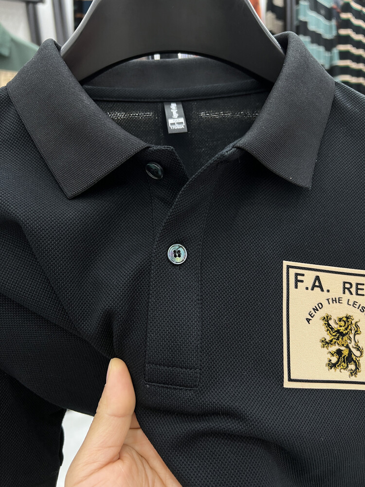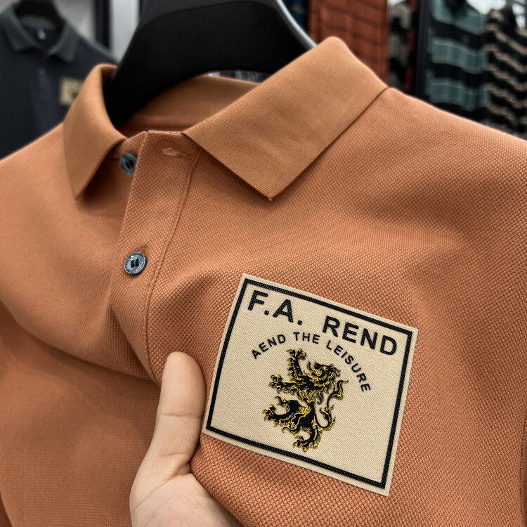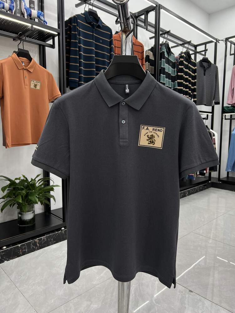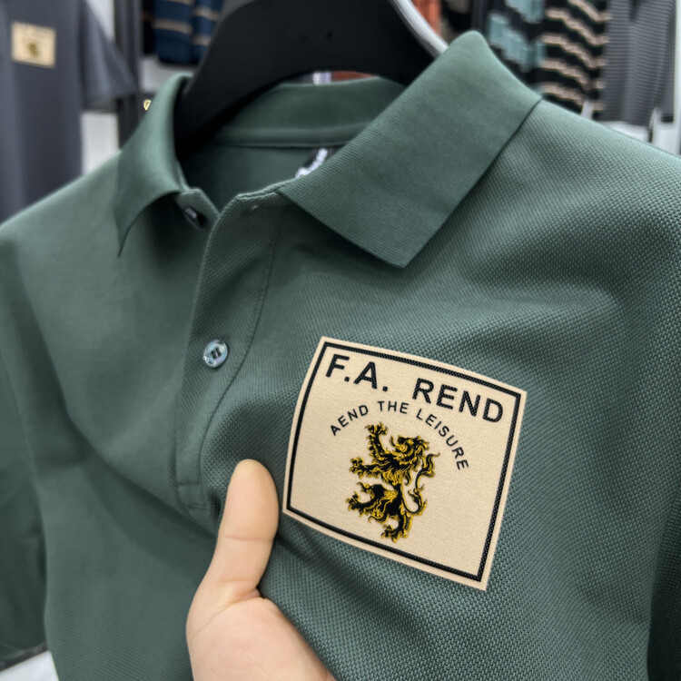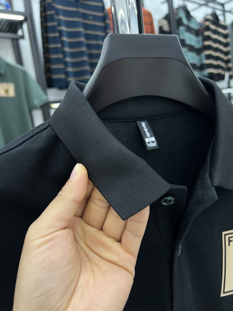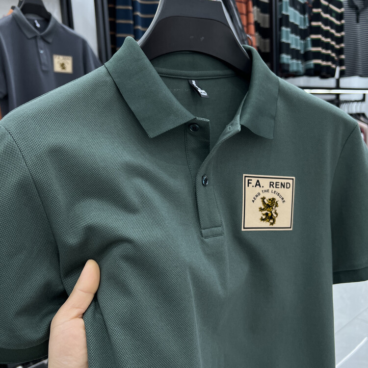 젊고 중년의 머서리화 된면 반팔 티셔츠 남성용 옷깃 여름 패션 브랜드 플러스 사이즈 반소매 폴로 셔츠 패치 프린트 탑