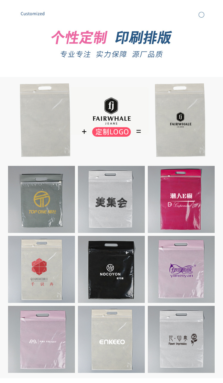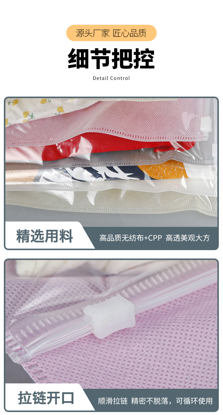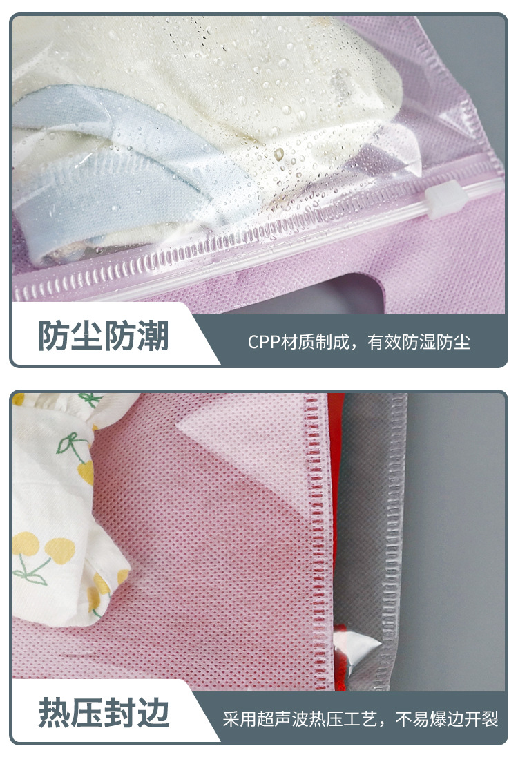 재고 cpp 부직포 휴대용 지퍼 가방 어린이 의류 포장 가방 보편적 인 자체 밀봉 보관 가방 인쇄 로고