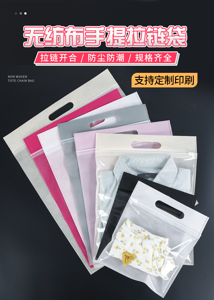 재고 cpp 부직포 휴대용 지퍼 가방 어린이 의류 포장 가방 보편적 인 자체 밀봉 보관 가방 인쇄 로고스토어 가기
