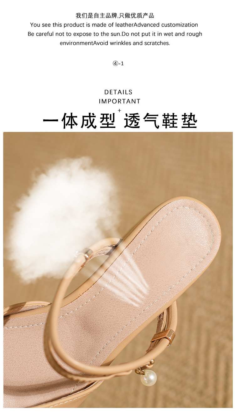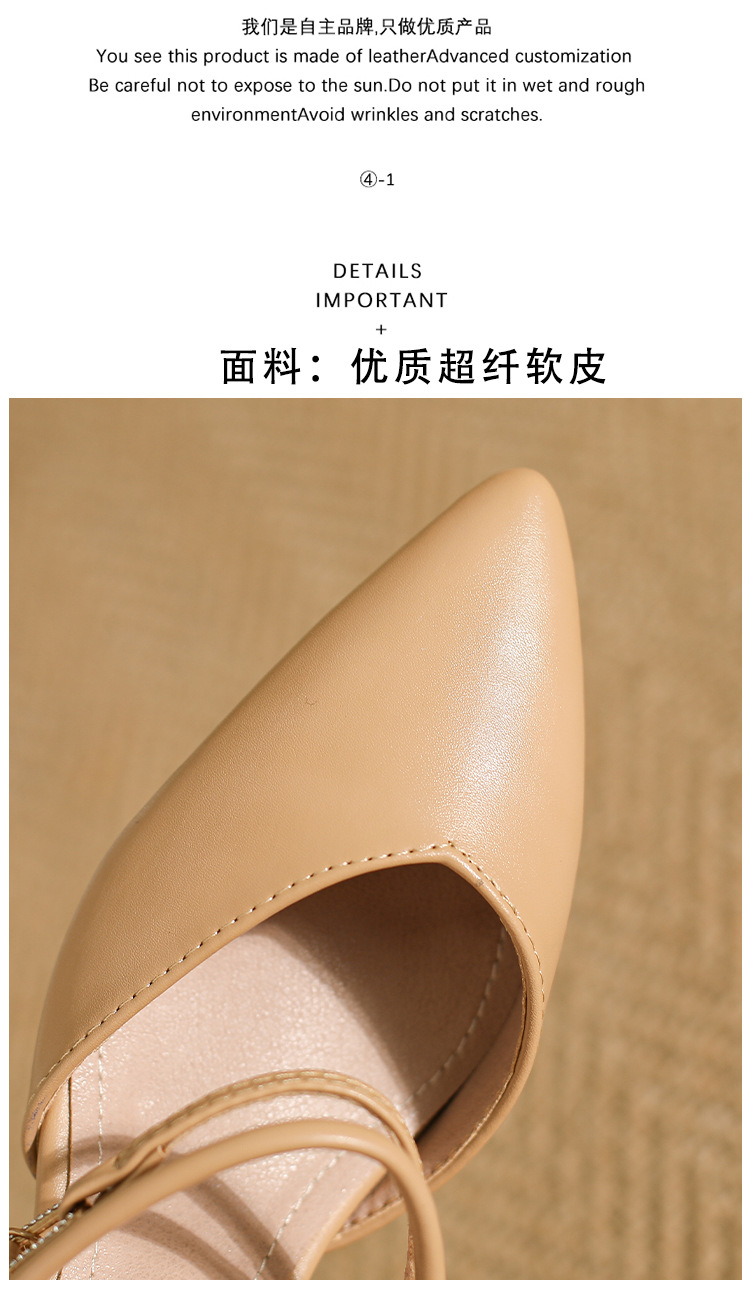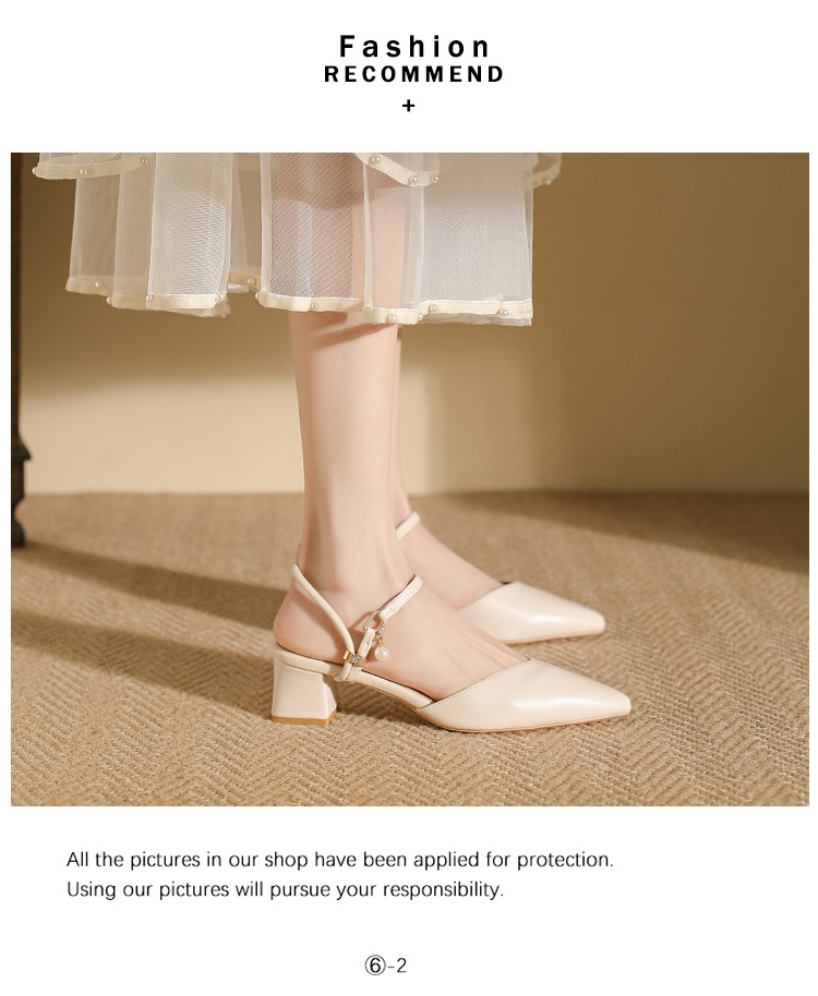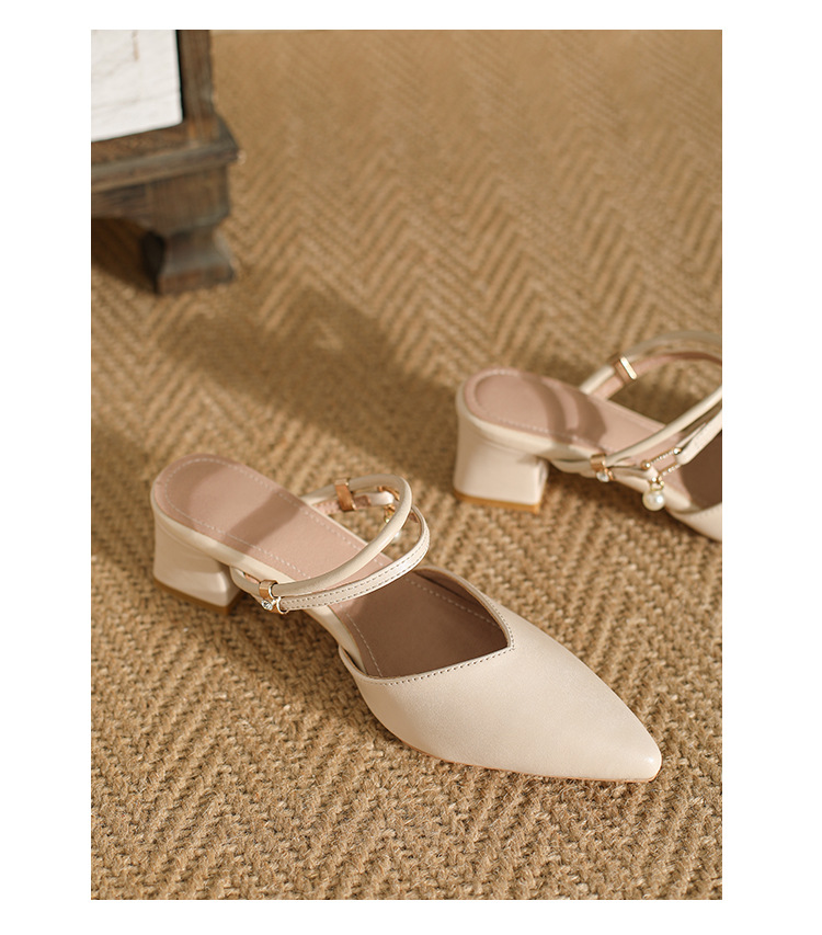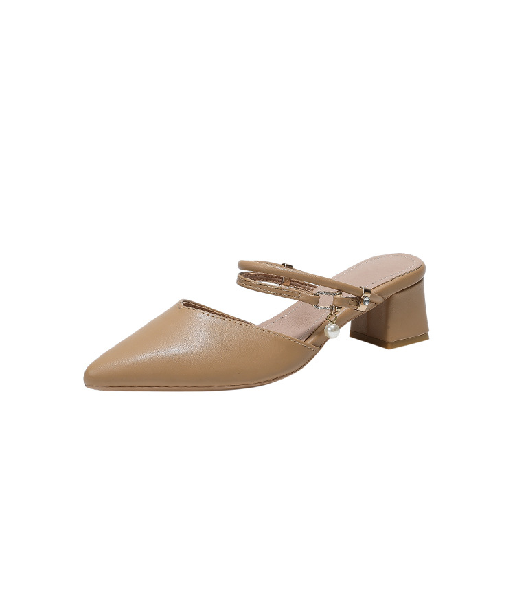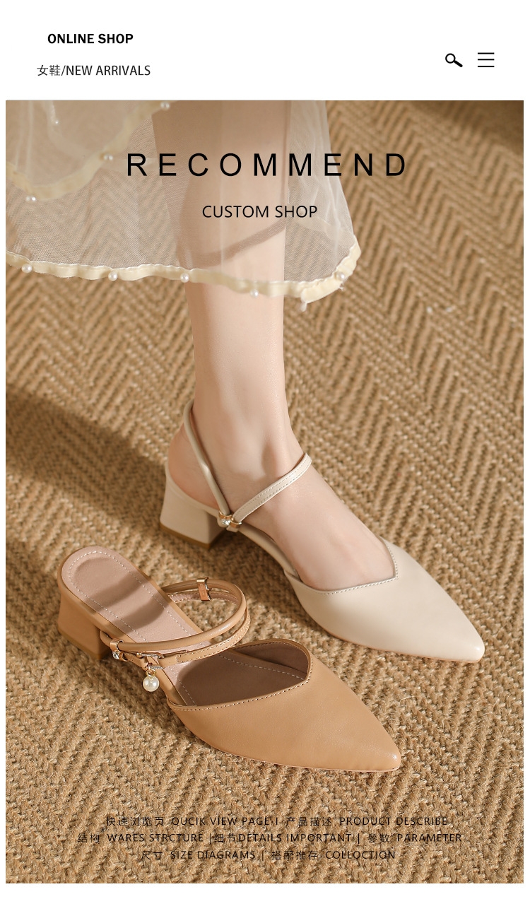 여성 샌들 2024 여름 새로운 뾰족한 발가락 싱글 레이어 신발 두꺼운 미드 힐 하프지지 아름다운 하이힐 프렌치 클로즈드 발가락 야외 슬리퍼스토어 가기
