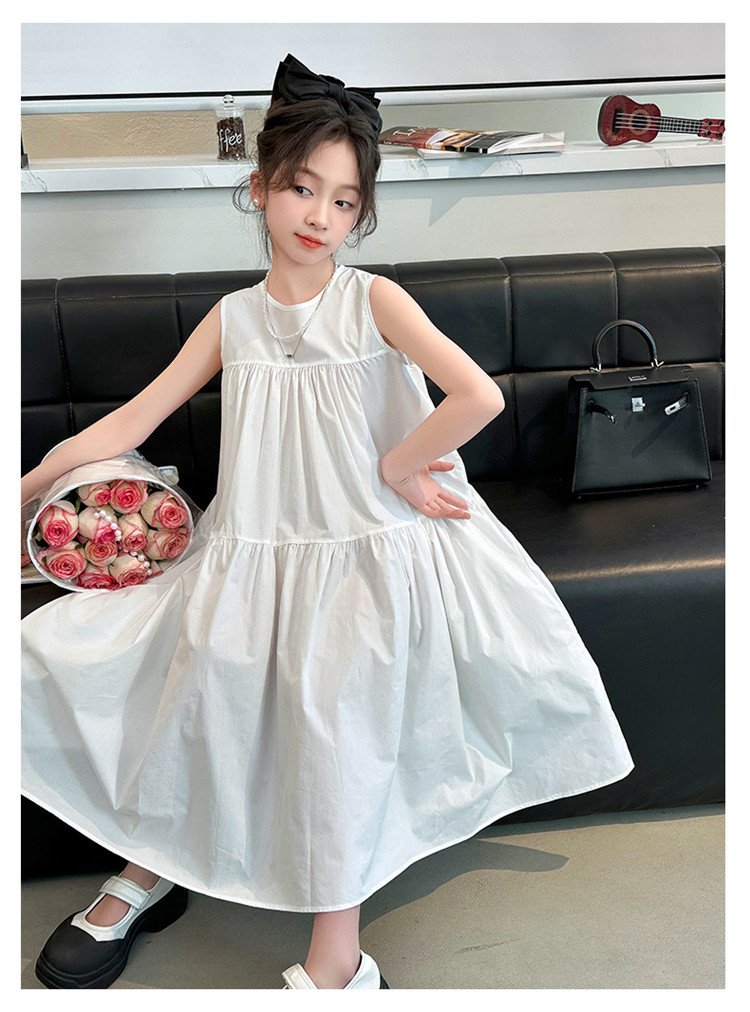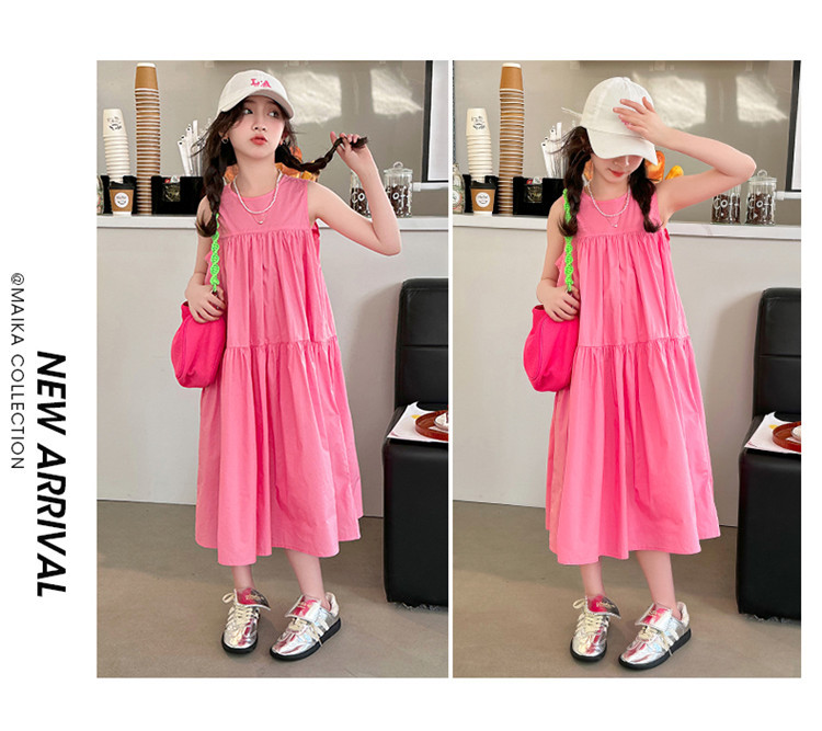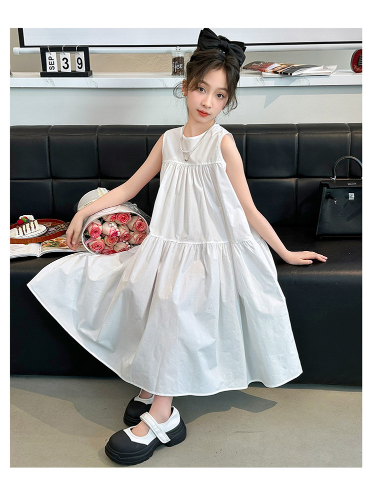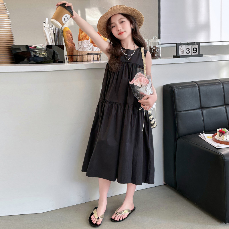 여아 원피스 여름 2025 신상 여름옷 한국 스타일 롱 원피스 큰 아이들을 위한 패셔너블한 민소매 면 원피스