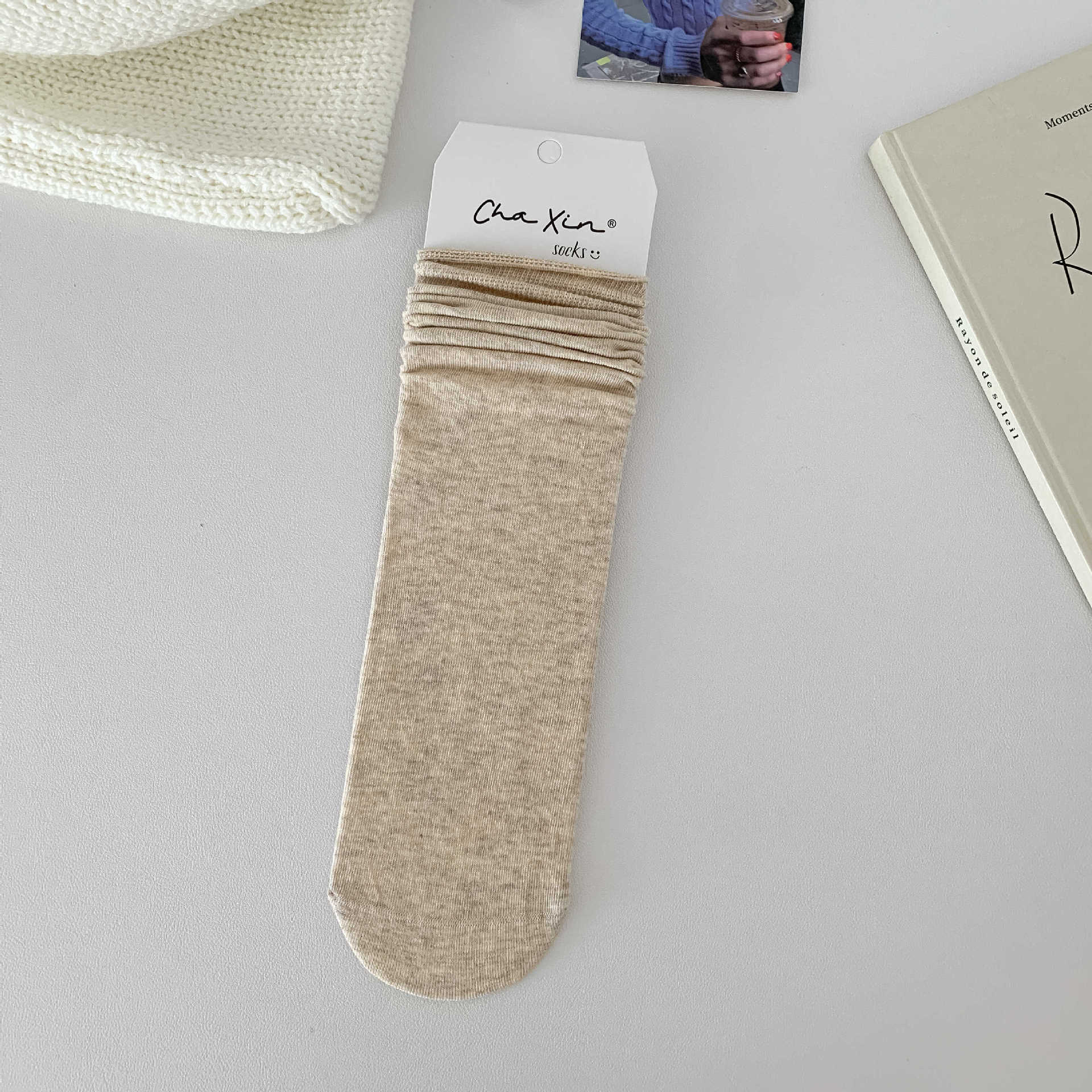 봄 및 여름 여성용 새 양말 한국 뼈없는 단색 얇은 통기성 파일 양말 모두 일치하는 여성용 양말 중반 종아리 길이 양말스토어 가기
