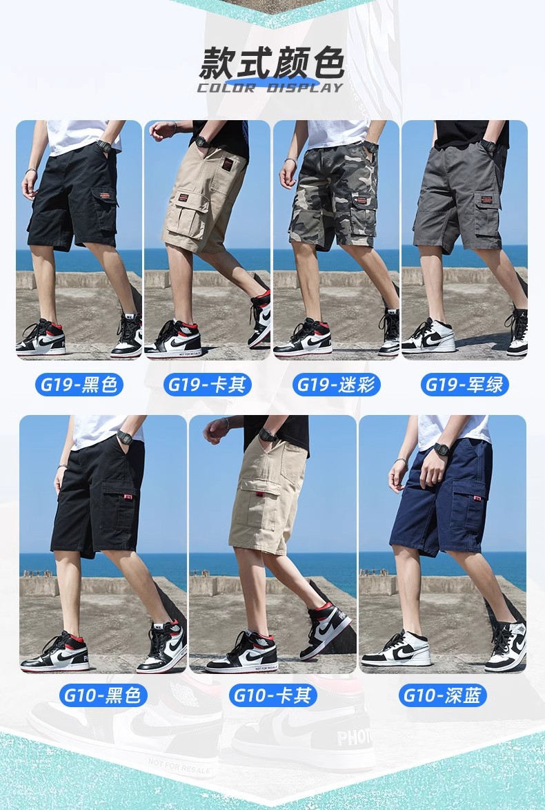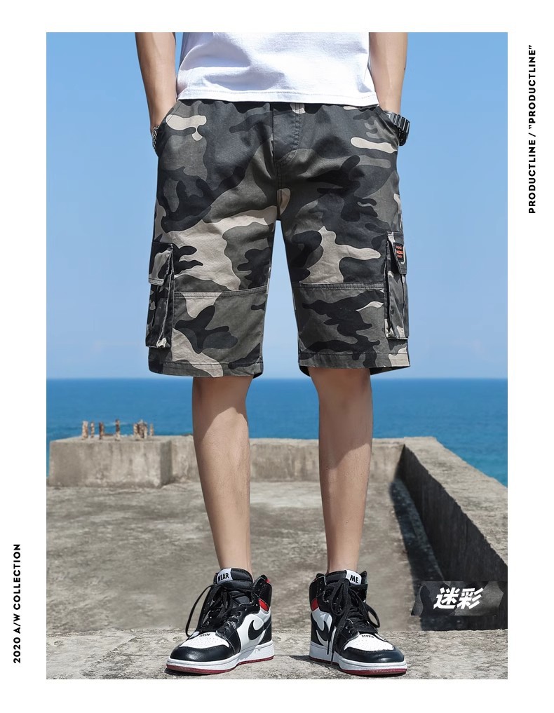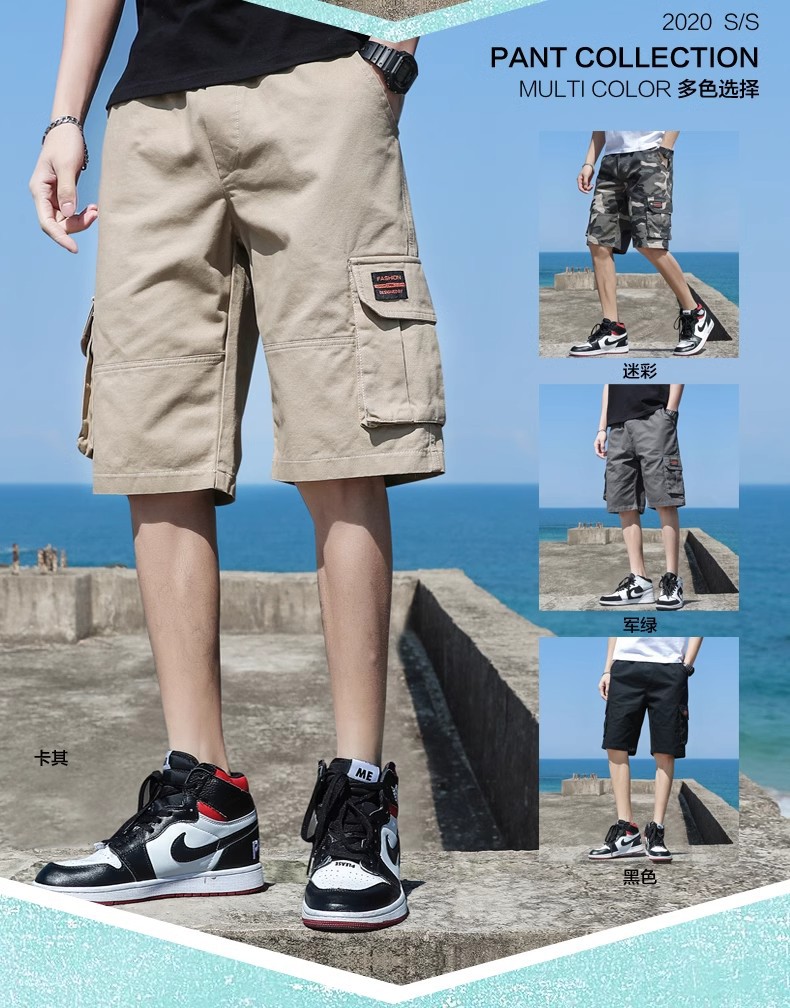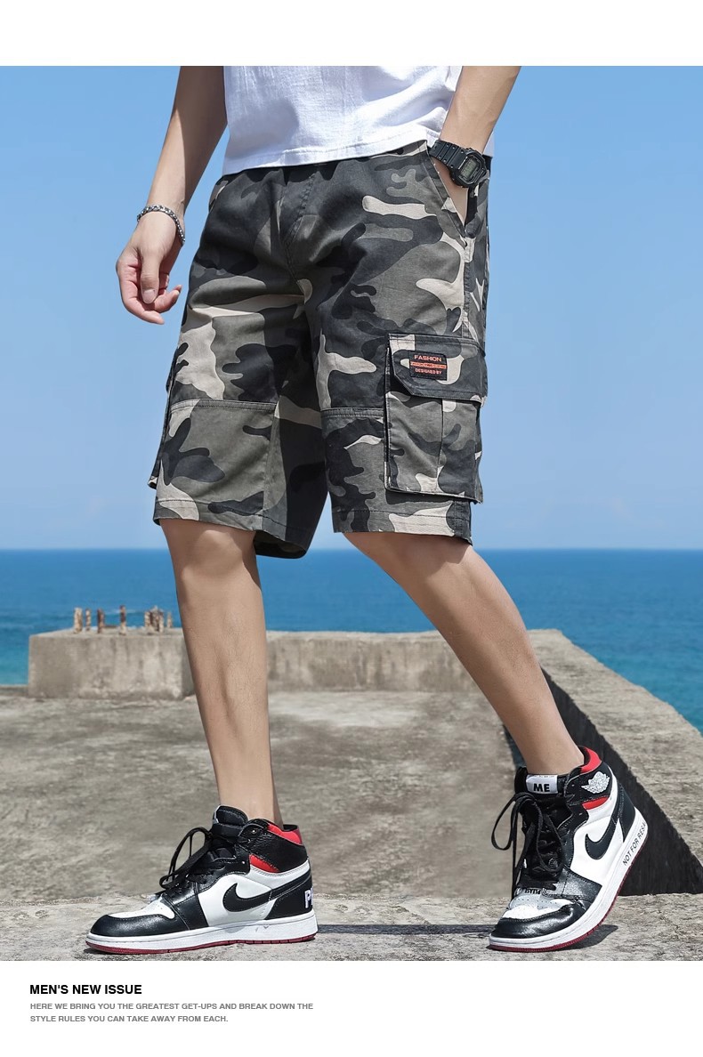 퓨어 코튼 툴링 반바지 남자 캐주얼 스포츠 5 점 바지 외부 착용 느슨한 7 점 바지 십대 위장스토어 가기