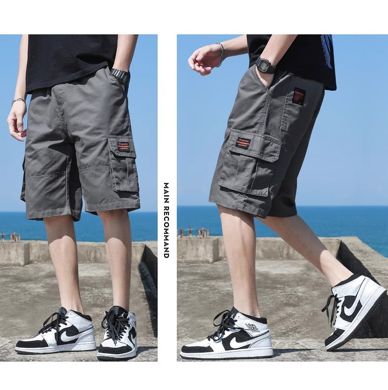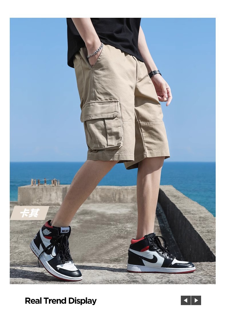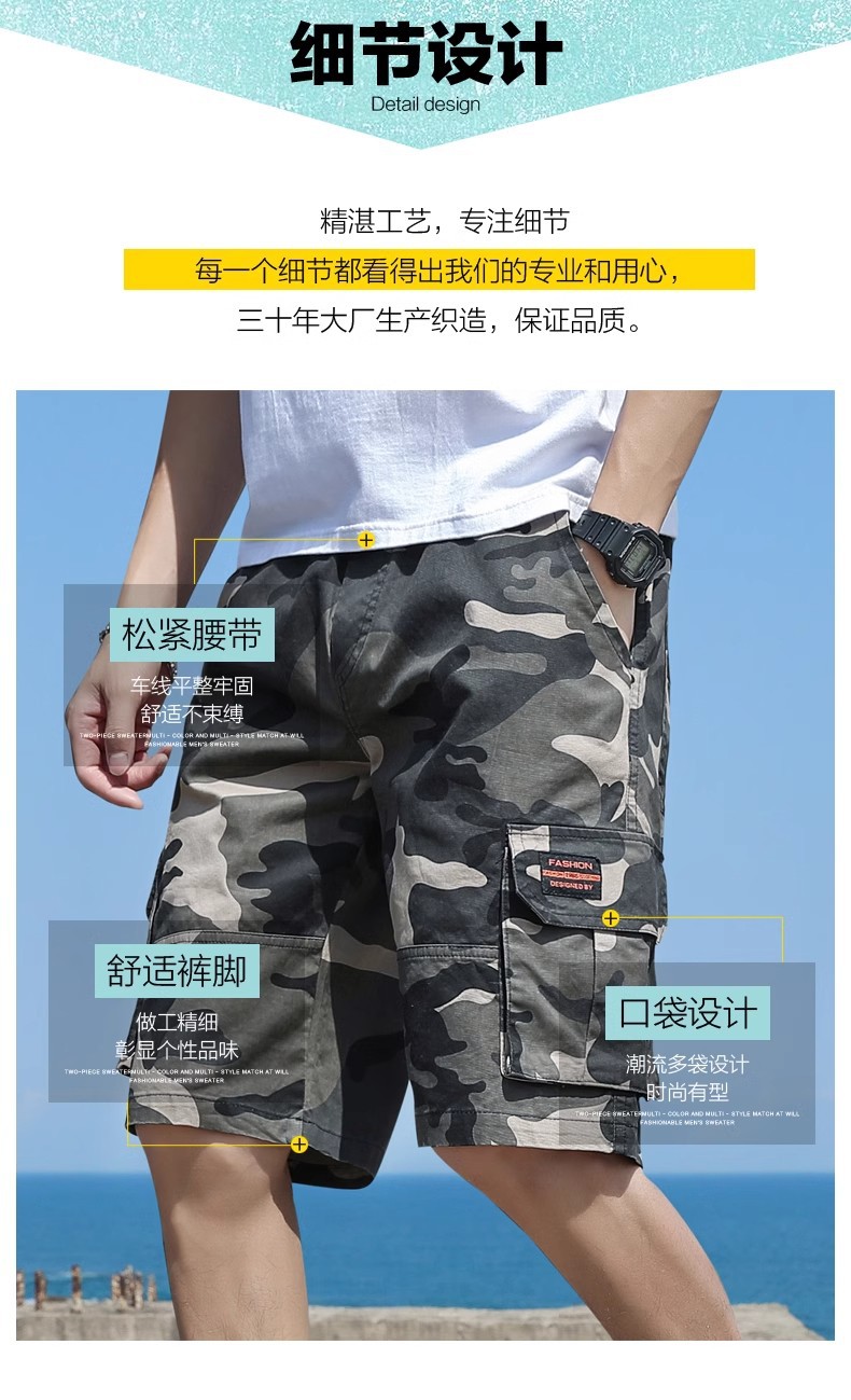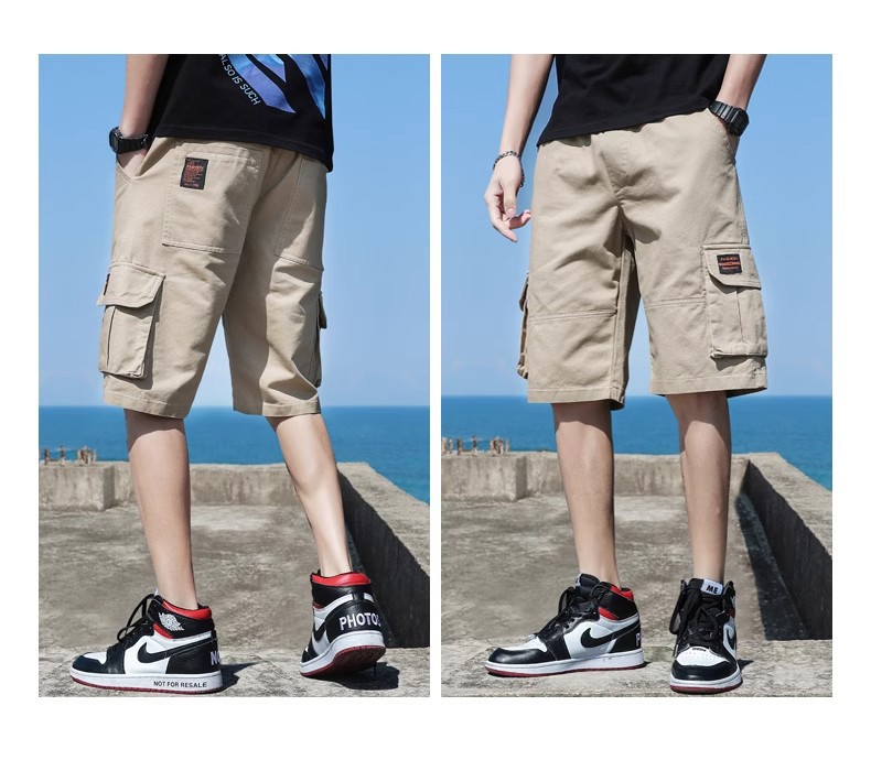 퓨어 코튼 툴링 반바지 남자 캐주얼 스포츠 5 점 바지 외부 착용 느슨한 7 점 바지 십대 위장스토어 가기