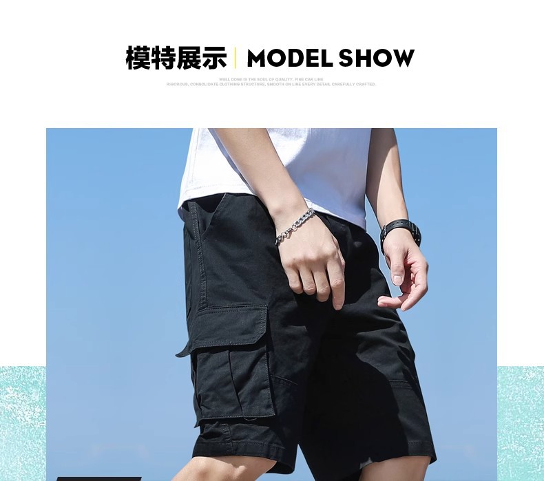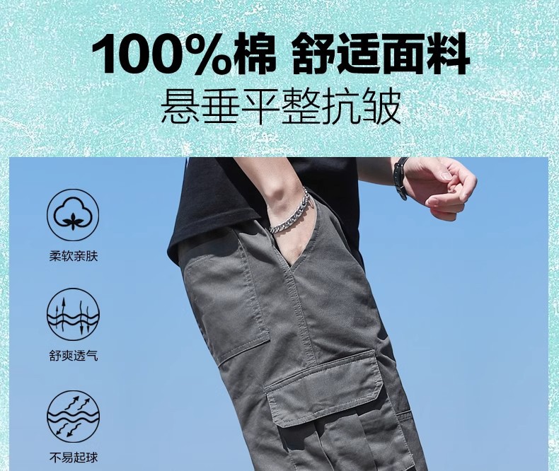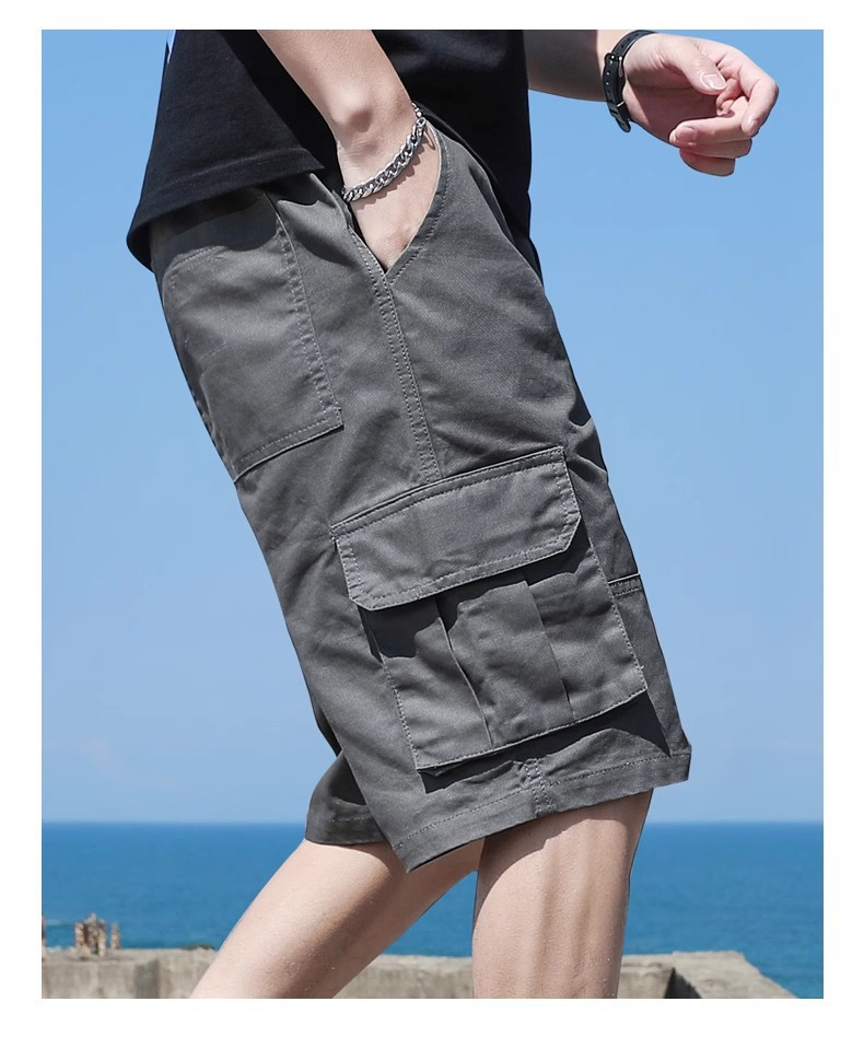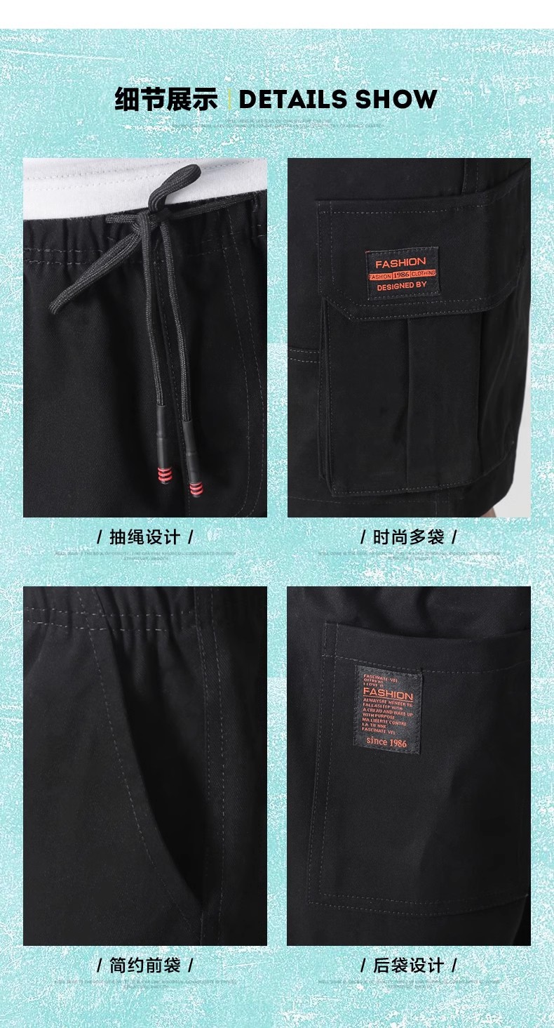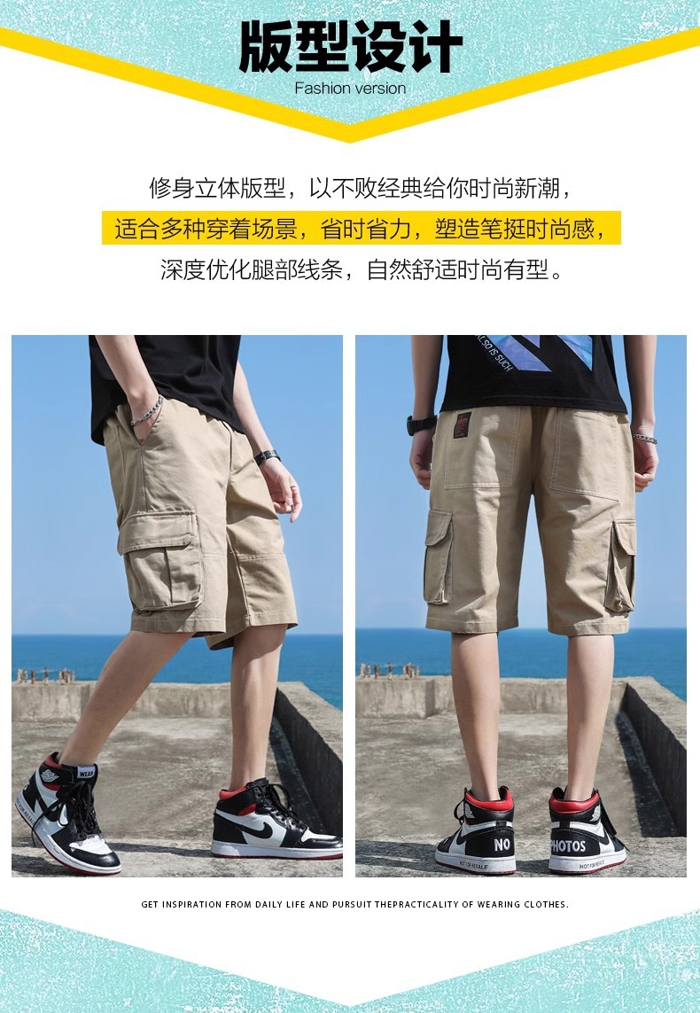 퓨어 코튼 툴링 반바지 남자 캐주얼 스포츠 5 점 바지 외부 착용 느슨한 7 점 바지 십대 위장