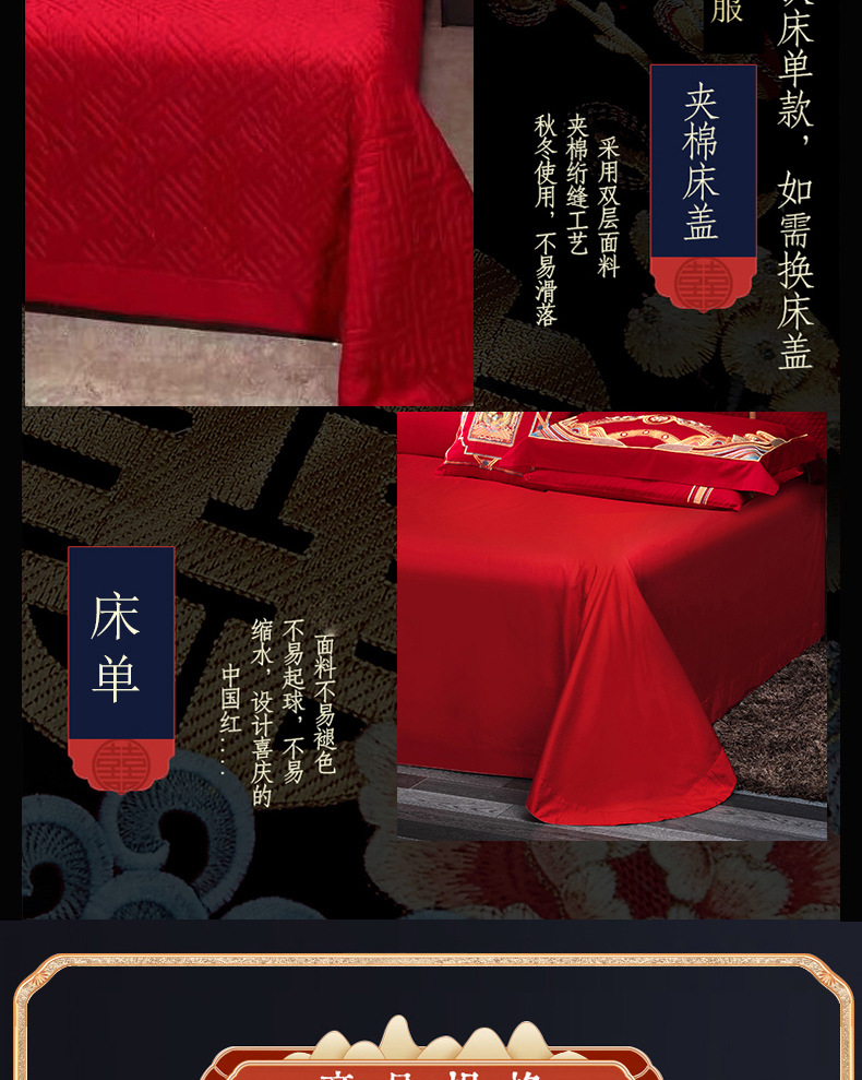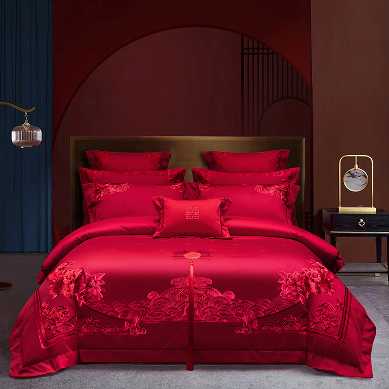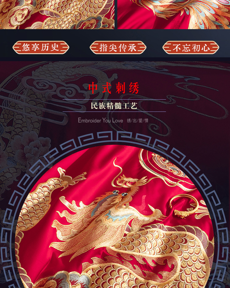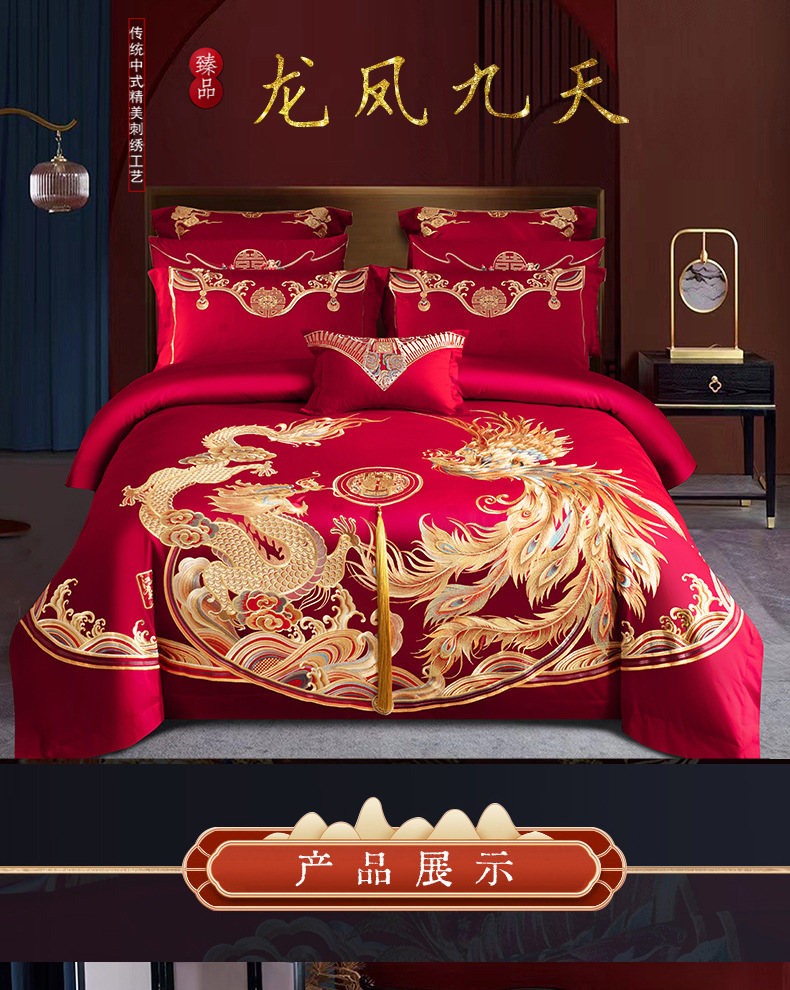 새로운 140 전통 중국 하이 엔드 절묘한 면 레드 드래곤과 피닉스 자수 웨딩 크래프트 웨딩 4 피스 세트 4