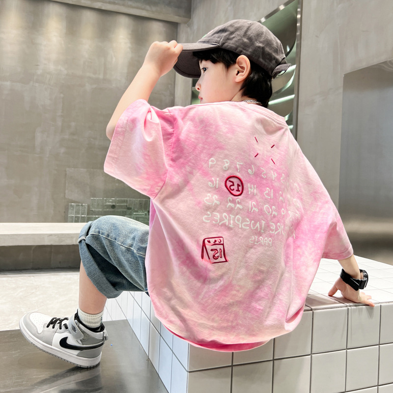 아동복 소년 여름 티셔츠 2025 새로운 중대형 어린이 여름 소년 캐주얼상의 잘 생긴 어린이 반팔 유행 티셔츠스토어 가기
