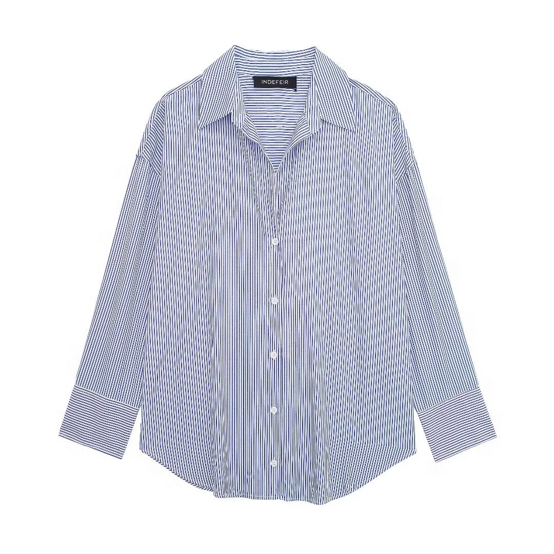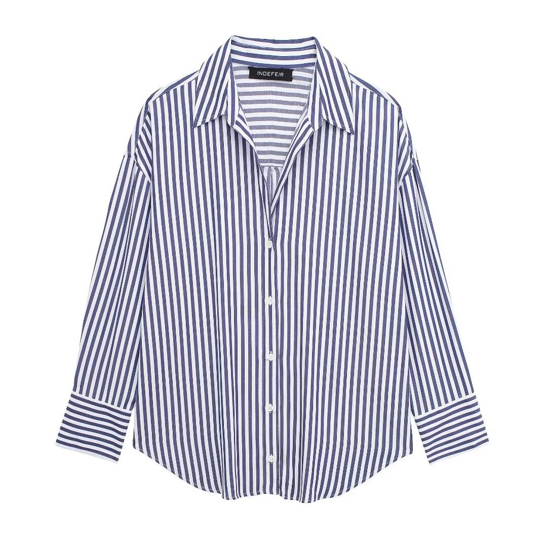 ZR 대외 무역 도매 유럽과 미국 스타일의 여성 의류 프랑스 패션 캐주얼 포플린 느슨한 긴 소매 셔츠 4387036스토어 가기