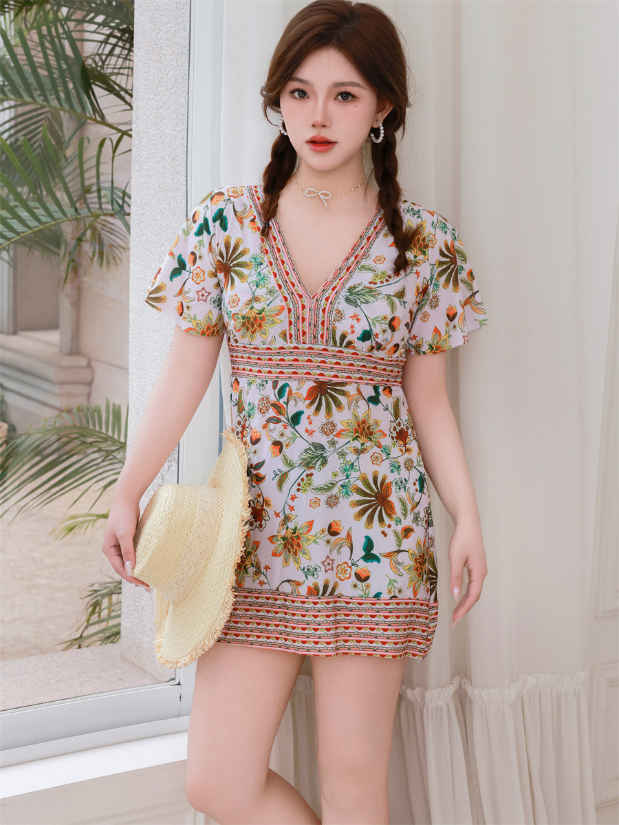 분할 수영복 여성 민족 스타일 2024 새로운 약간 뚱뚱한 소녀 슬리밍 보수적 인 휴가 온천 수영복 여름