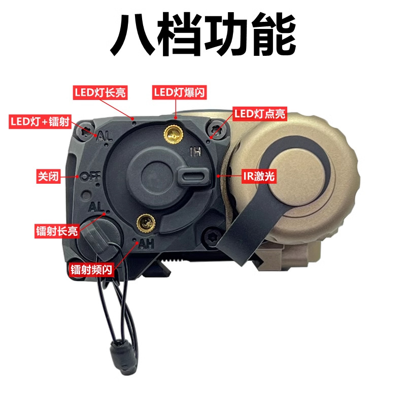 • 모래 색 (블루 레이저 + IR 레이저 + LED 빛 긴 밝은 + 플래시) 레터링 전체 기능 버전