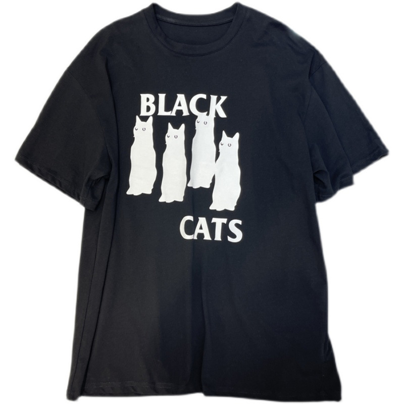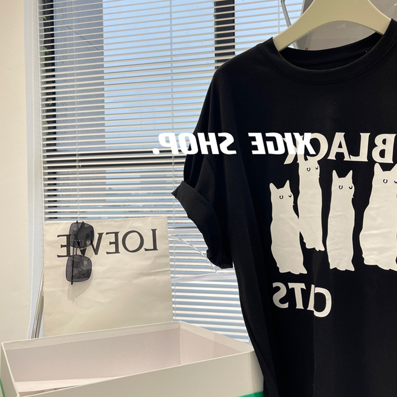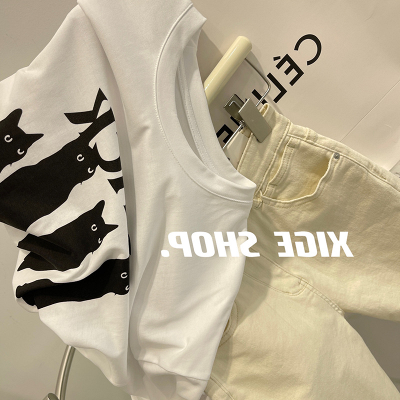 퓨어 코튼 인 슈퍼 핫 캣 프린트 반팔 올 매치 티셔츠 여성용 여름 디자인 센스 반소매 티셔츠 루즈 틱 탑스토어 가기