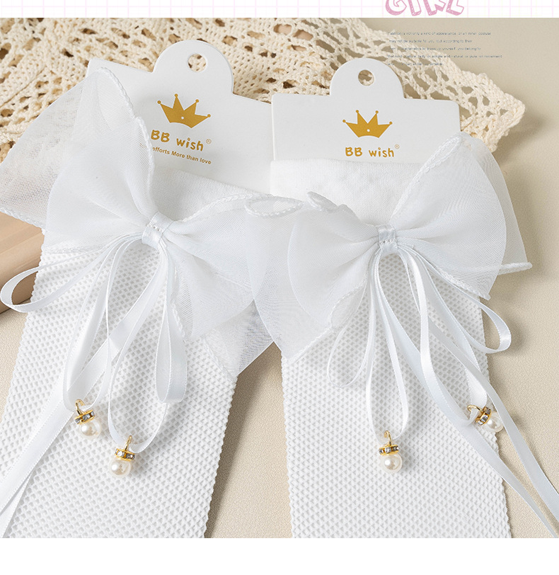 2024 여름 새로운 초박형 메쉬 진주 리본 활 어린이 중반 송아지 양말 소녀의 망사 종아리 양말스토어 가기