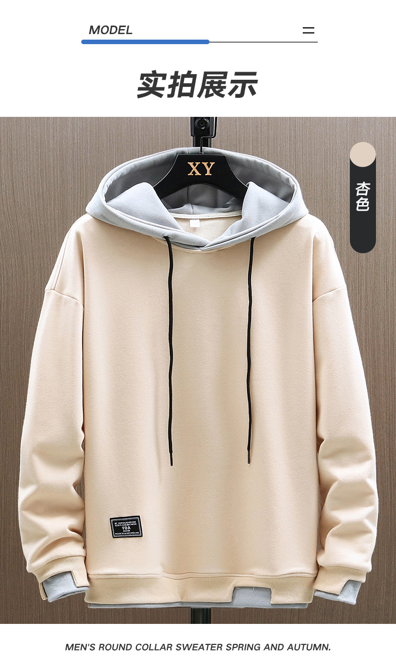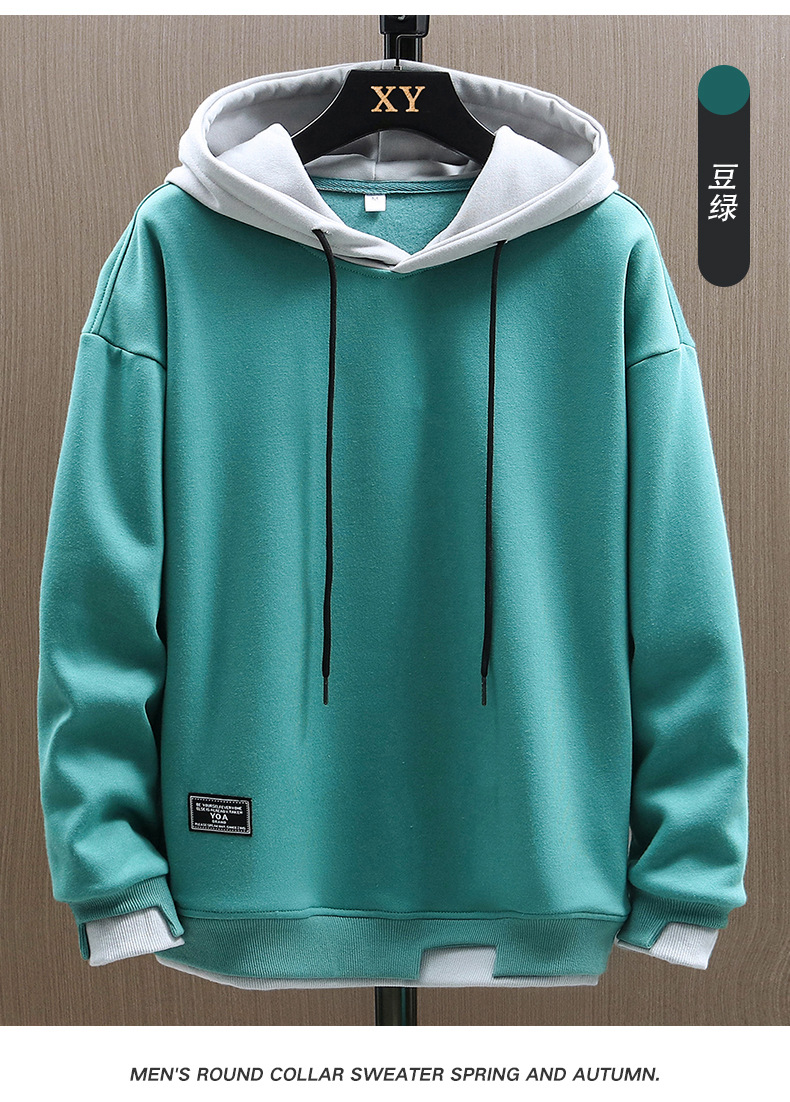 헤비 후드 스웨터 남성 2024 봄과 가을 패션 브랜드 일본 가짜 투피스 청소년 스웨터스토어 가기