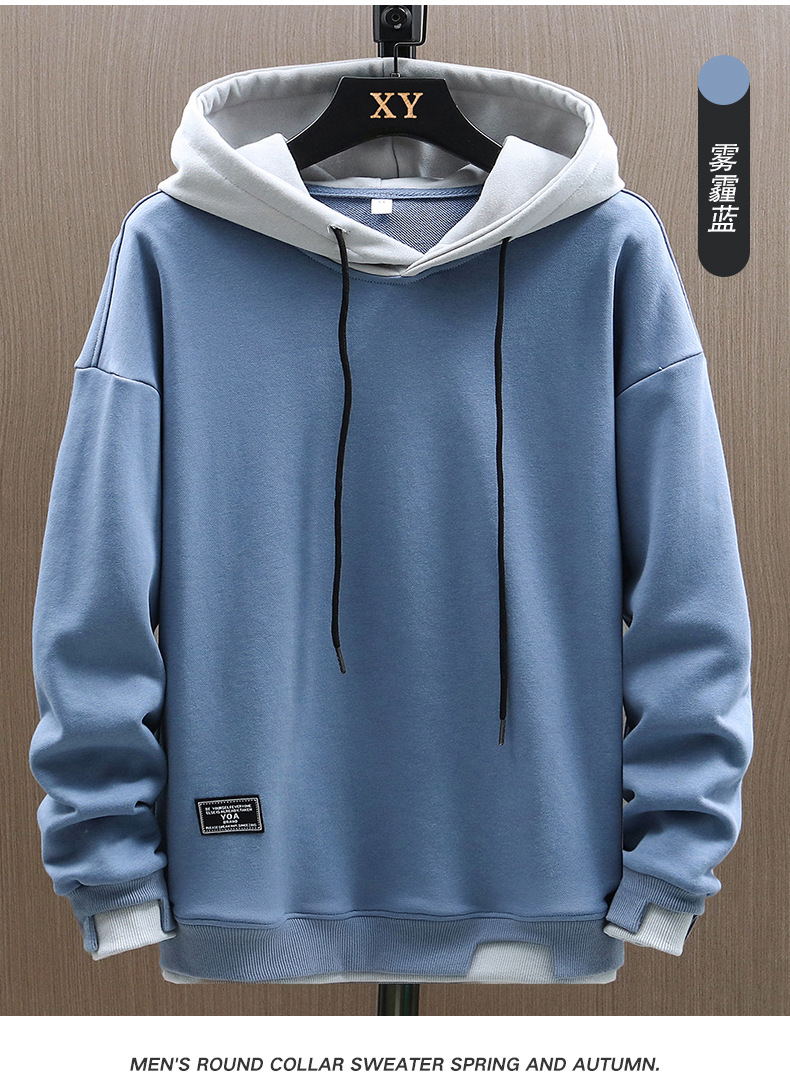 헤비 후드 스웨터 남성 2024 봄과 가을 패션 브랜드 일본 가짜 투피스 청소년 스웨터