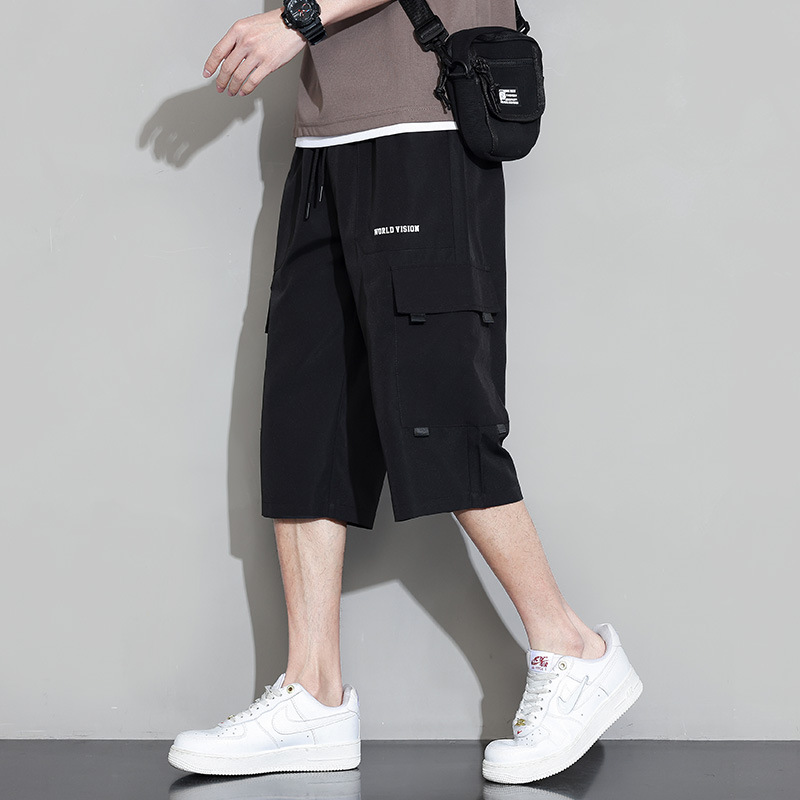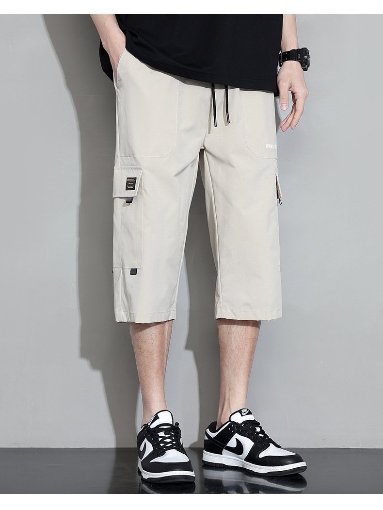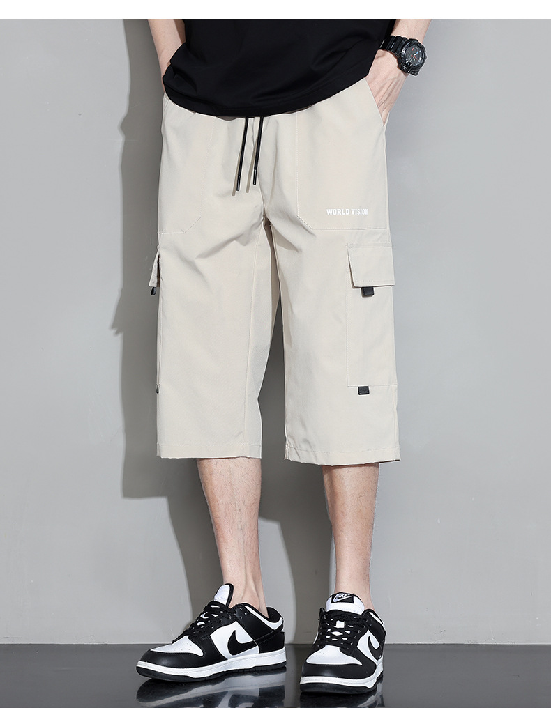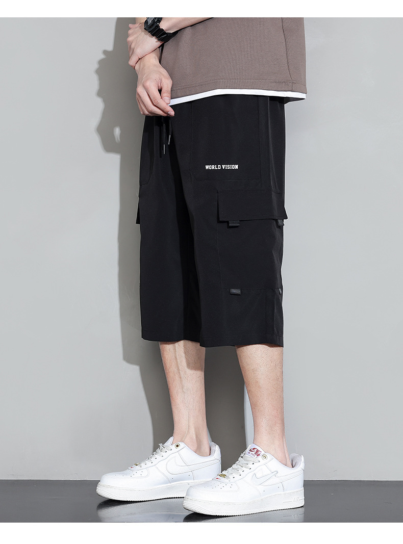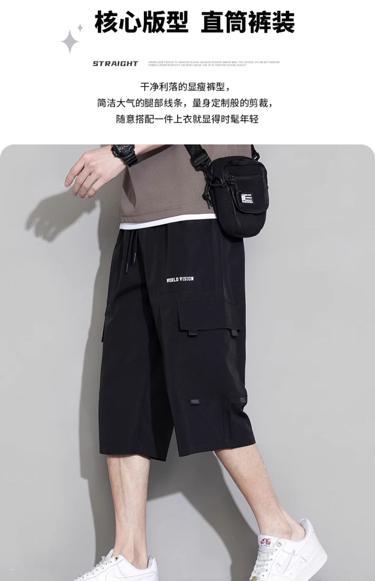 NASA 카고 크롭 팬츠 남성 여름 2025 새로운 아이스 실크 얇은 캐주얼 트렌디 브랜드 루즈 속건 아메리칸 반바지스토어 가기