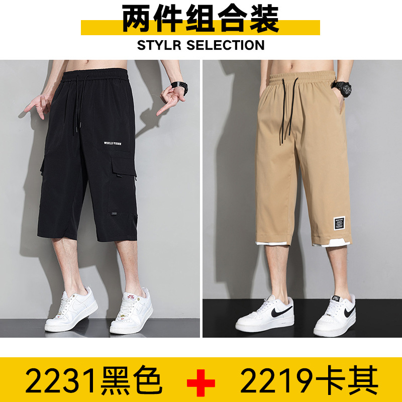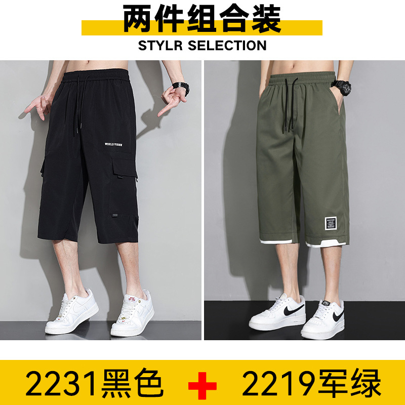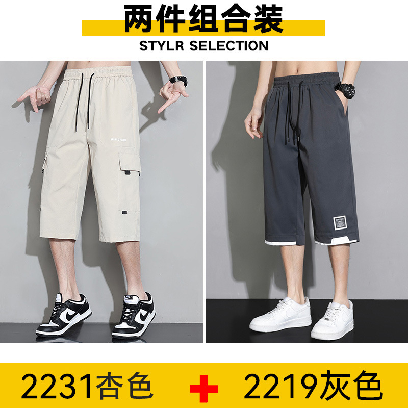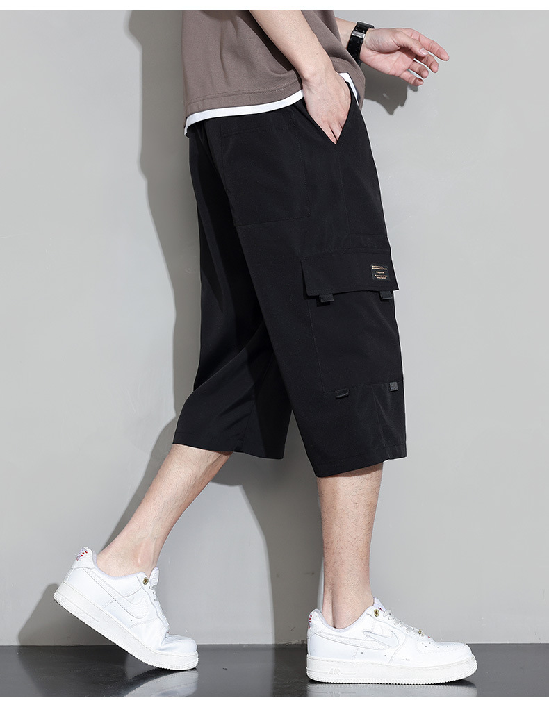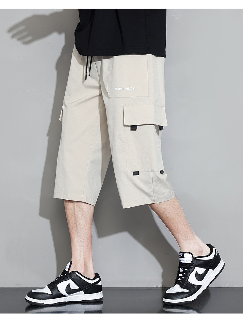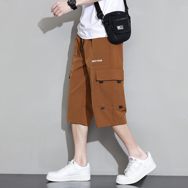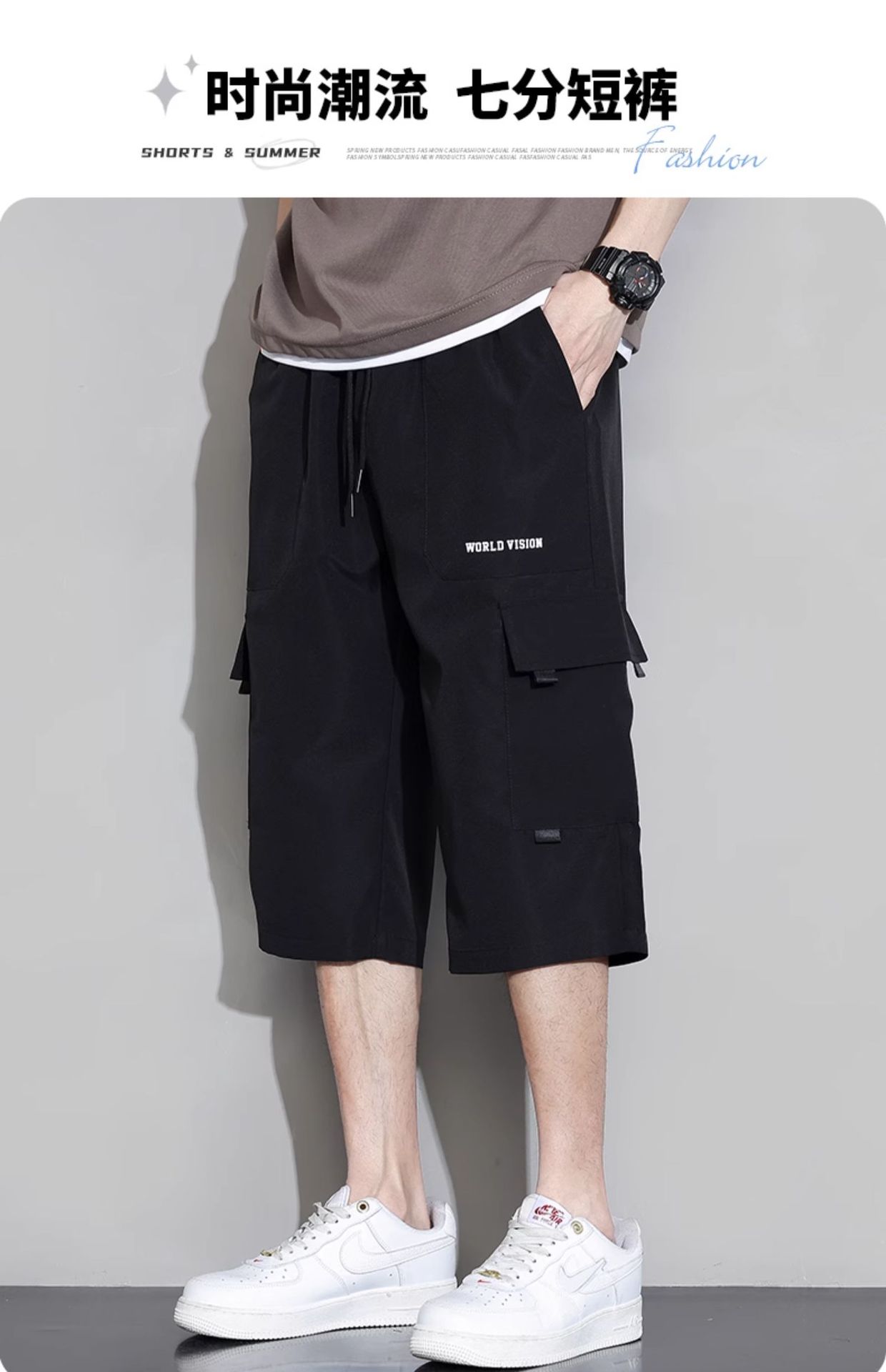 NASA 카고 크롭 팬츠 남성 여름 2025 새로운 아이스 실크 얇은 캐주얼 트렌디 브랜드 루즈 속건 아메리칸 반바지스토어 가기