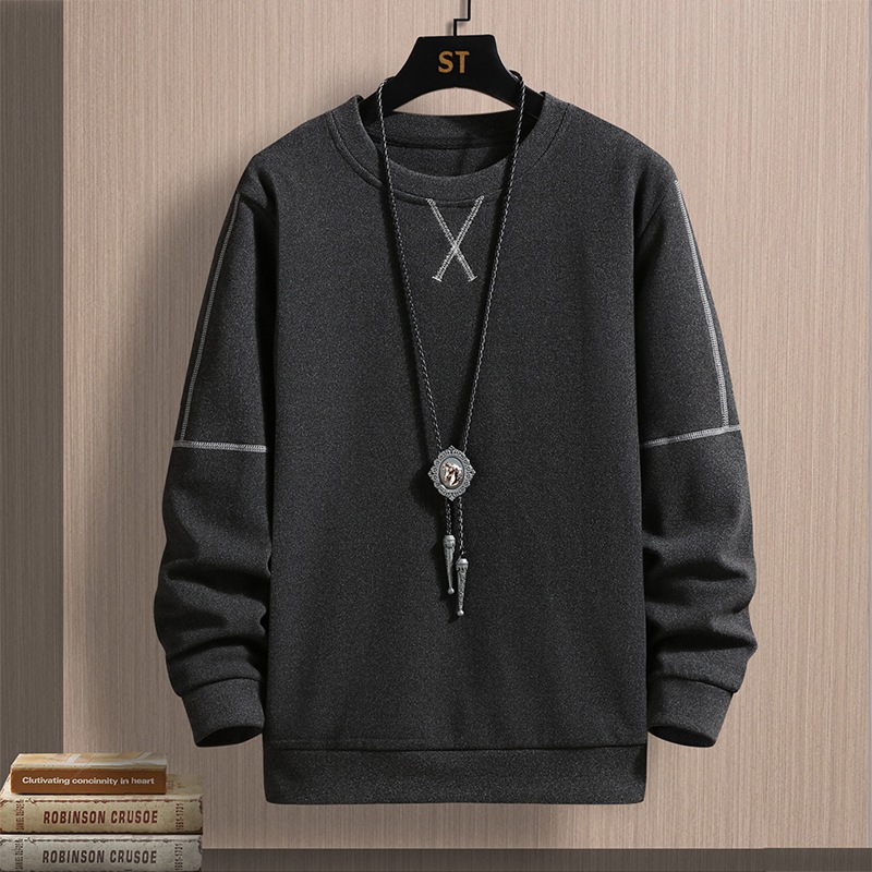 트렌디 한 브랜드 스웨터 남성 가을 새로운 한국 스타일 내부 둥근 목 긴 소매 티셔츠 바지 셔츠 토끼 벨벳 따뜻한 셔츠