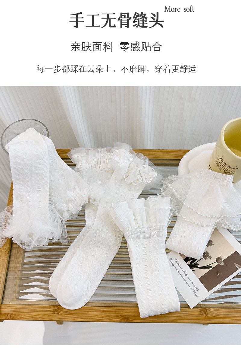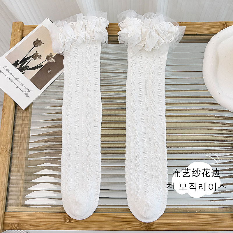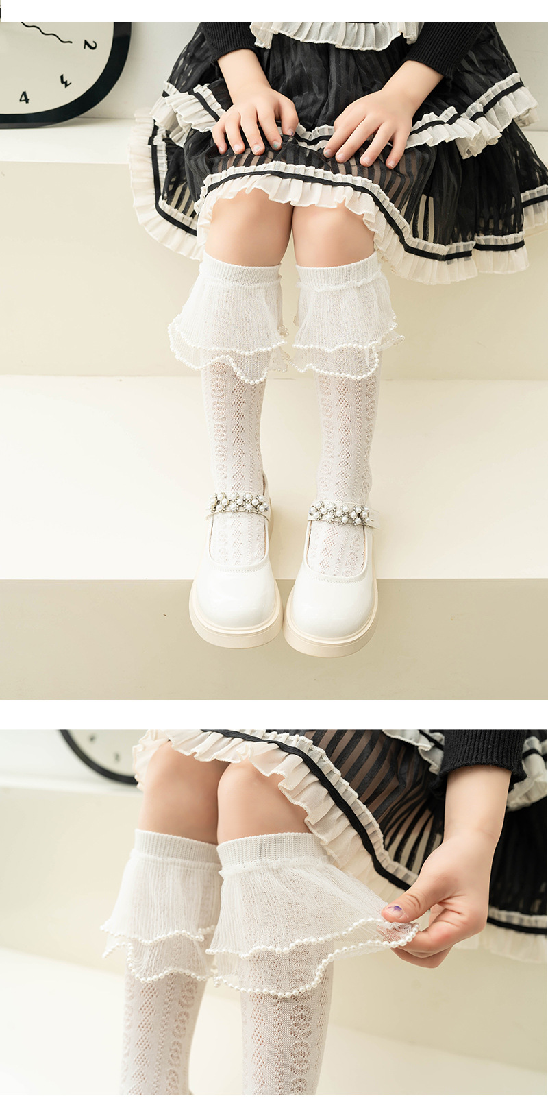 소녀의 봄과 여름 얇은 양말 더블 레이어 레이스 공주 활 아기 중간 종아리 양말 어린이 아기 소녀의 종아리 양말