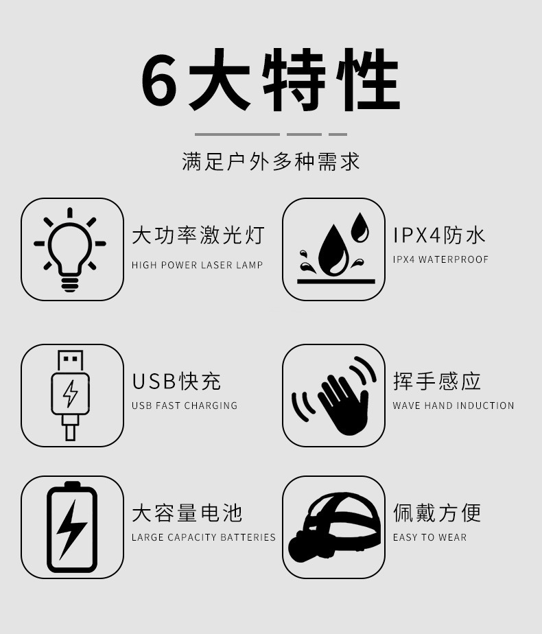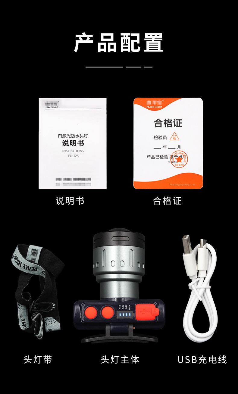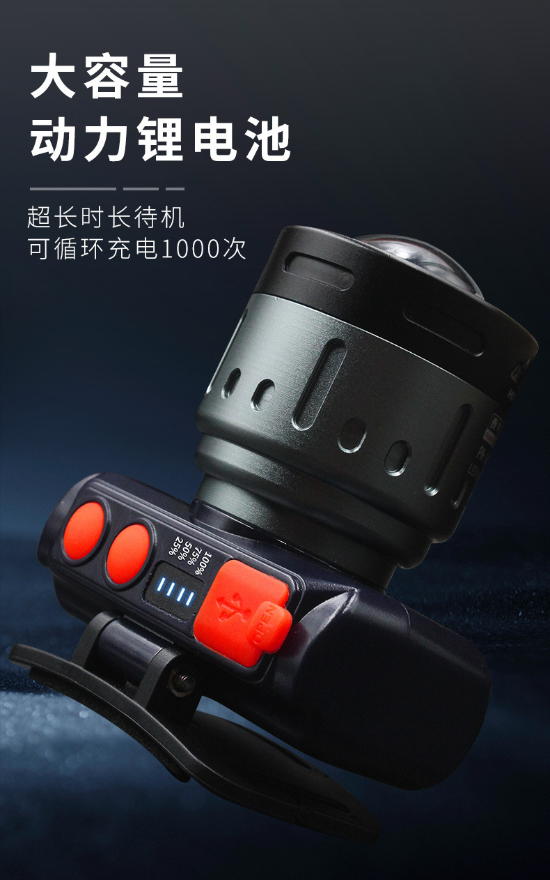 레이저 파 유도 전조등 충전 긴 내구성 강한 빛 리튬 배터리 헤드 장착 광부의 램프 야외 강한 빛 led 전조등