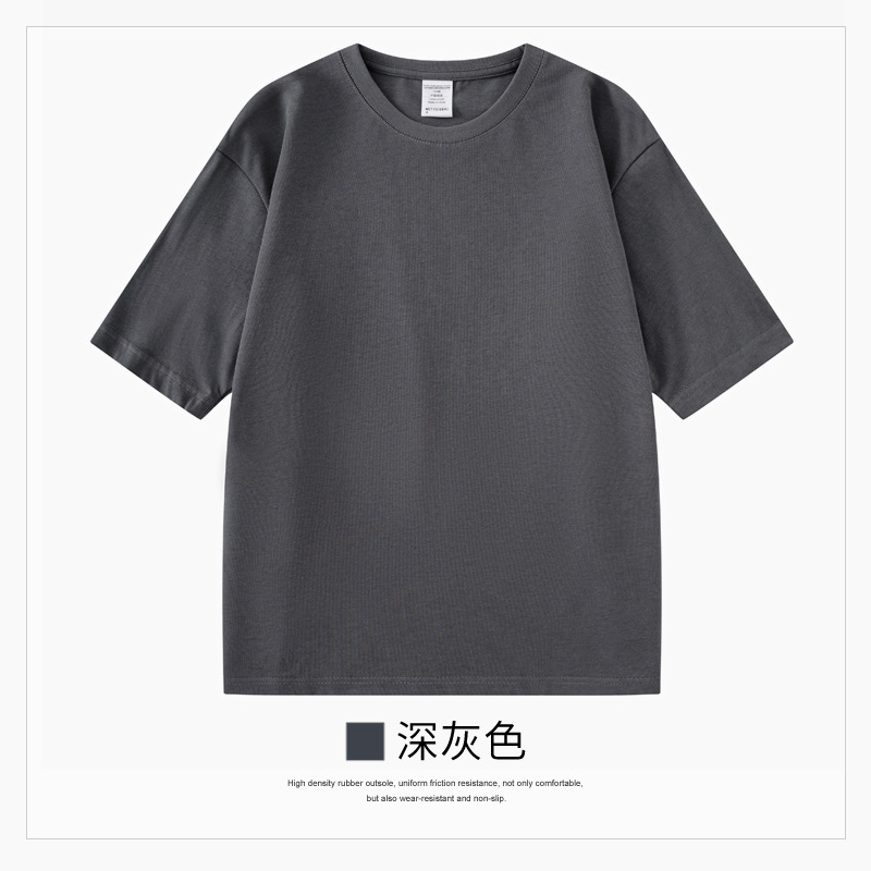 320g 헤비급 2바늘 라운드 넥 반팔 코튼 트렌디 브랜드 여름 티셔츠 루즈한 하이엔드 그레이 두꺼운 불투명 탑