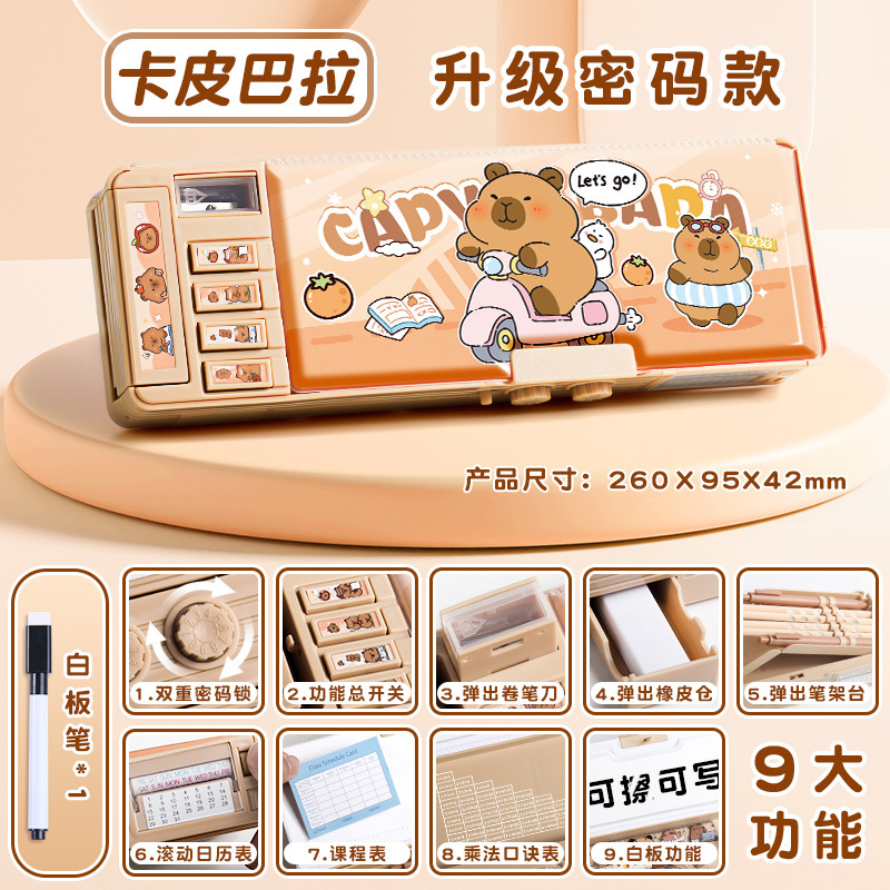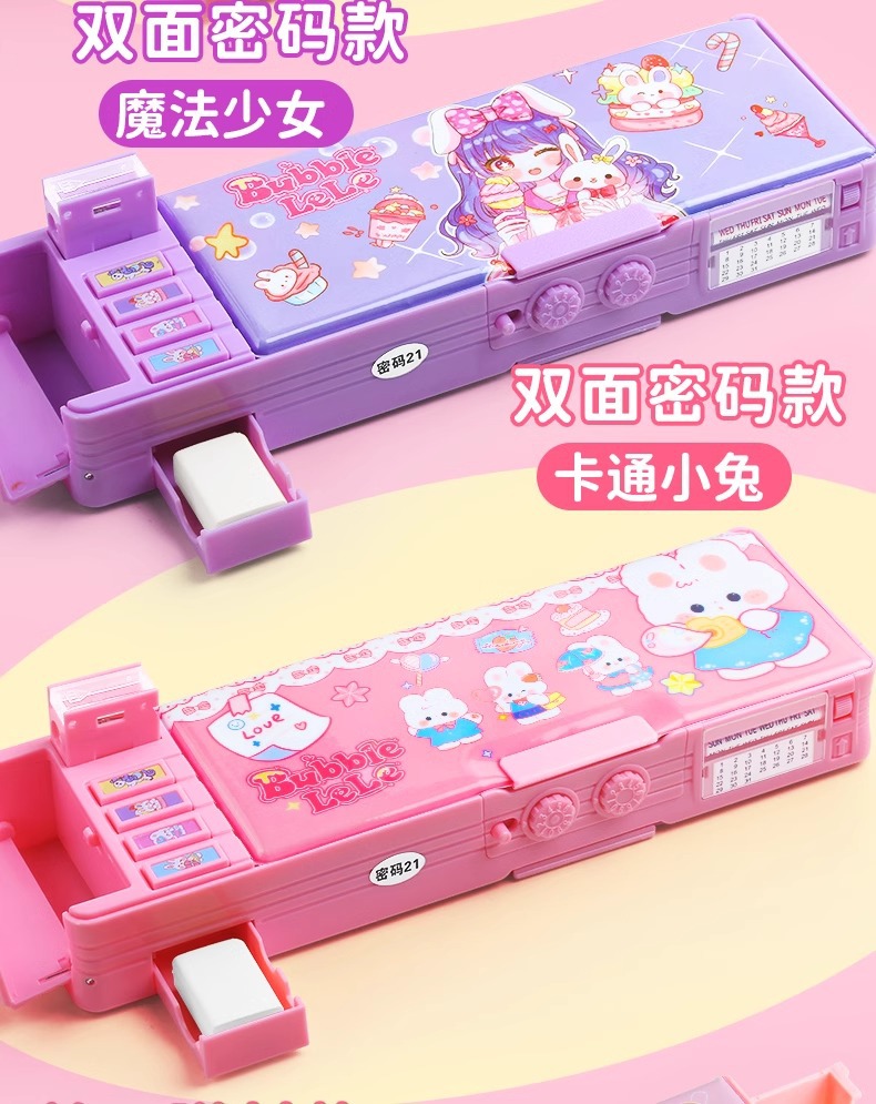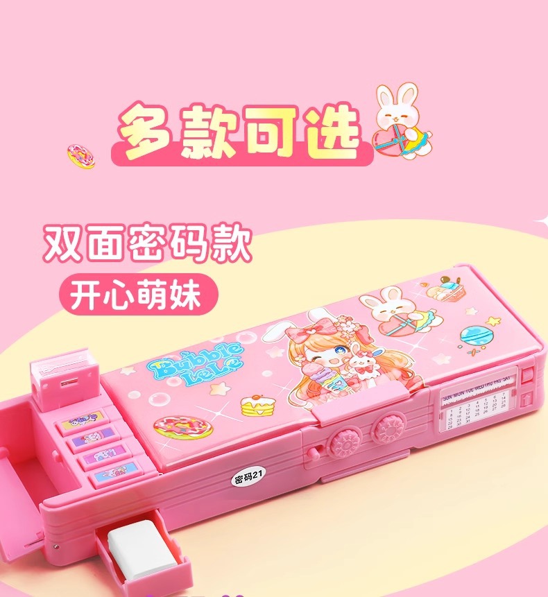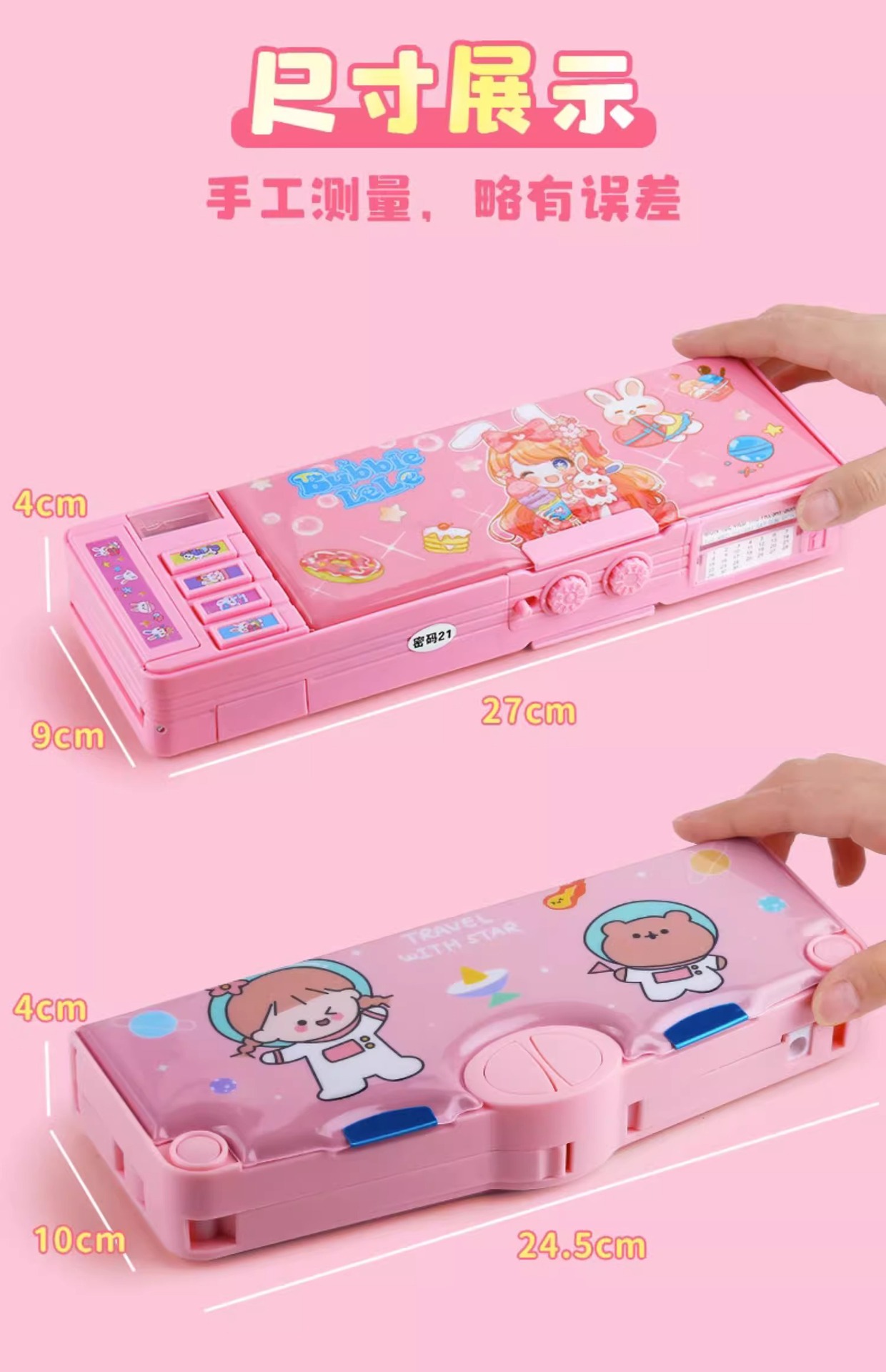 여아용 강아지 다기능 필통, 비밀번호 잠금 장치, 자동 필통, 초등학생용 어린이 필통