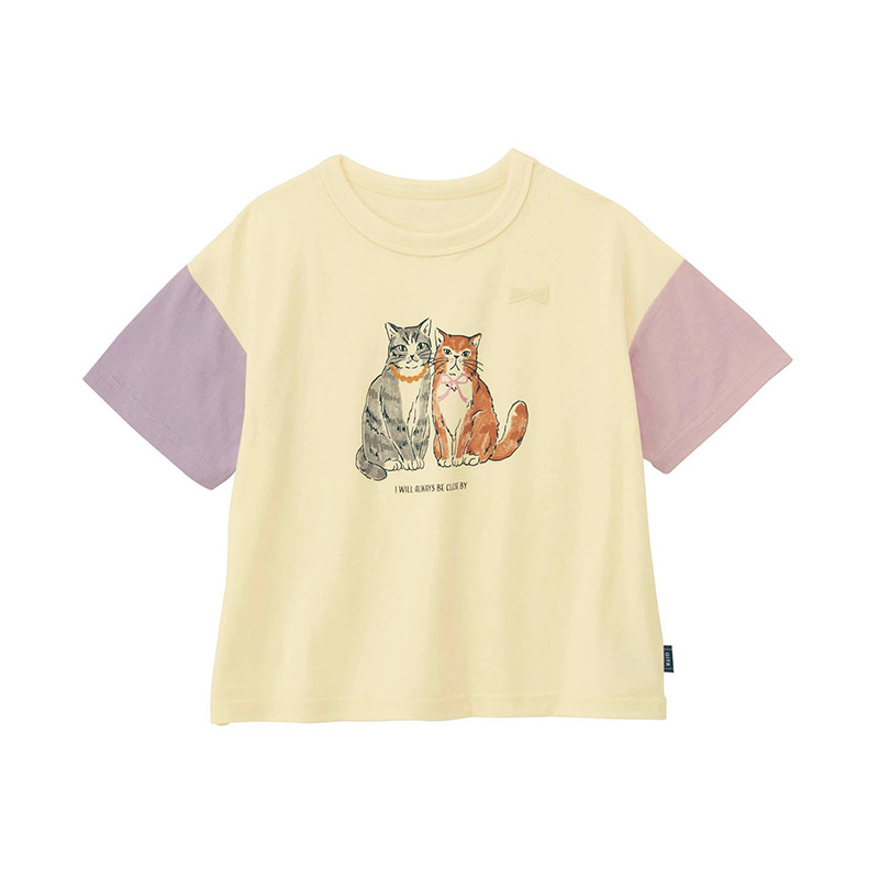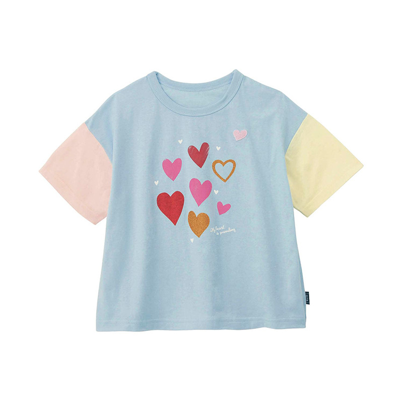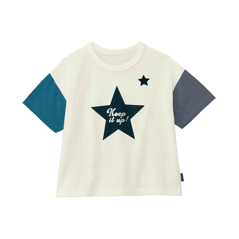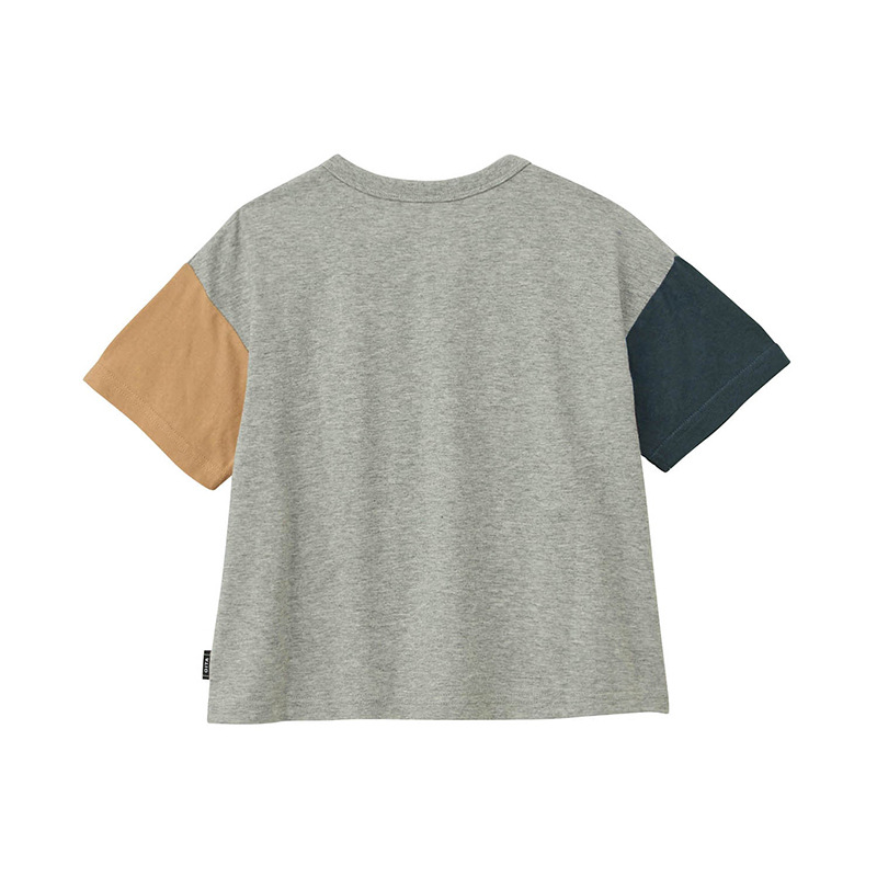 千趣儿童宽版落肩纯棉拼色袖T恤