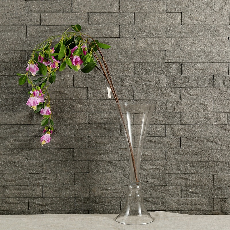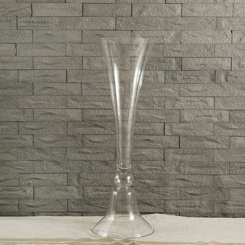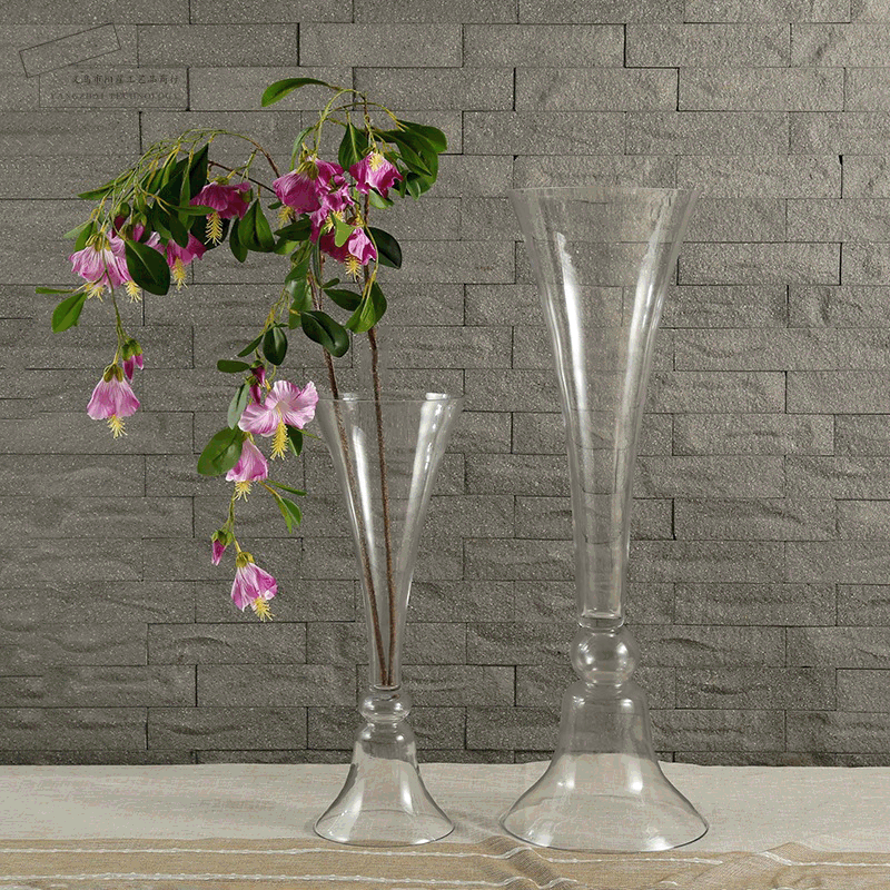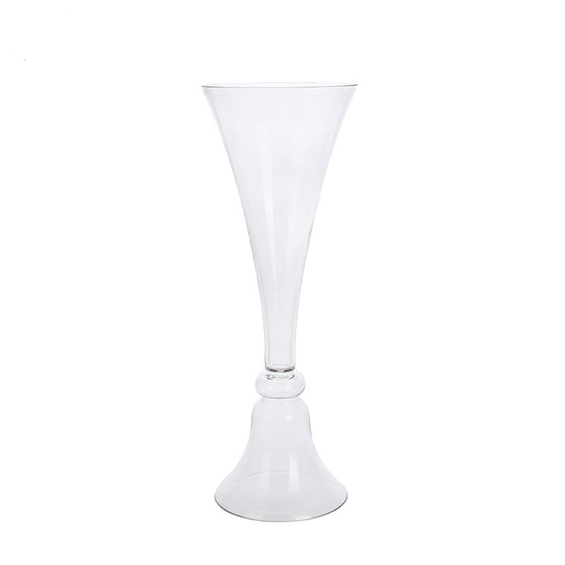도매 간단한 스타일 유럽 테이블 꽃병 벨 입 높은 병 투명 유리 웨딩 꽃꽂이 꽃병