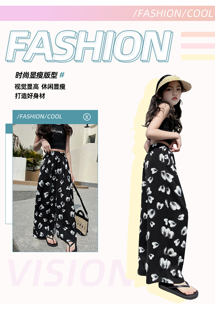 소녀의 여름 넓은 다리 바지 얇은 어린이 모기 방지 바지 중 큰 어린이 여름 캐주얼 바지 소녀 여름 바지 패션