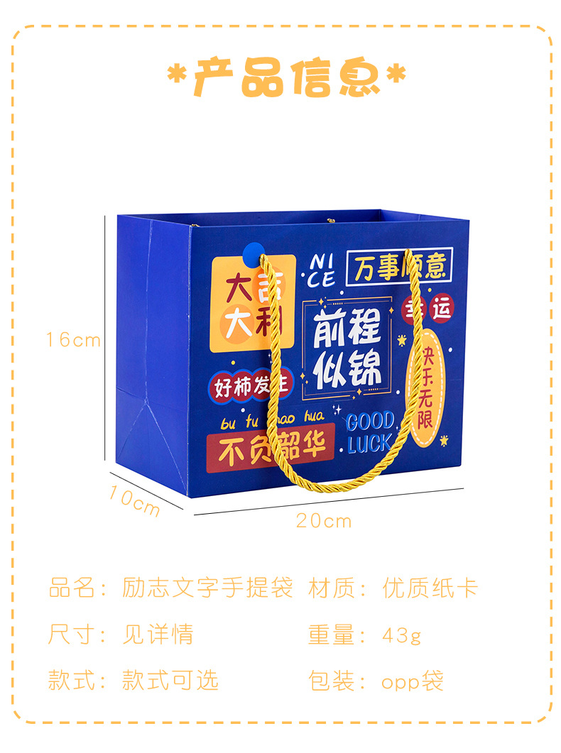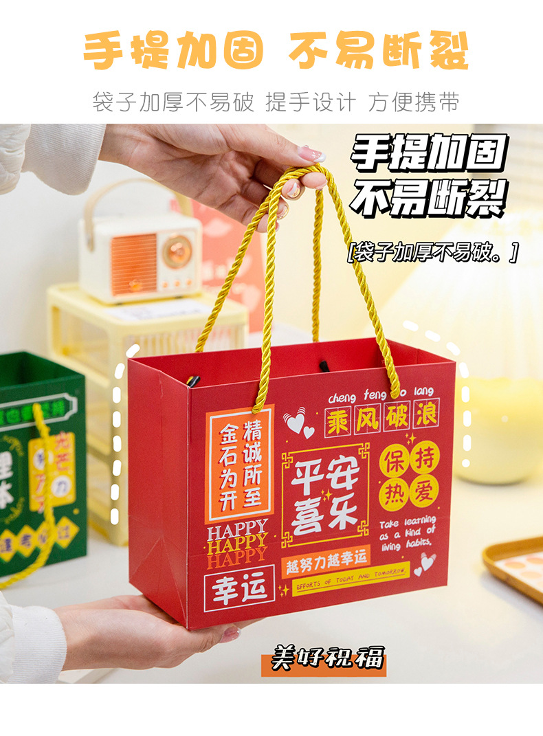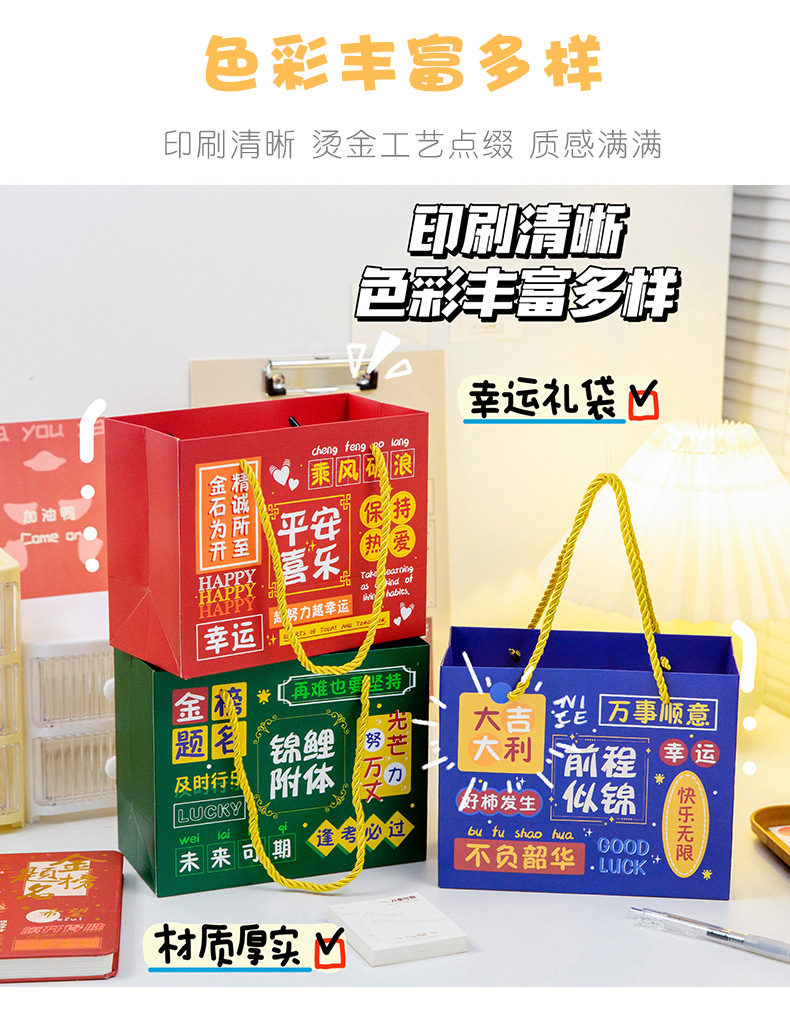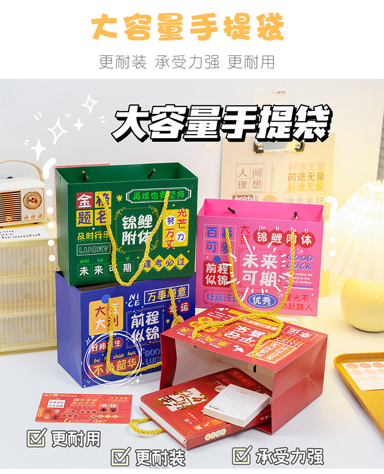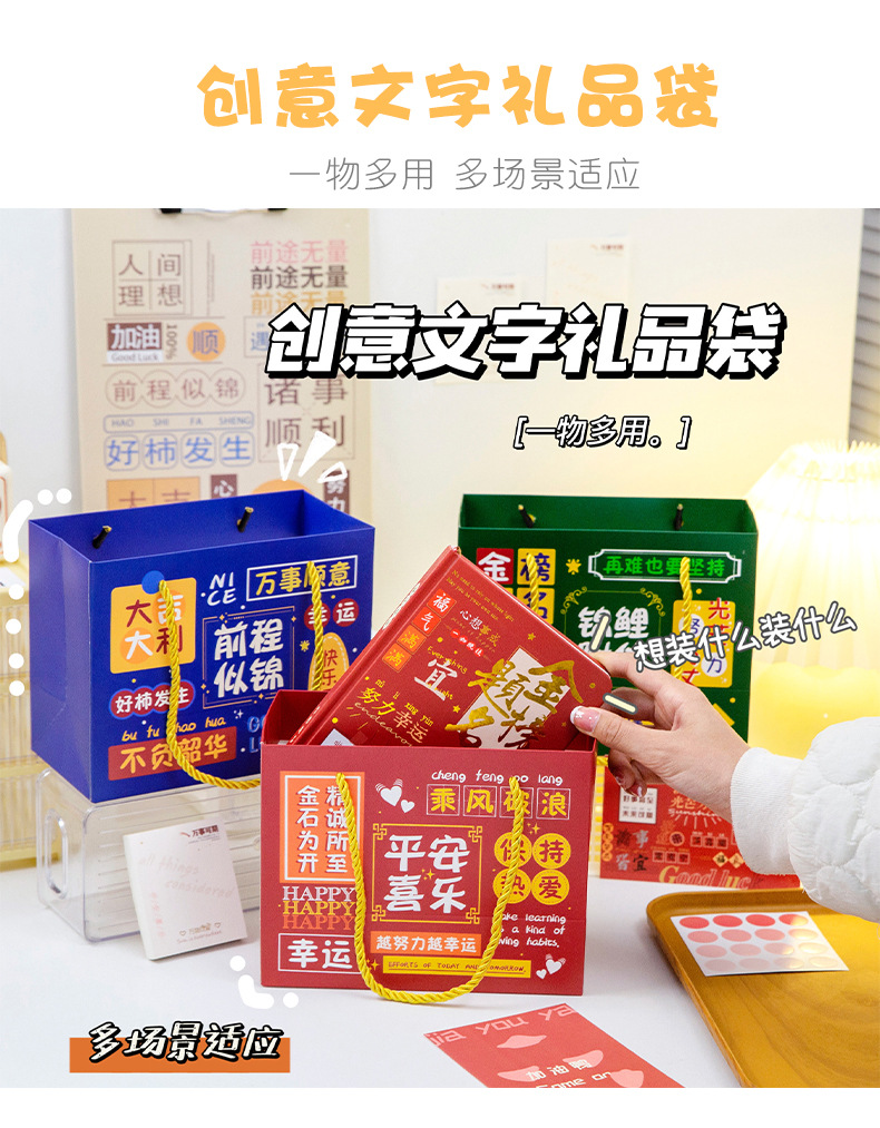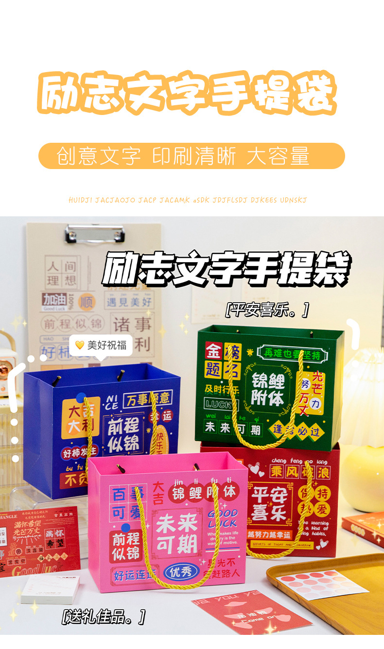 감동적인 텍스트 핸드백 귀여운 만화 선물 가방 절묘한 생일 수평 큰 두꺼운 종이 가방 포장 가방