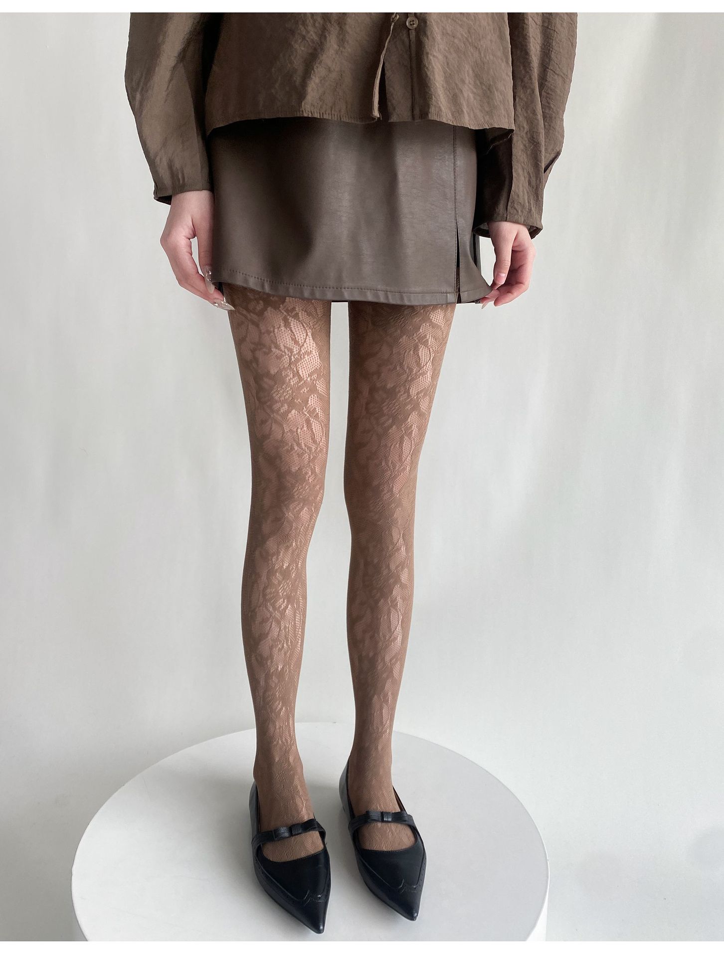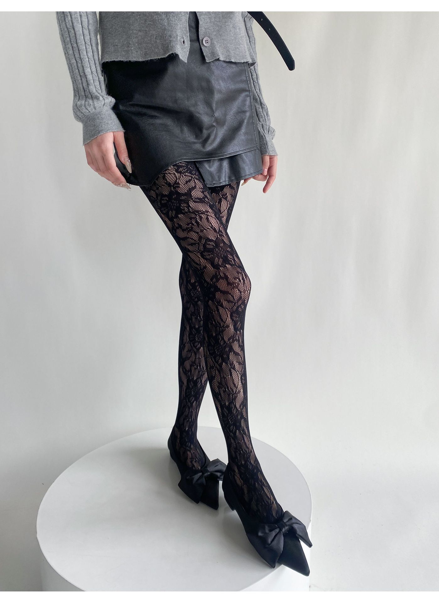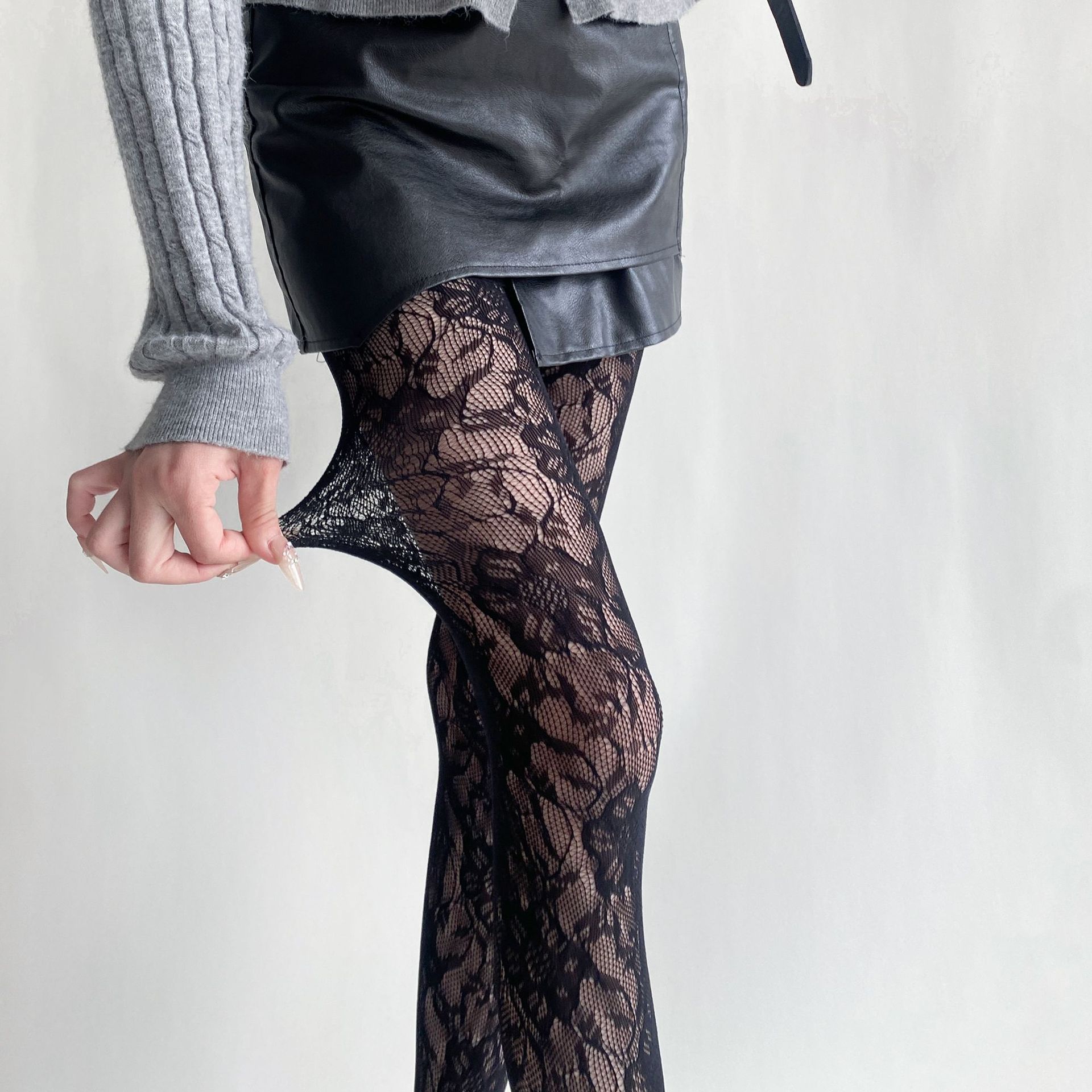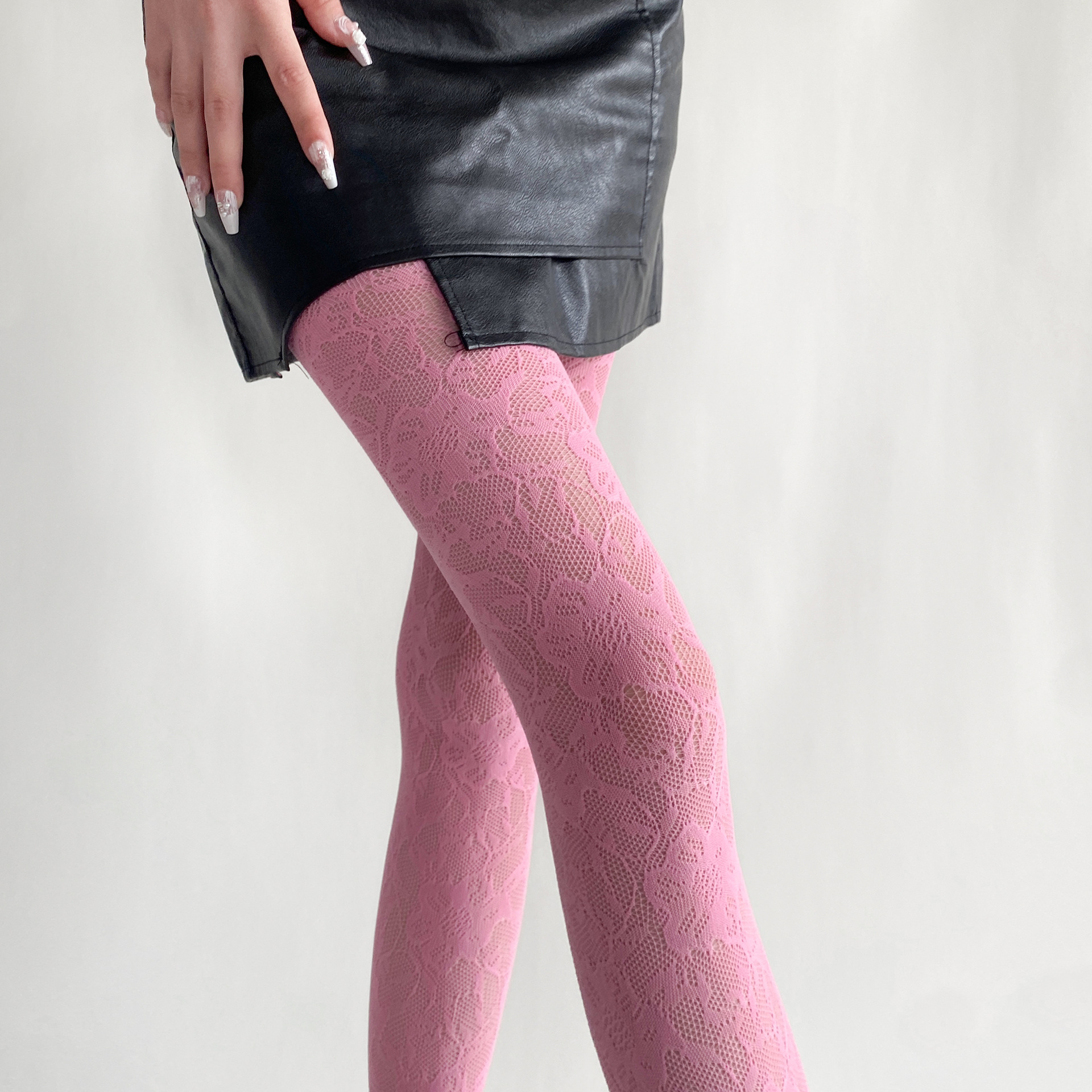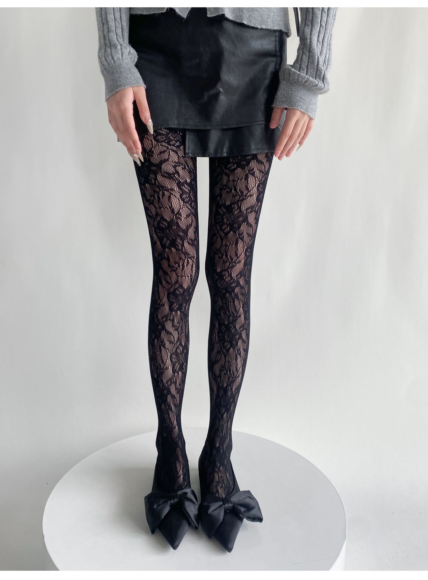 봄과 여름 새로운 복고풍 레이스 메쉬 양말 여성의 섹시한 중공 꽃 짠 얇은 어두운 순수한 흰색 팬티 스타킹