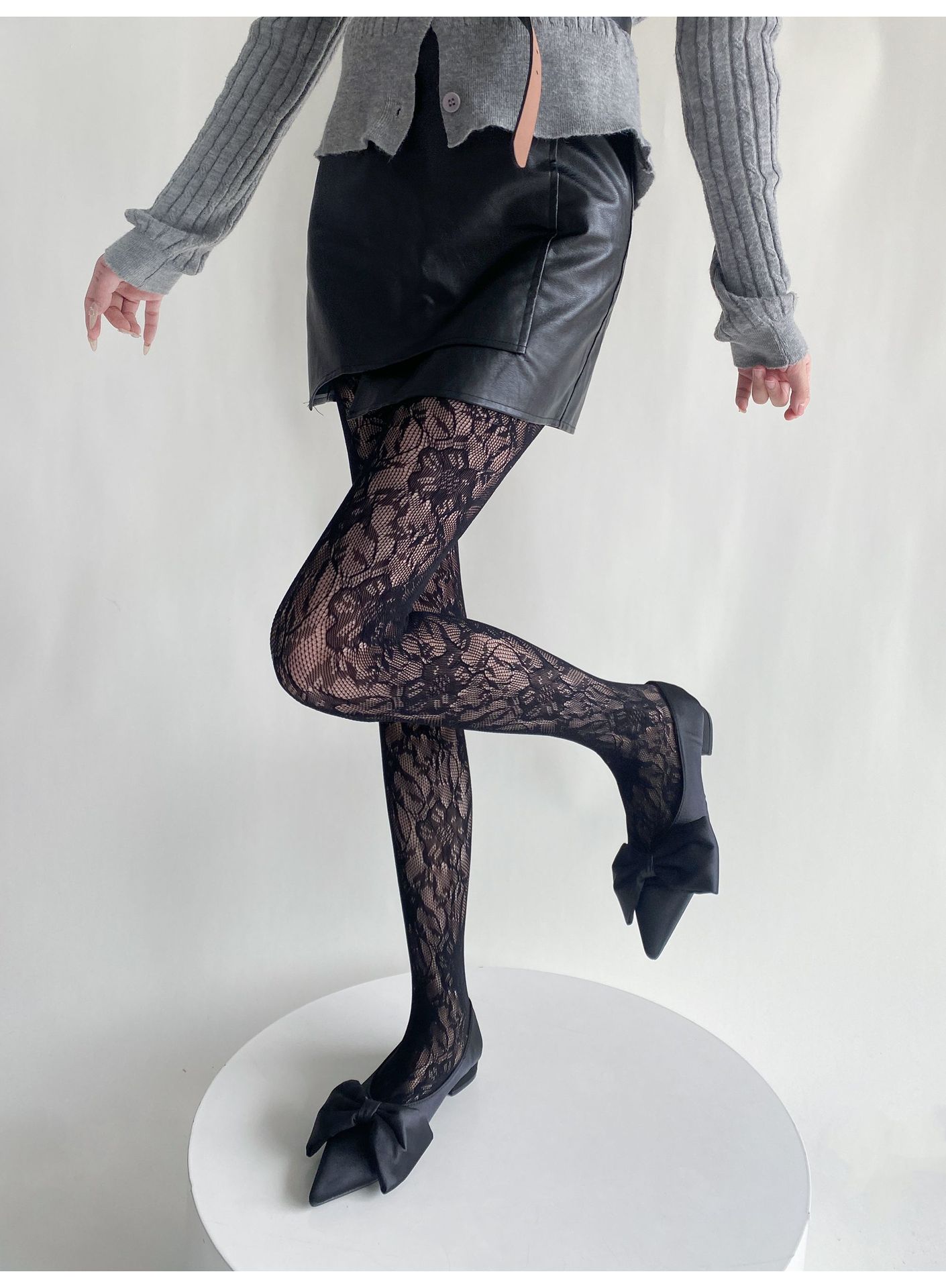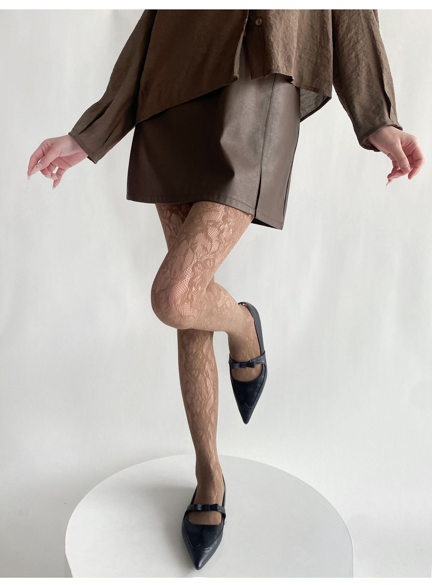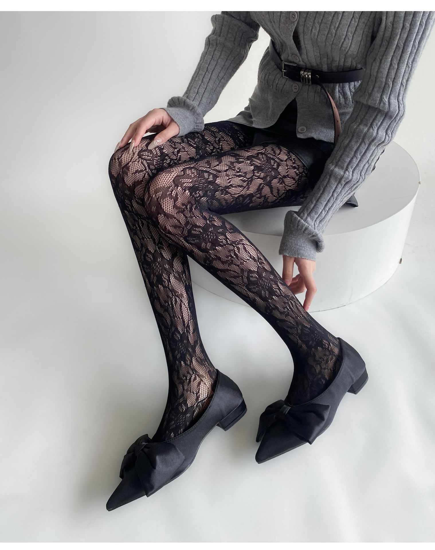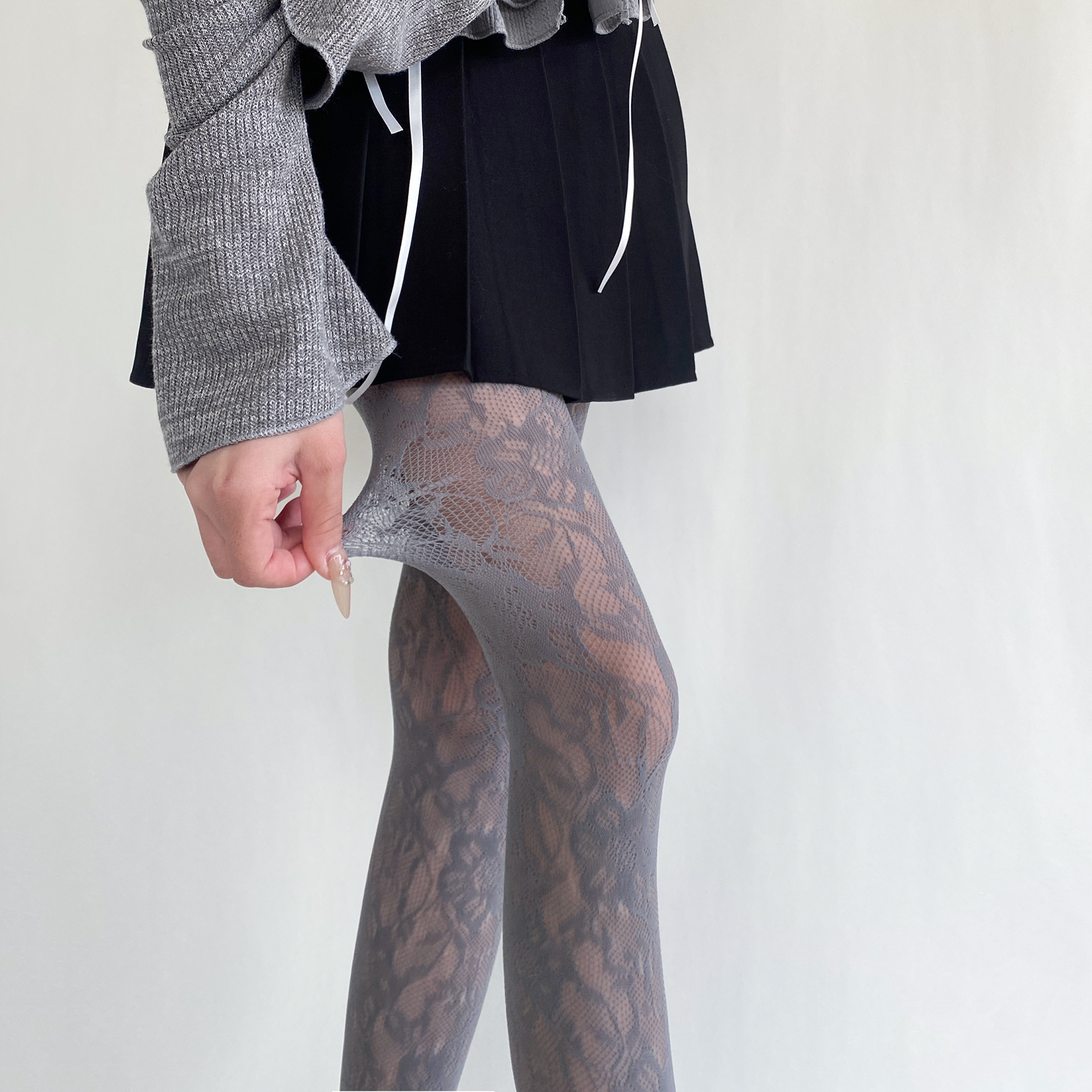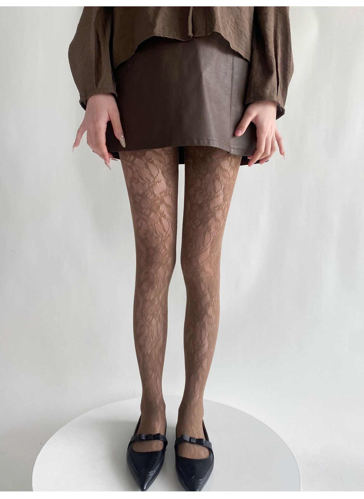 봄과 여름 새로운 복고풍 레이스 메쉬 양말 여성의 섹시한 중공 꽃 짠 얇은 어두운 순수한 흰색 팬티 스타킹