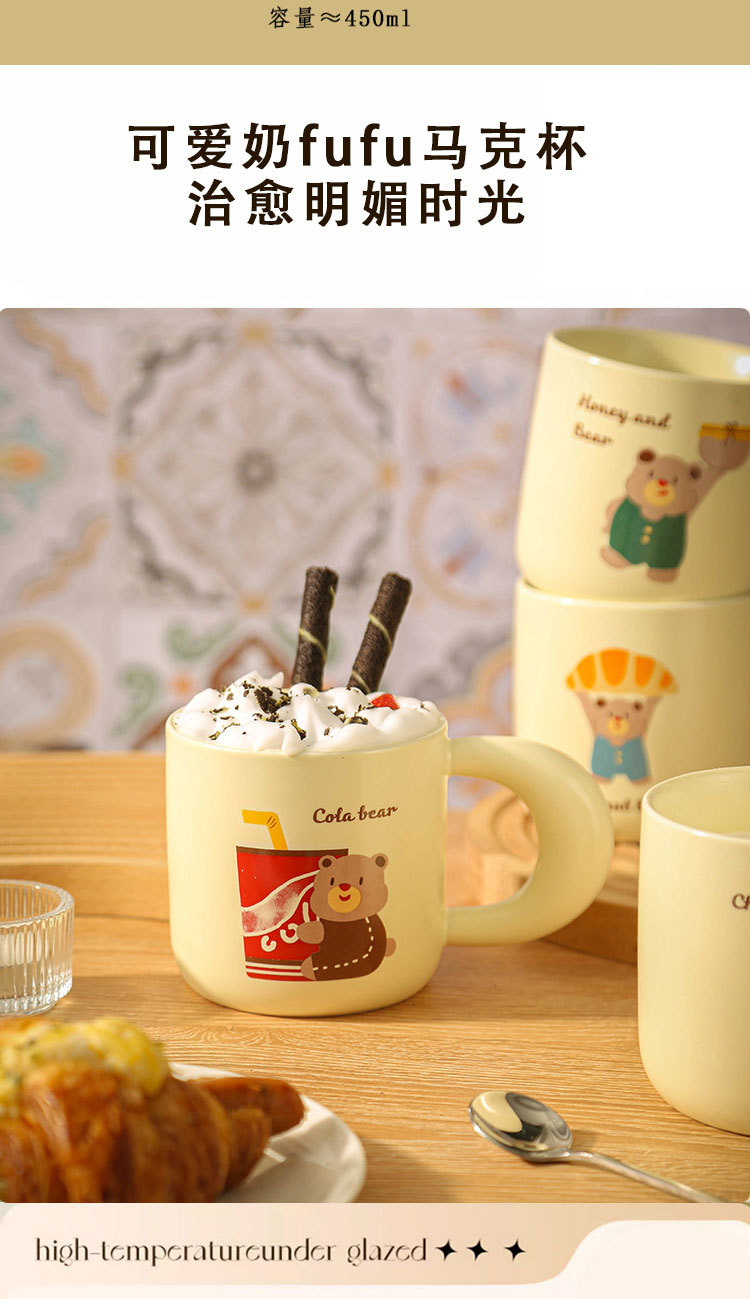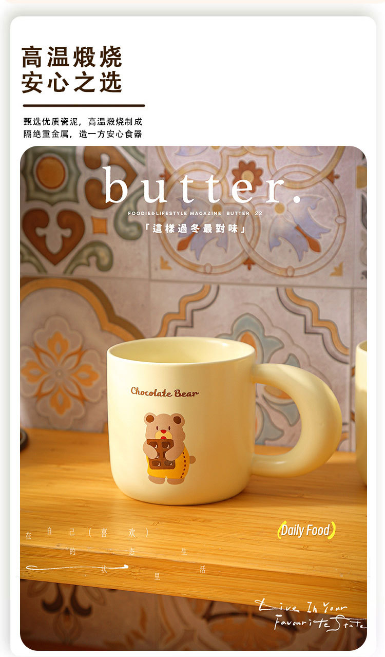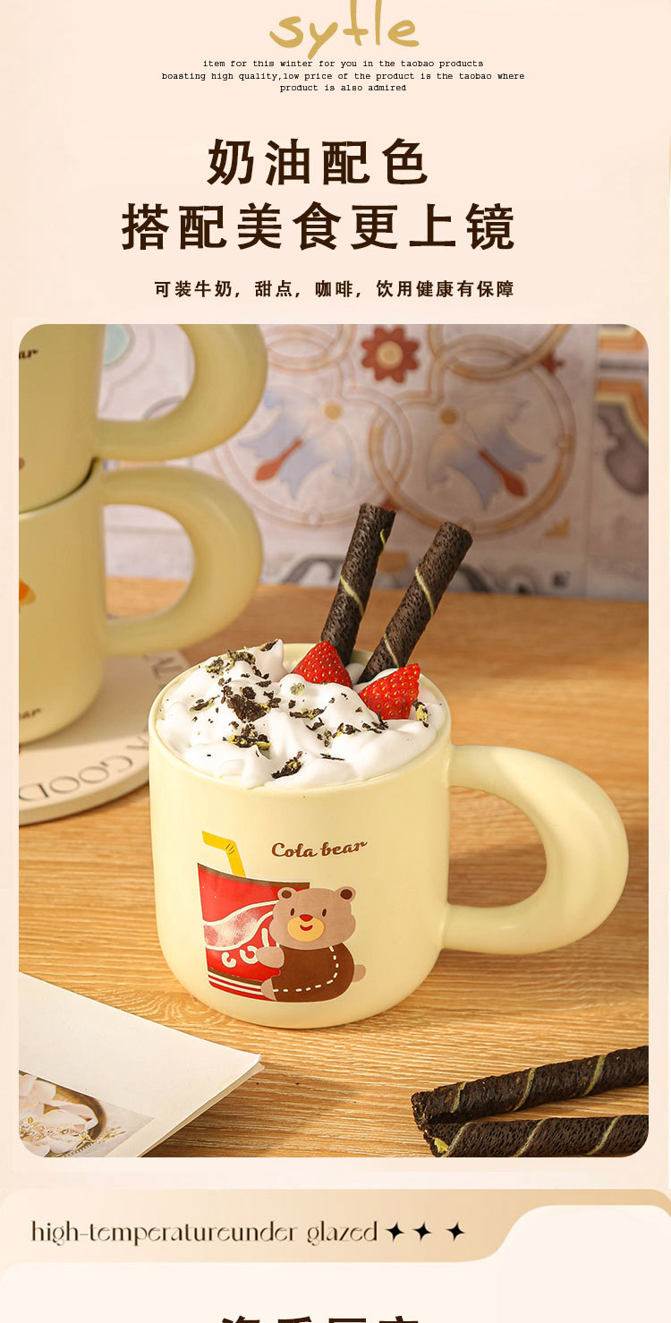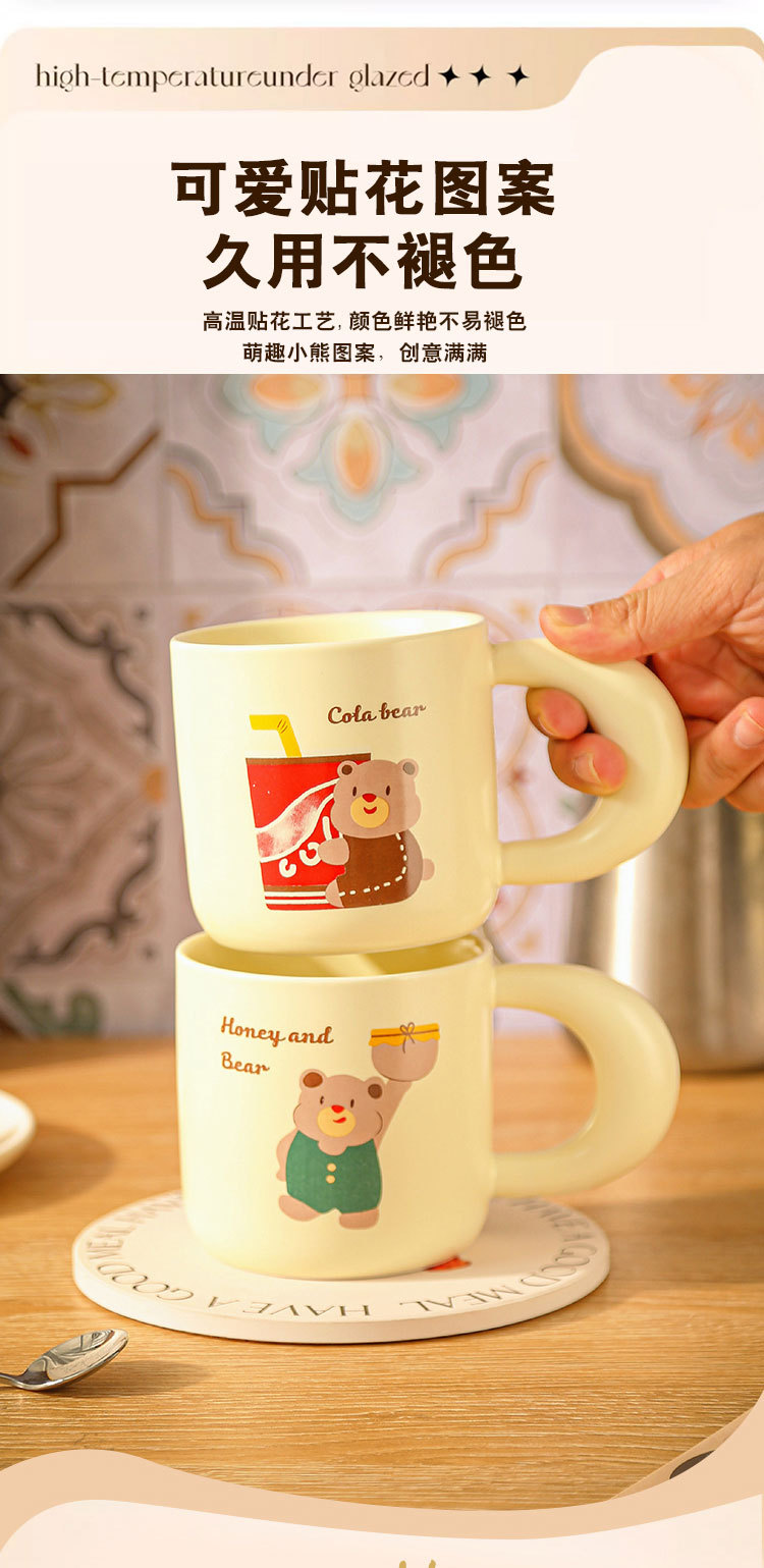 귀여운 세라믹 머그잔 만화 대용량 사무실 홈 커플 커피 컵 아침 우유 컵 구강 컵
