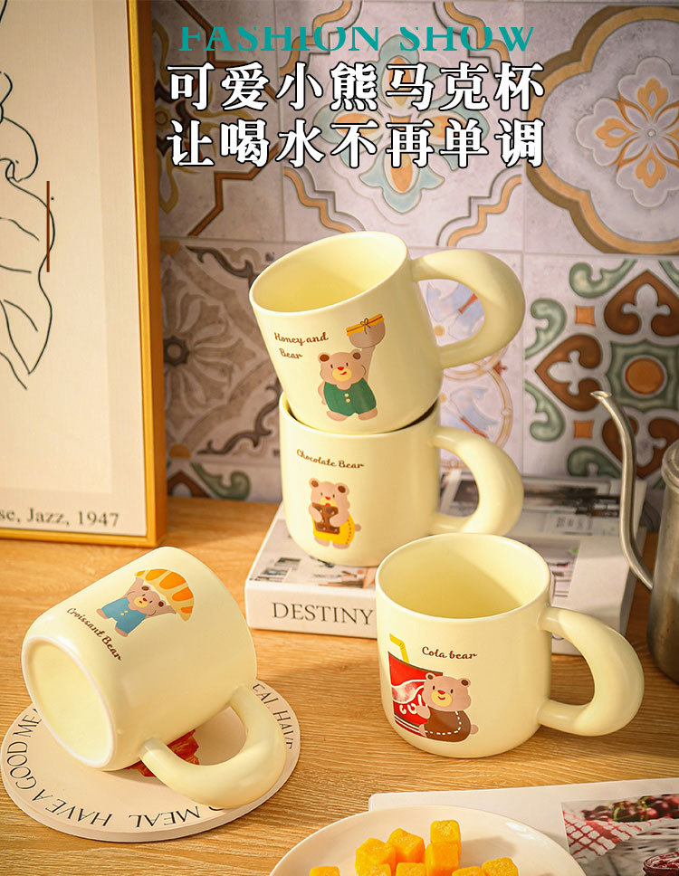 귀여운 세라믹 머그잔 만화 대용량 사무실 홈 커플 커피 컵 아침 우유 컵 구강 컵스토어 가기