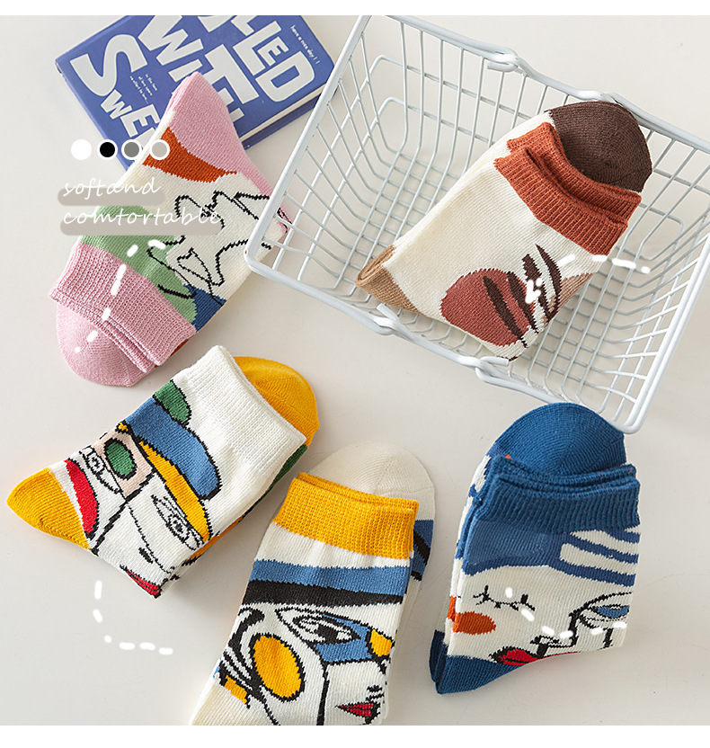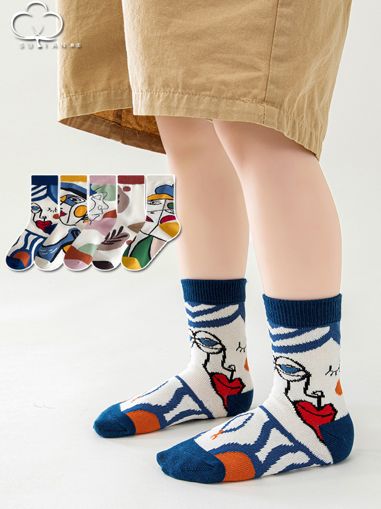 어린이 양말 일본 귀여운 소녀 스타킹 봄과 가을 소년 스타킹 낙서 소년과 소녀 면 양말 여름 양말