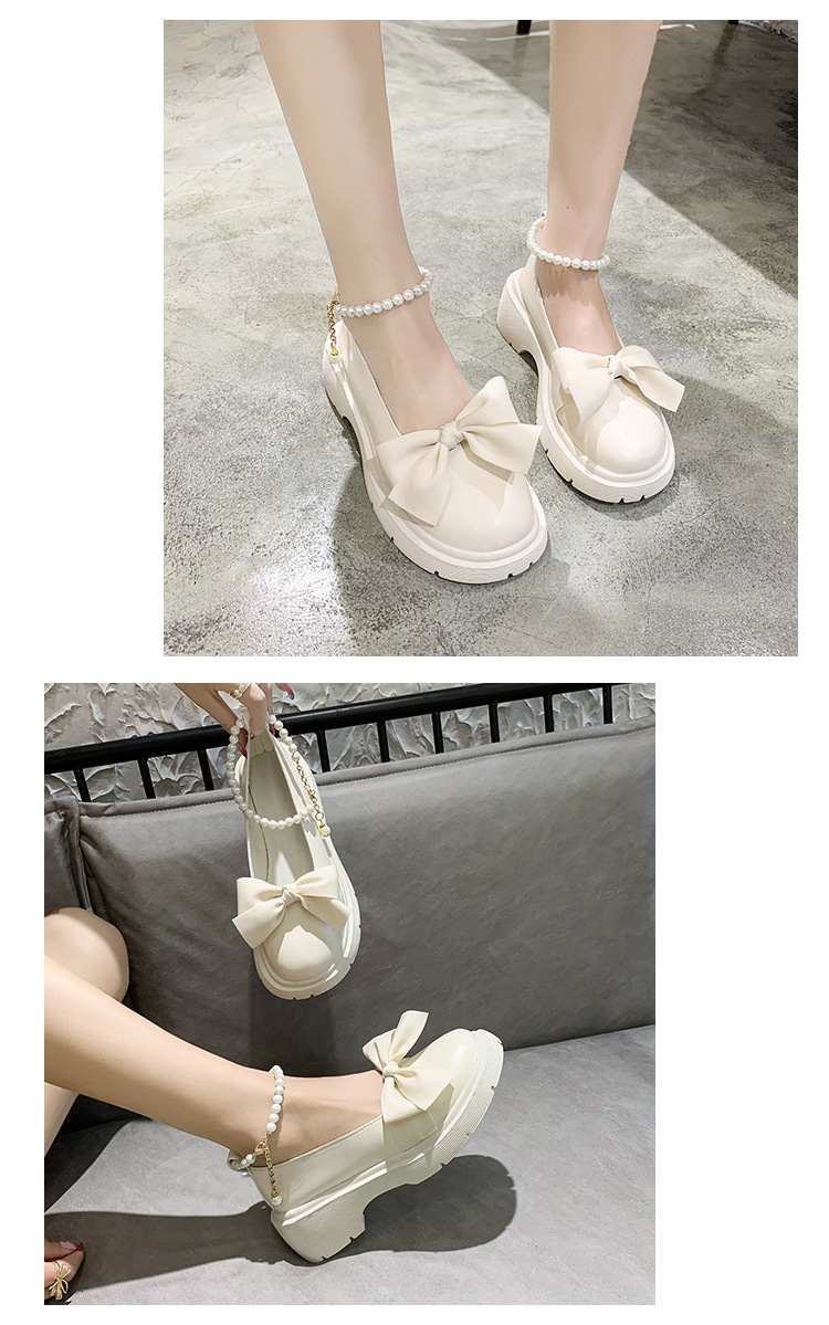 프랑스 스타일 메리 제인 신발 여성의 2024 봄과 가을 새로운 진주 활 소녀 신발 두꺼운 힐 요정 스타일 로퍼스토어 가기