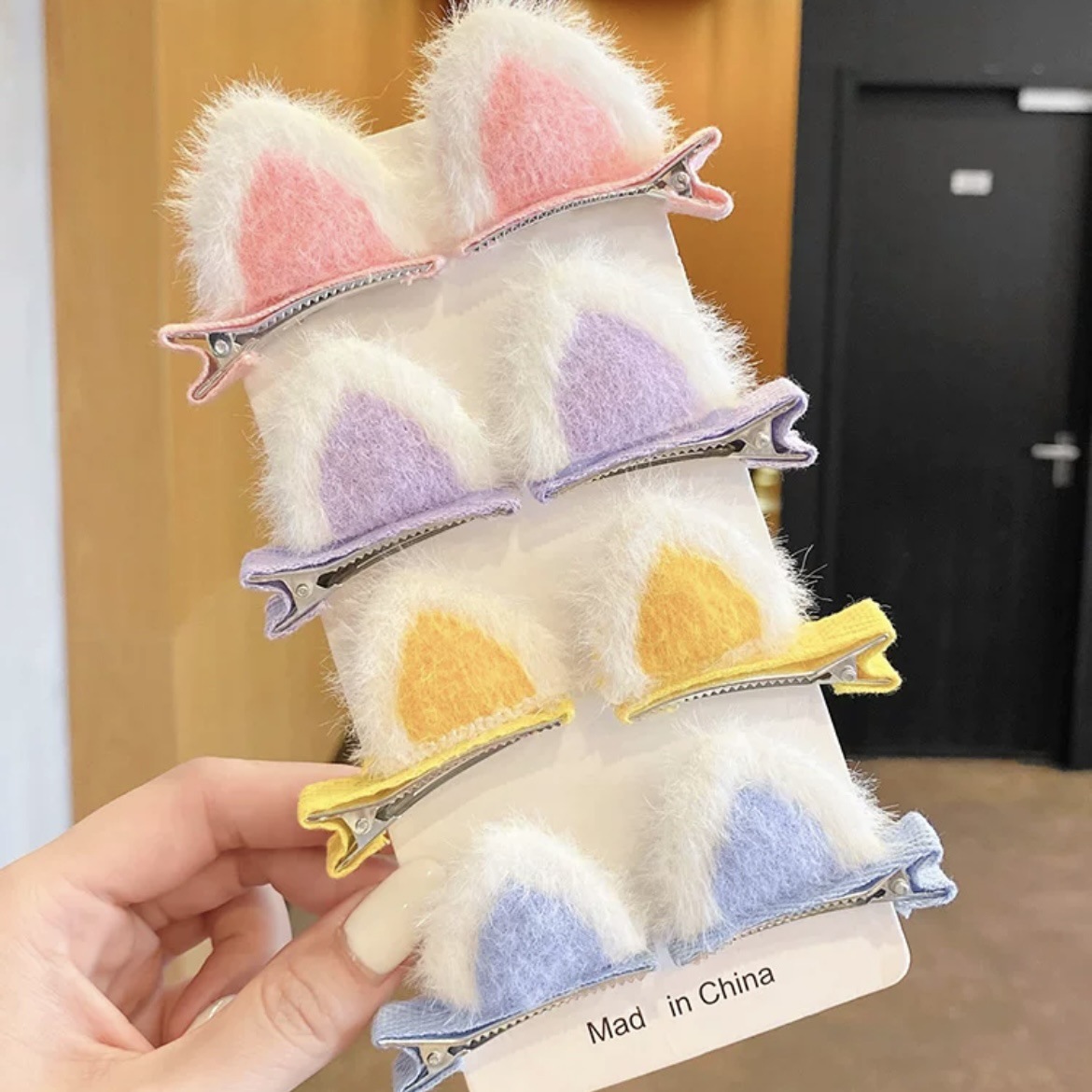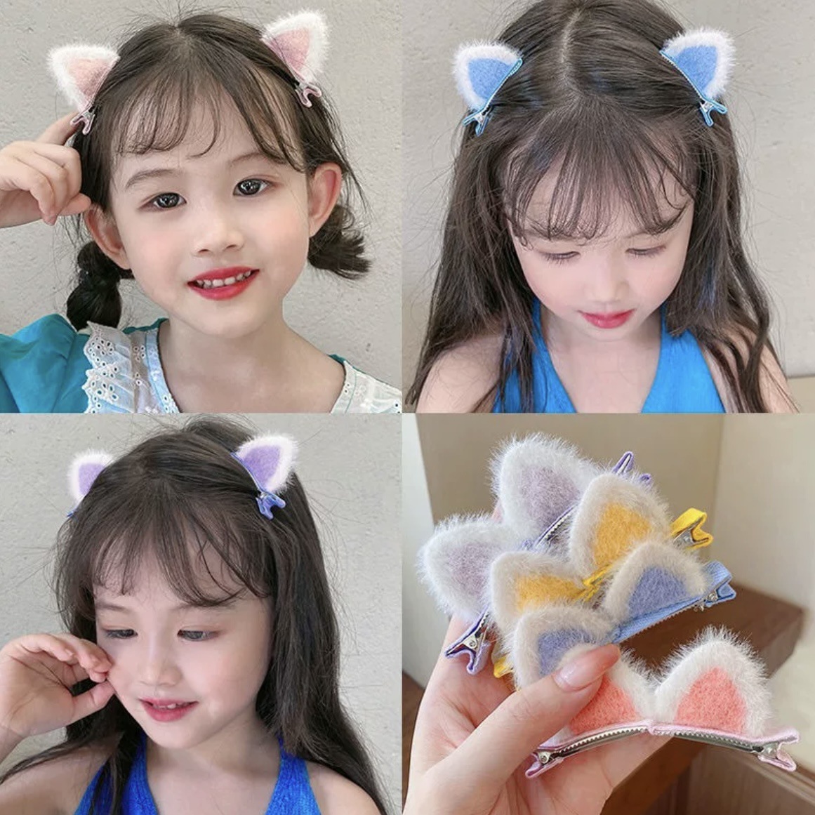 봉제 머리핀 귀여운 고양이 귀 머리핀 어린이 헤어 액세서리 토끼 사이드 클립 앞머리 부러진 머리핀 아기 머리 장식