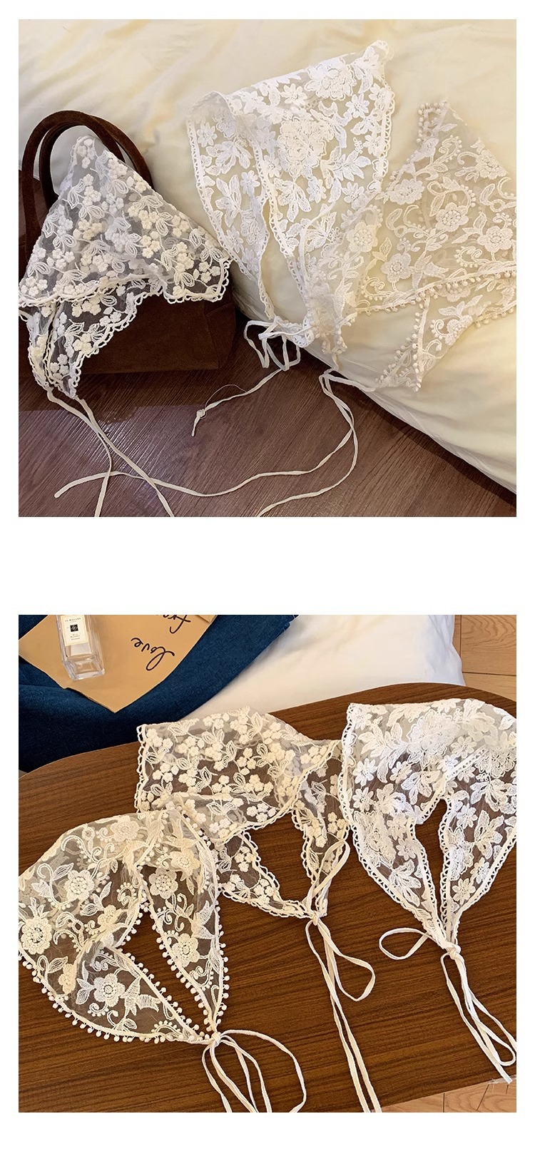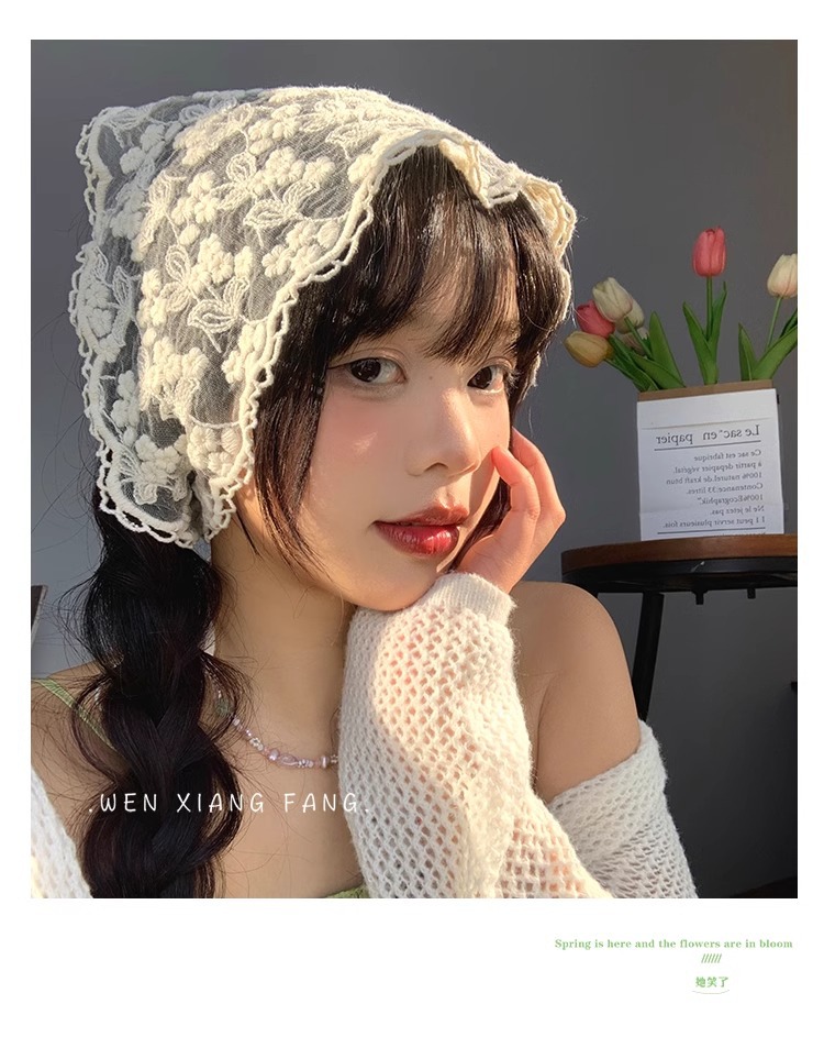프랑스 레트로 레이스 헤드 스카프 우아한 달콤한 귀여운 목가적 인 스타일 삼각형 스카프 봄과 여름 해변 사진 헤드웨어 헤어 액세서리
