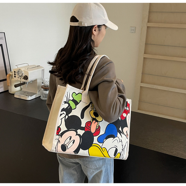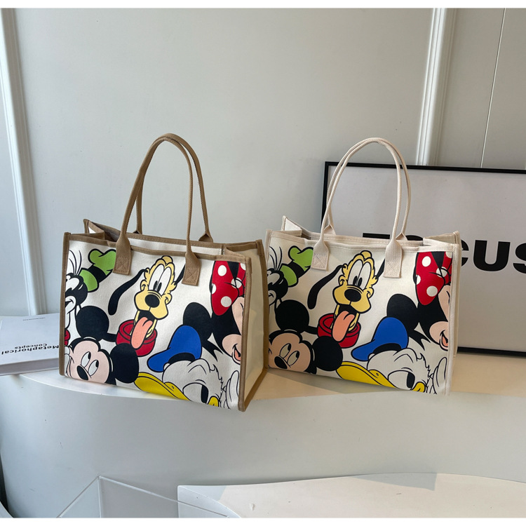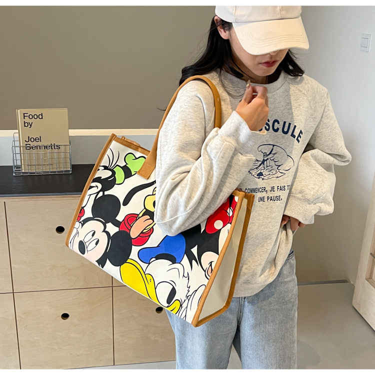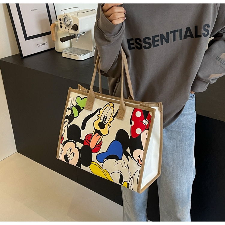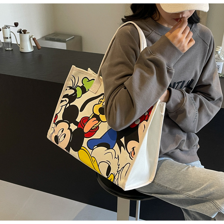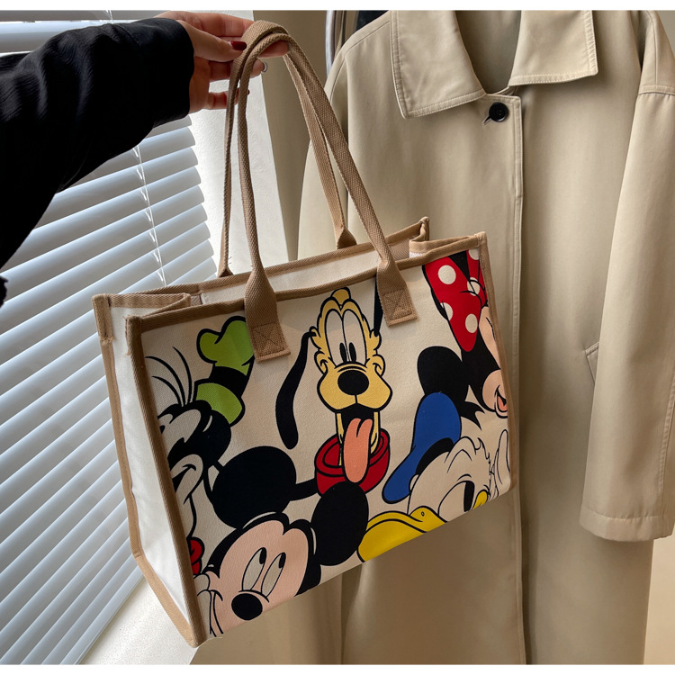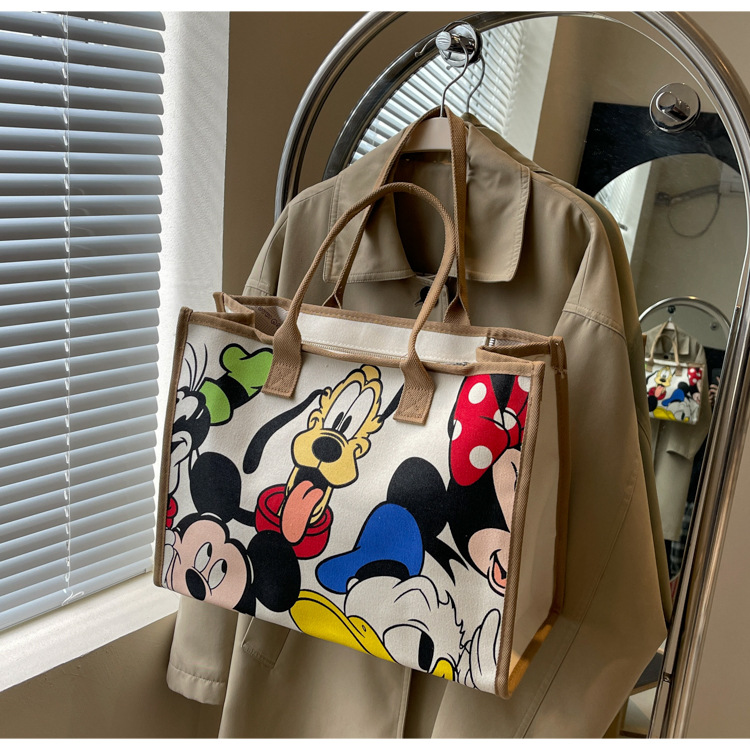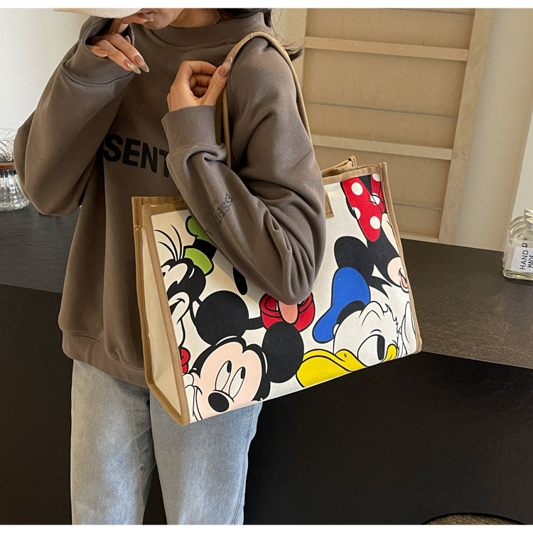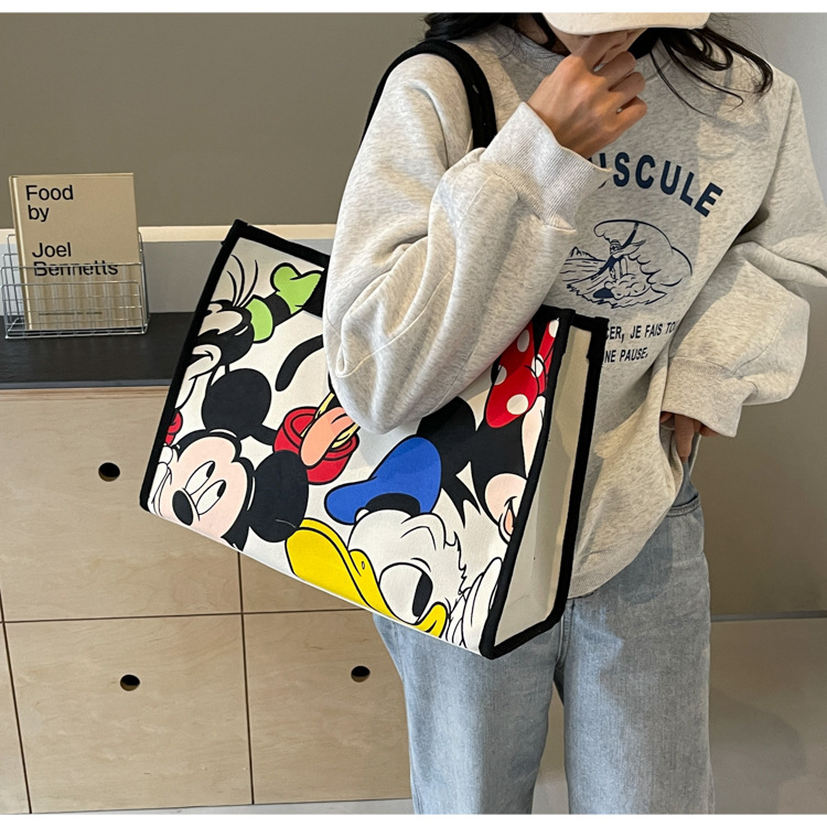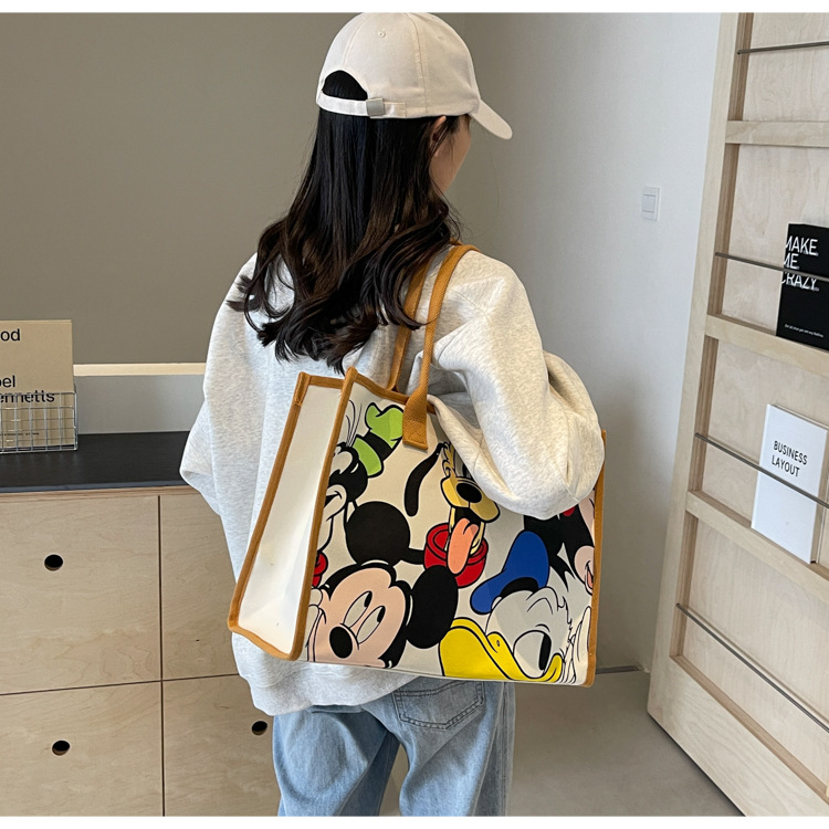 엄마 가방 만화 대용량 캔버스 가방 가벼운 엄마와 아이 손을 들고 통근 학생 토트 백 패션 어깨 가방스토어 가기