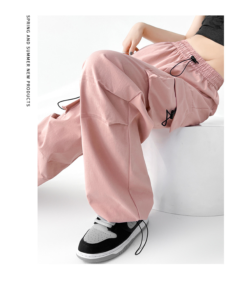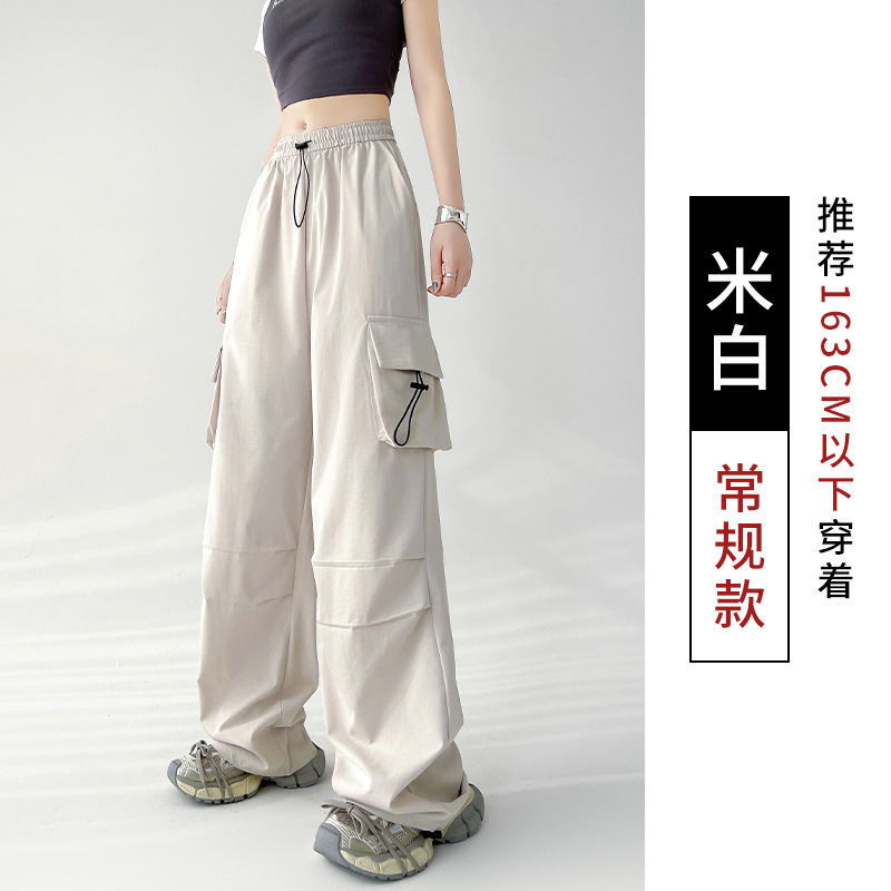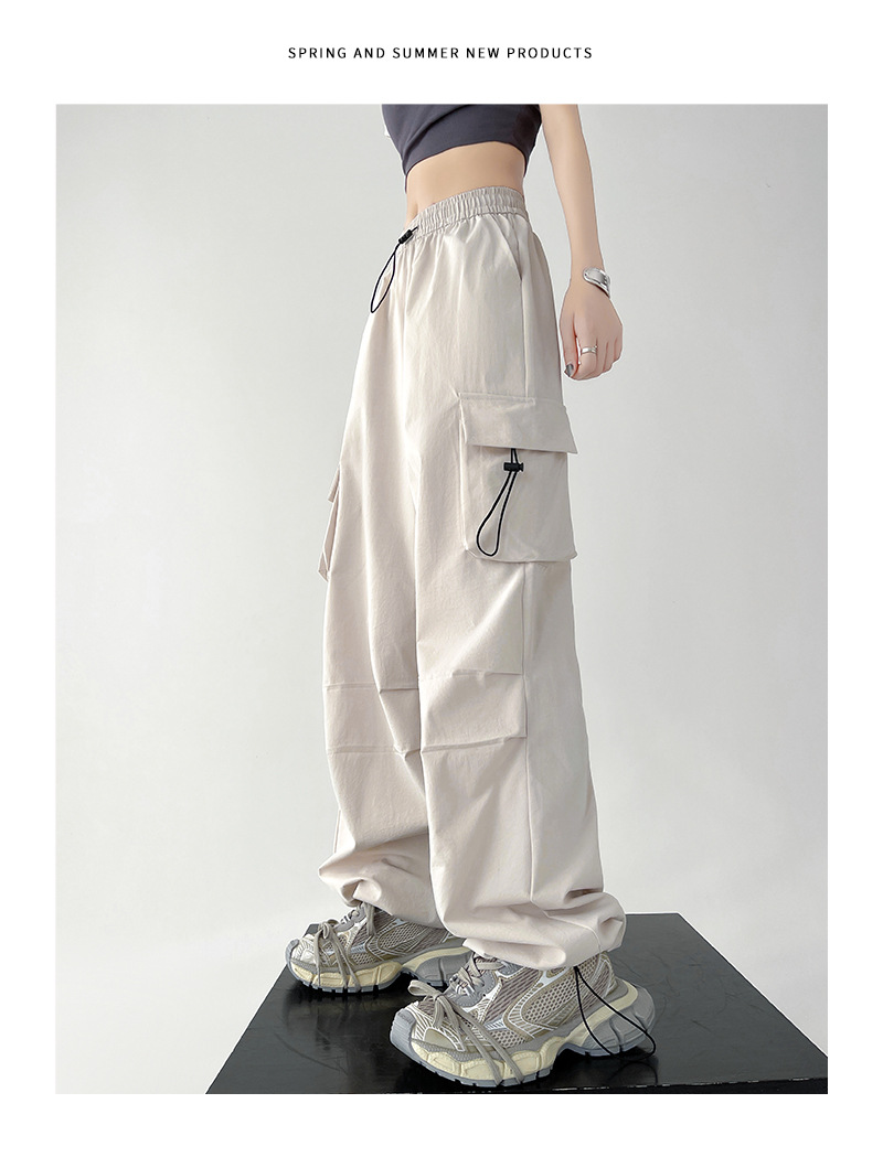 미국식 와이드 레그 낙하산 병 바지 여성용 여름 하이 허리 등산 스포츠 바지 느슨한 복고풍 캐주얼 충전 종이 가방 바지스토어 가기