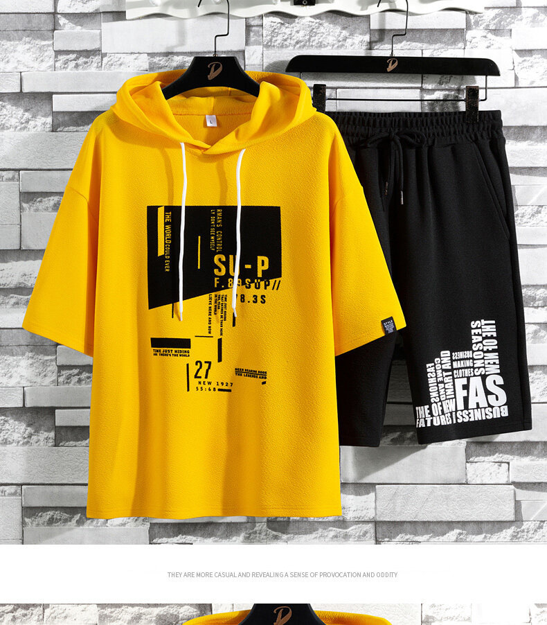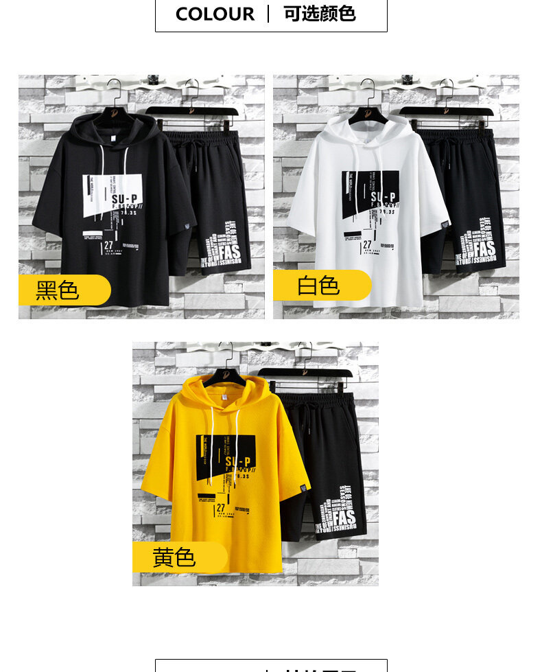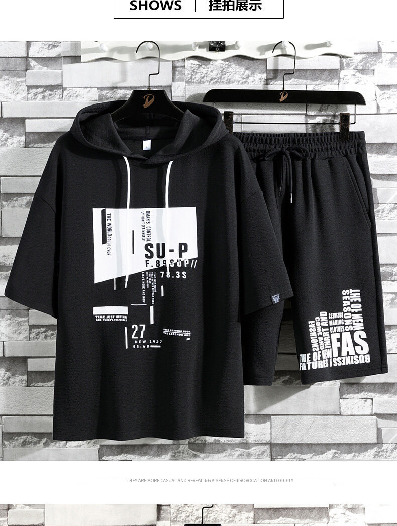 국경 간 대외 무역 여름 투피스 한국식 느슨한 티셔츠 프린트 반바지 플러스 사이즈 캐주얼 스포츠 남자 반팔 세트스토어 가기