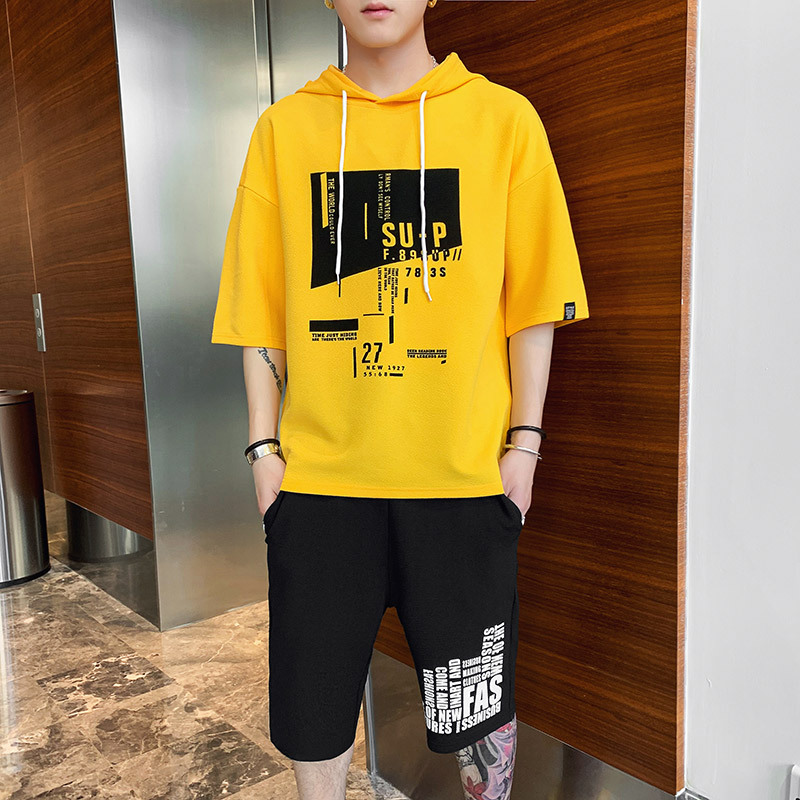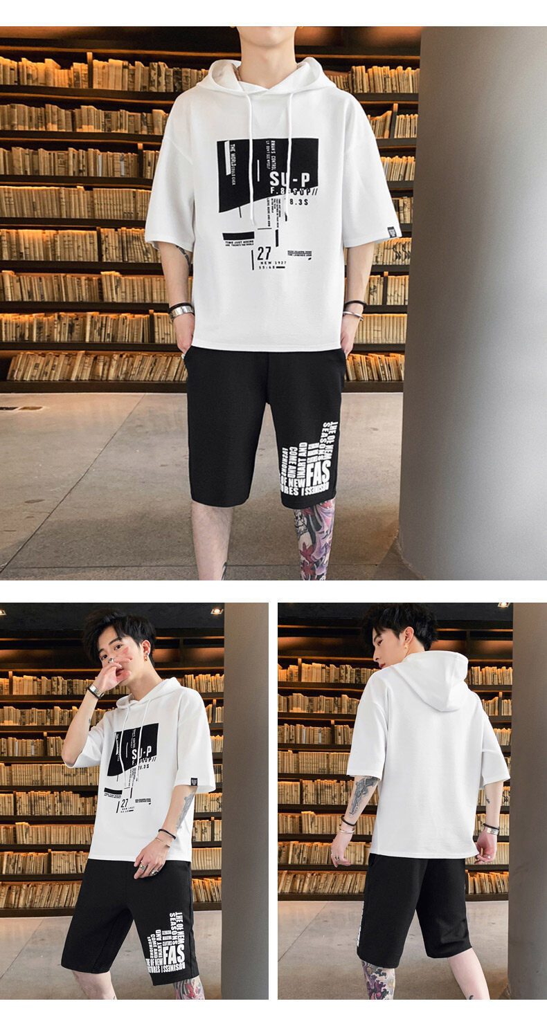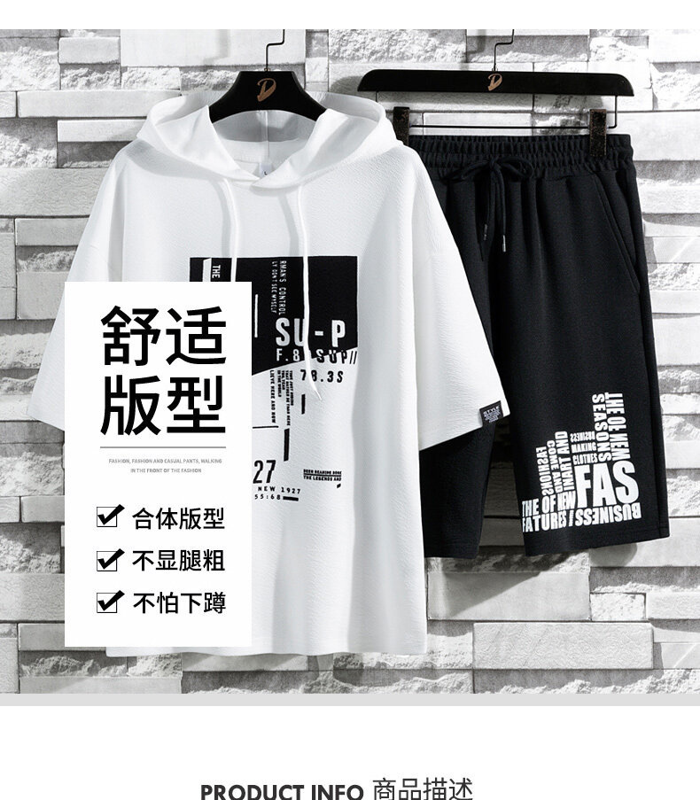 국경 간 대외 무역 여름 투피스 한국식 느슨한 티셔츠 프린트 반바지 플러스 사이즈 캐주얼 스포츠 남자 반팔 세트