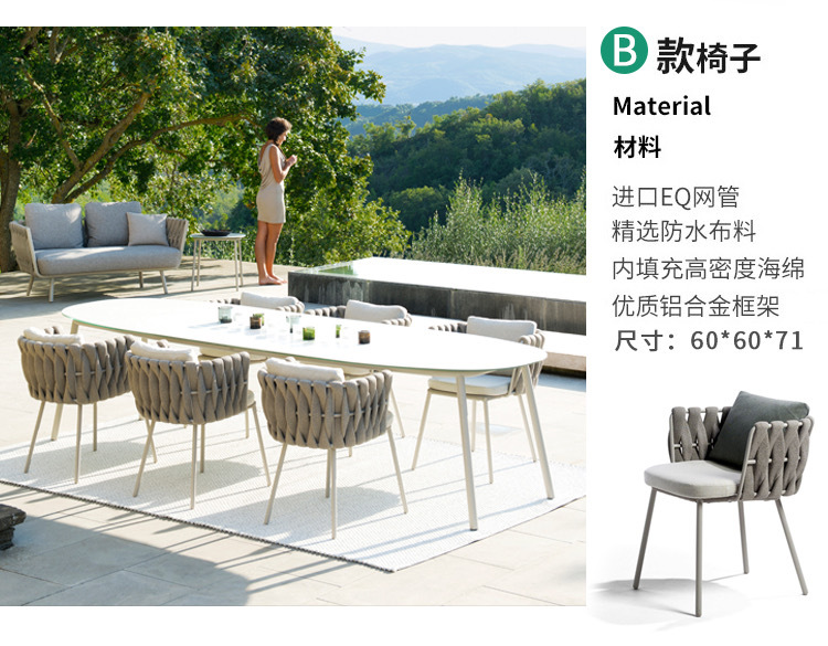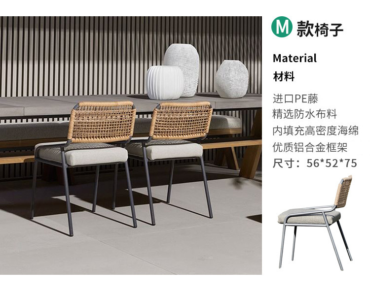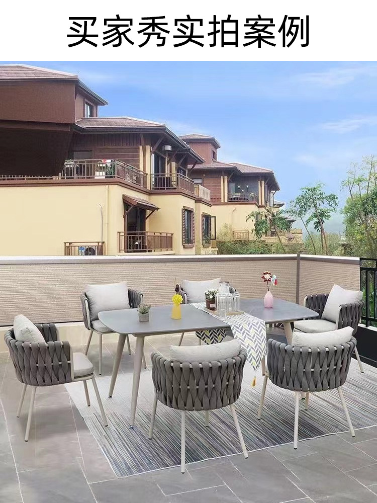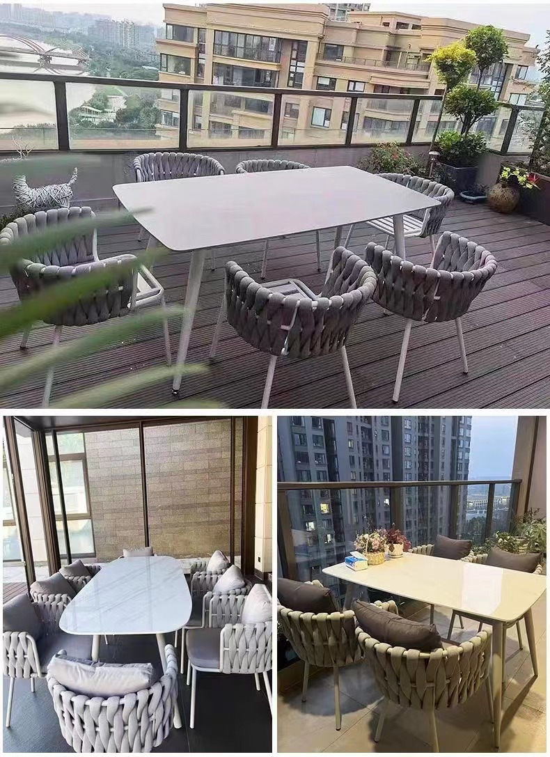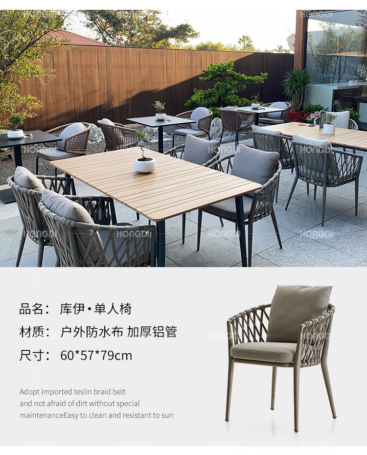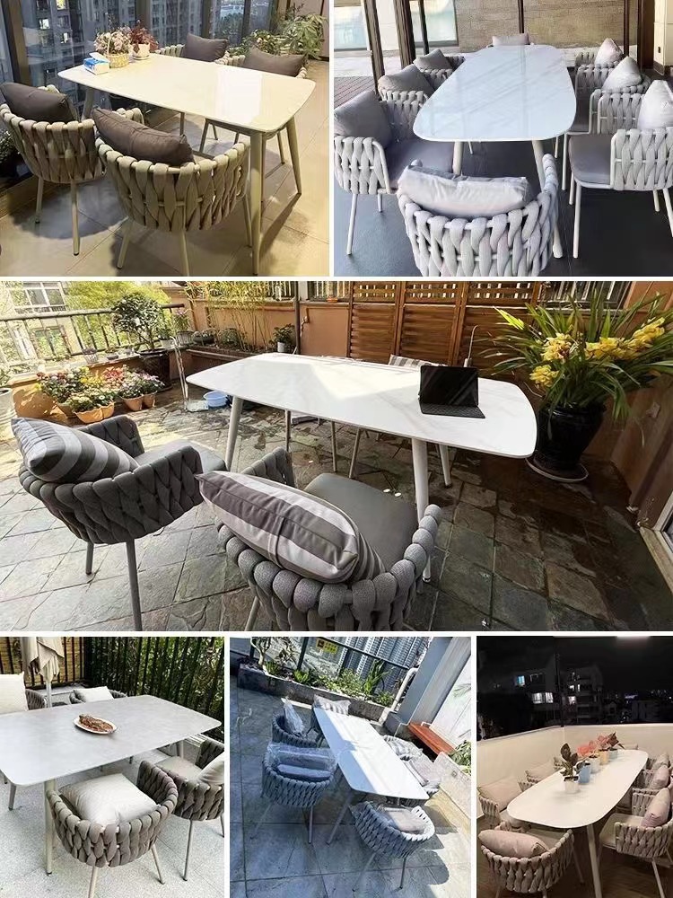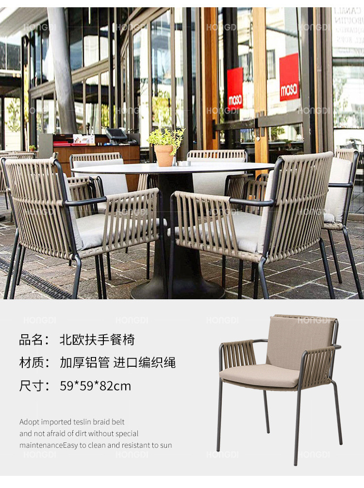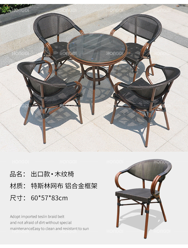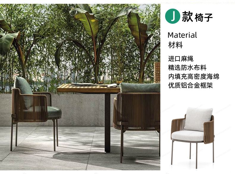 • 알루미늄 합금 모조 나뭇결 + 꼰 로프 의자