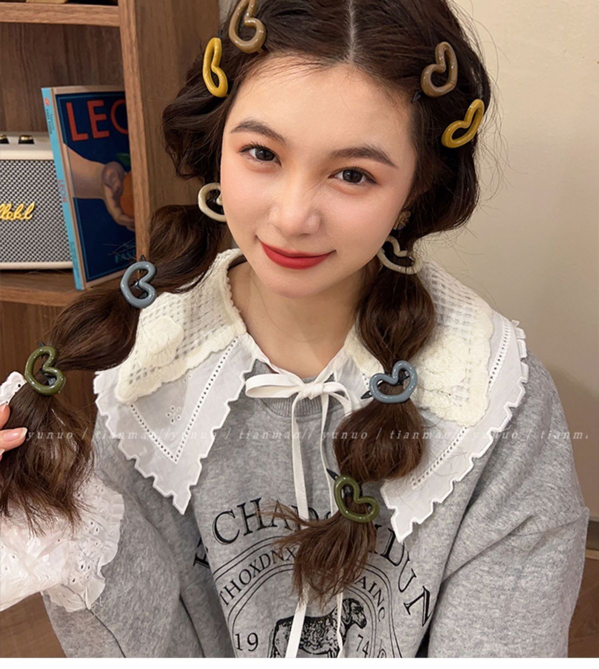 장난스러운 소녀 ~ 한국 귀여운 작은 덕빌 클립 앞머리 측면 깨진 머리 클립 머리 클립 그물 빨간색 새로운