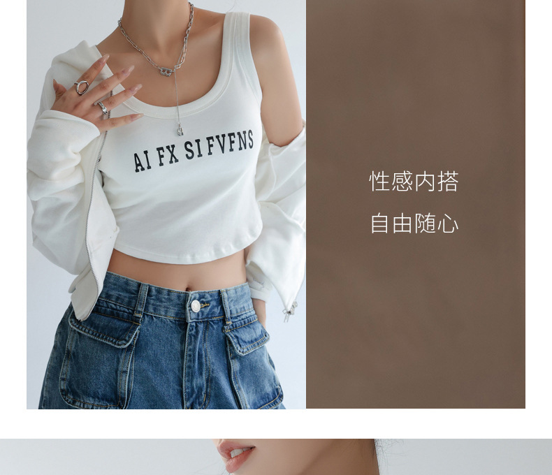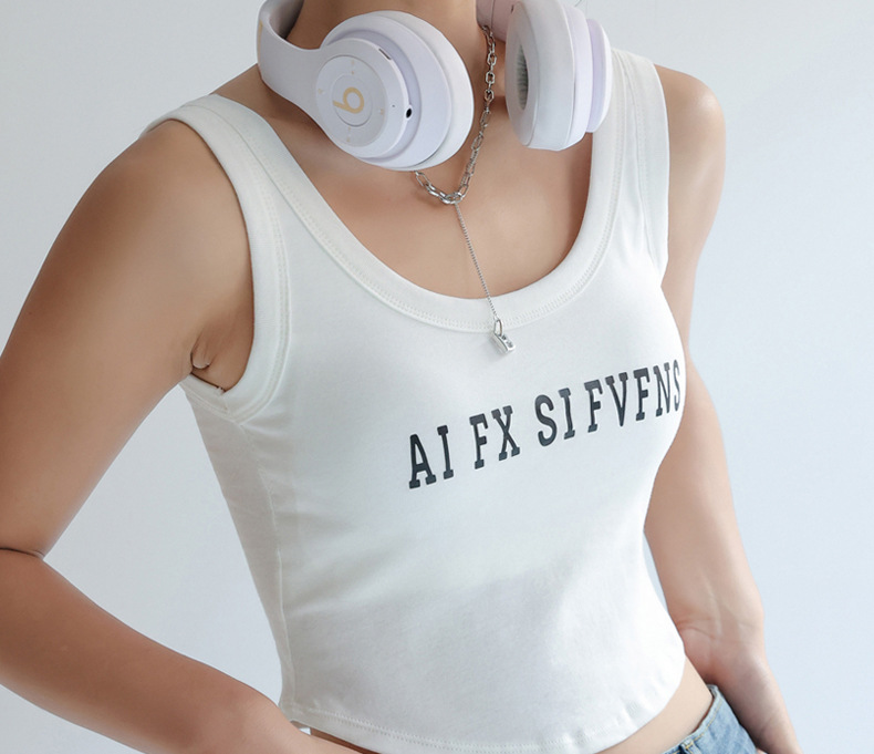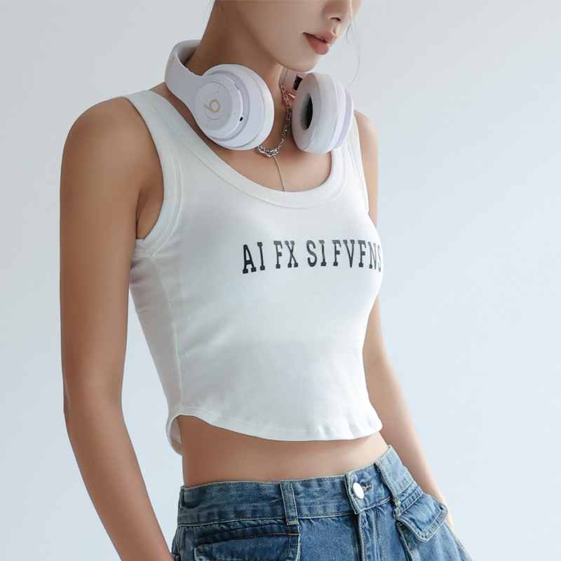 순수한 면 바닥 조끼 여성의 섹시한 세트 내부 문자 디자인 감각 틈새 가슴 패드 작은 슬링은 외부에서 착용 할 수 있습니다